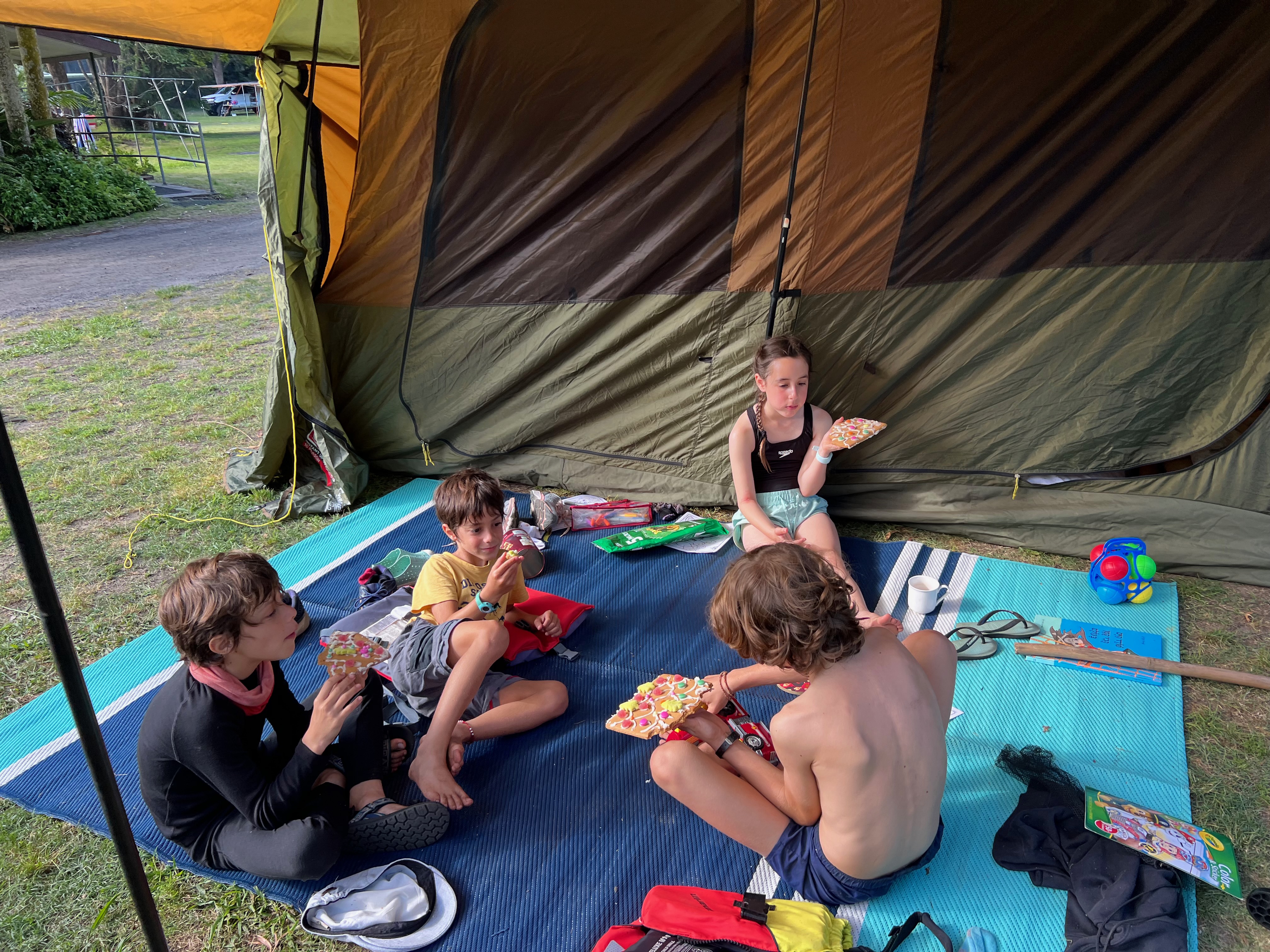 כשחזרנו לפארק בדיוק נכנס קראוון אחר של אפולו, ובתוכו משפחה ישראלית נחמדה, גם הם בטיול אחרי צבא, עם ארבעה ילדים. החיבור היה מיידי בכל הכיוונים, והעברנו אחר צהריים מאוד נעים ביחד. היה כיף להתלונן על הקראוון ולהשוות באיזו מוסכים עברנו בדרך.. להתלונן על קשיים של מטיילים, שרק מטיילים מבינים.. וגם לשמוח על המזל העצום שלנו, ועל כמה מדהים לנו שאנחנו פה. אין ספק שמטיילים מתחברים מהר..