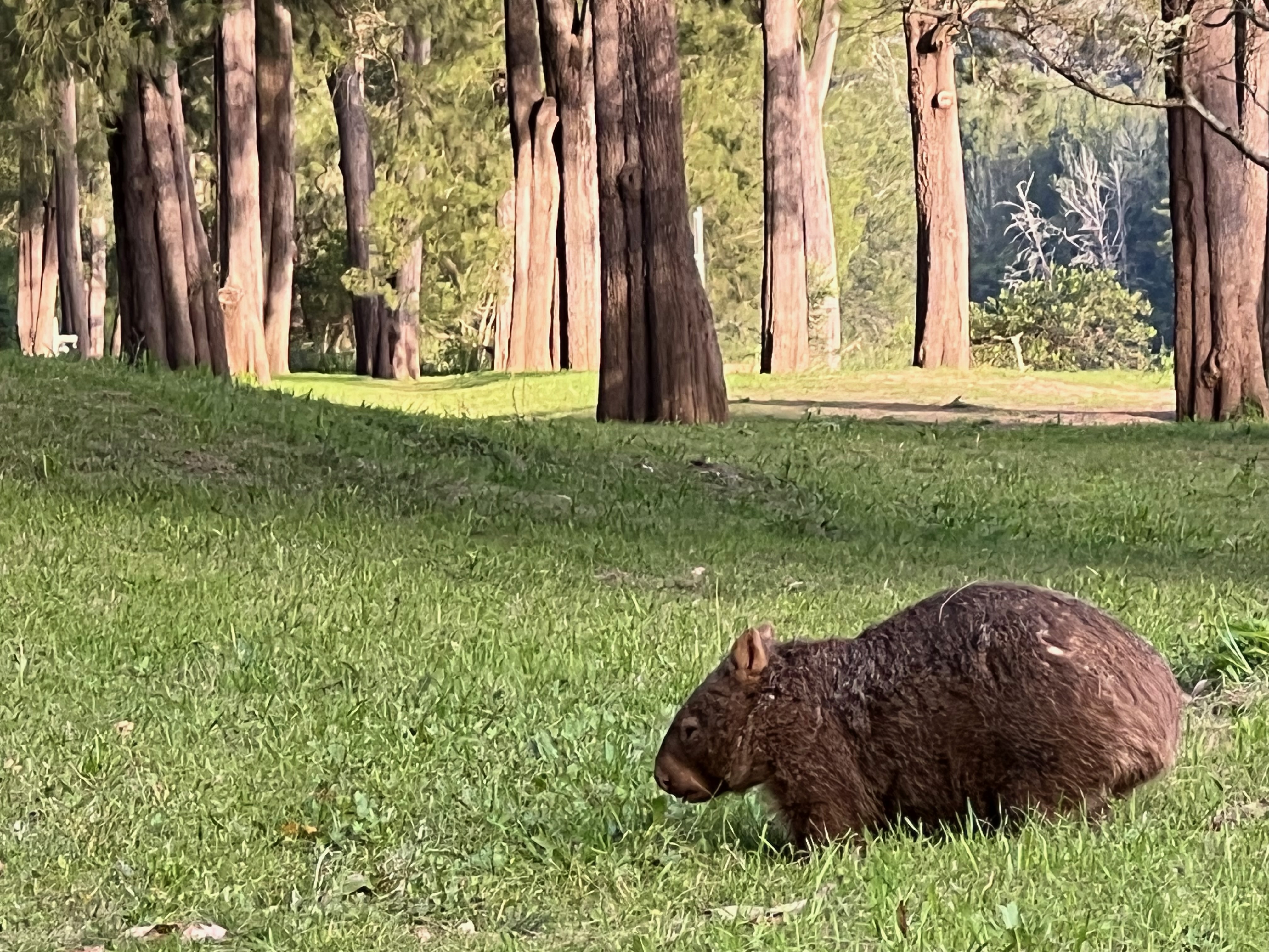עופר כבר התחיל להכין אותי לזה שיכול להיות שלא נראה וומבאטים, ושאני לא אתבאס.. אבל אז – הו אז, גילינו וומבאט ליד הנהר, והוא היה כל כך חמוד ודובוני.. ממש מתוק. אח״כ הבחנו בעוד כמה מרחוק, כנראה ששש בערב זו שעה כבר מספיק מאוחרת בשבילם..