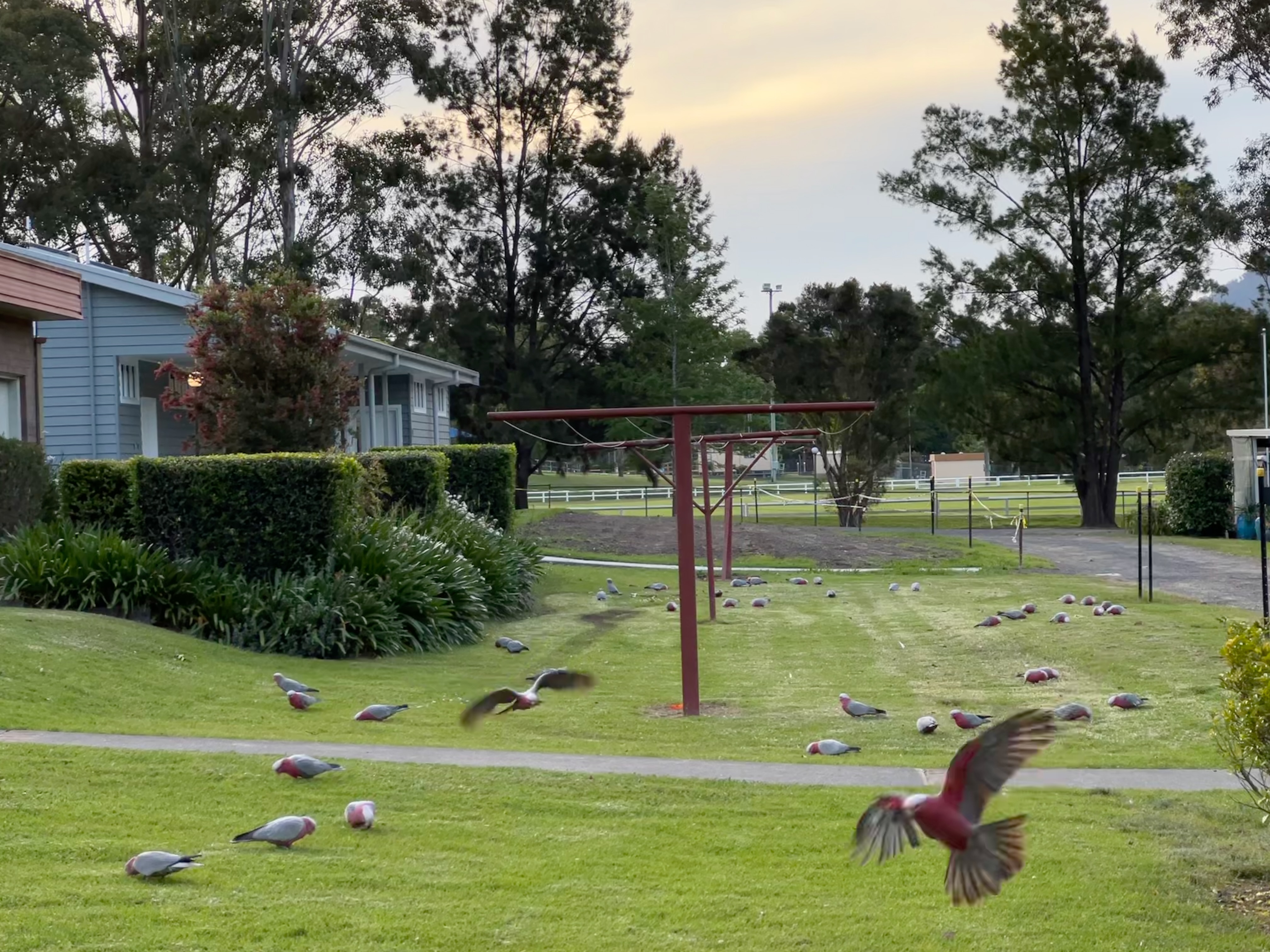הפארק שלנו בקנגורו ואלי, היה מהמם.. היו בו כאלה אנרגיות מרגיעות.. הוא השקיף על שדות ונחל ובפארק עצמו היה נחל קטן ואגם ומלא מלא ציפורים וורודות (עופרי, הבת של רוני, לימדה אותי שקוראים להם דאלות) וקקדואים צהובי כתר והיה מקסים.. חוץ מזה היה בפארק גם טרמפולינה ומיני גולף, אז באמת היה מושלם.