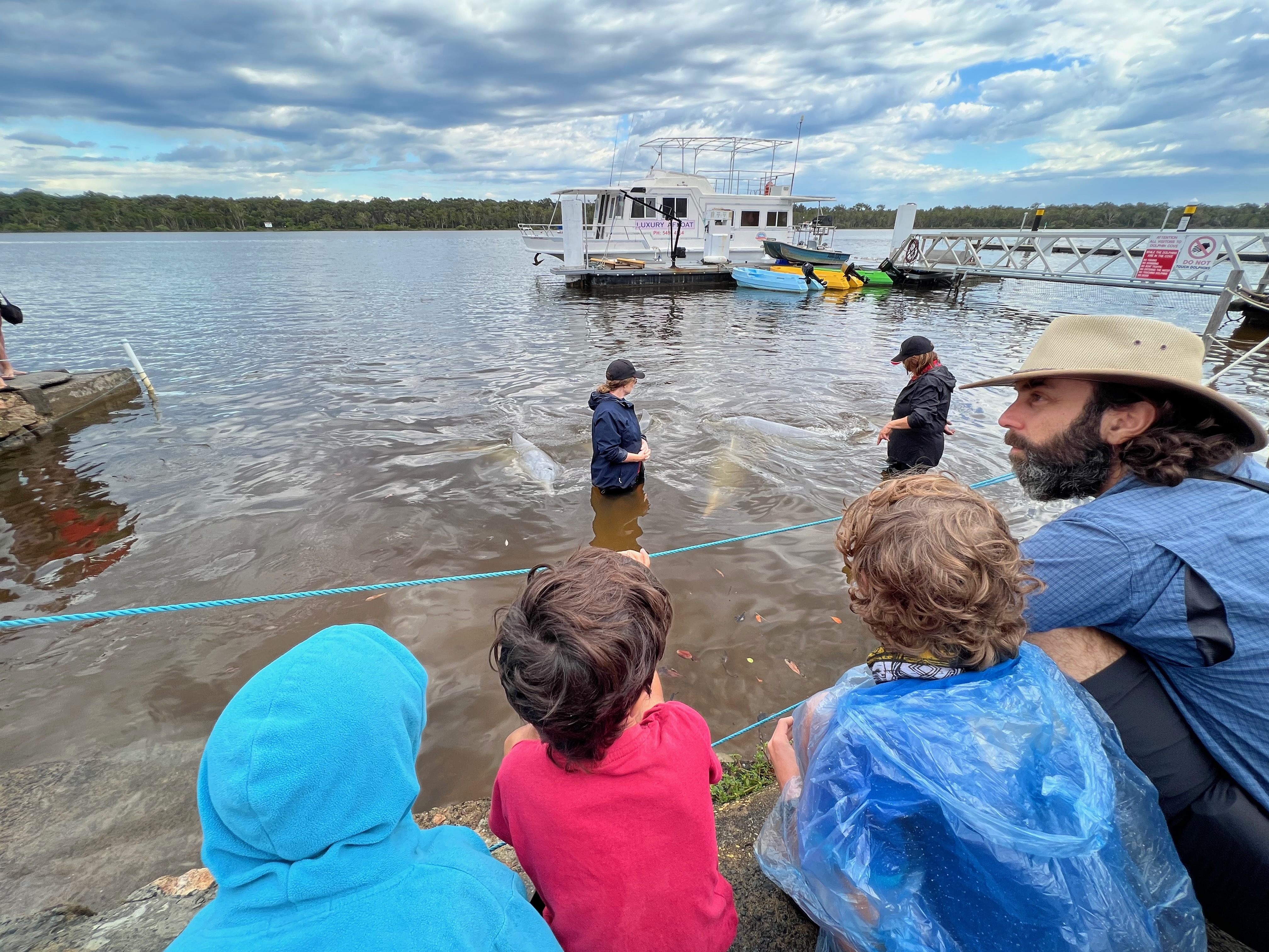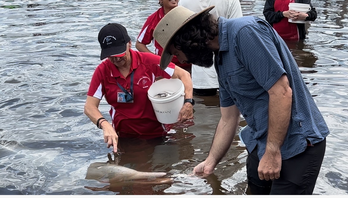 ב8:00 כל אחד קיבל דג אחד שבו הוא האכיל את אחד הדולפינים, תחת פיקוח של מתנדבת מהמקום, ותזכורות חוזרות שאסור ללטף את הדולפינים, רק להם מותר ללטף אותך..