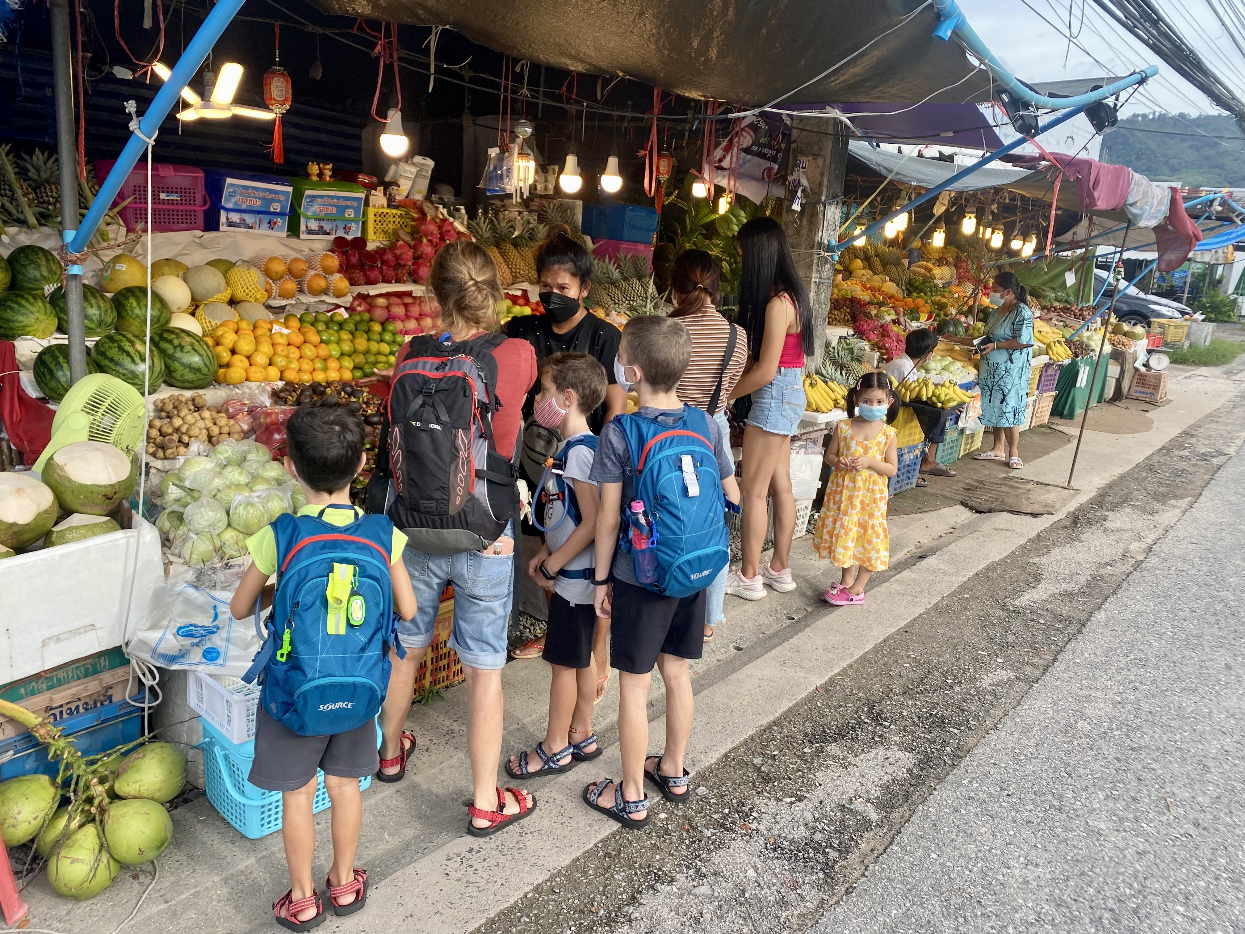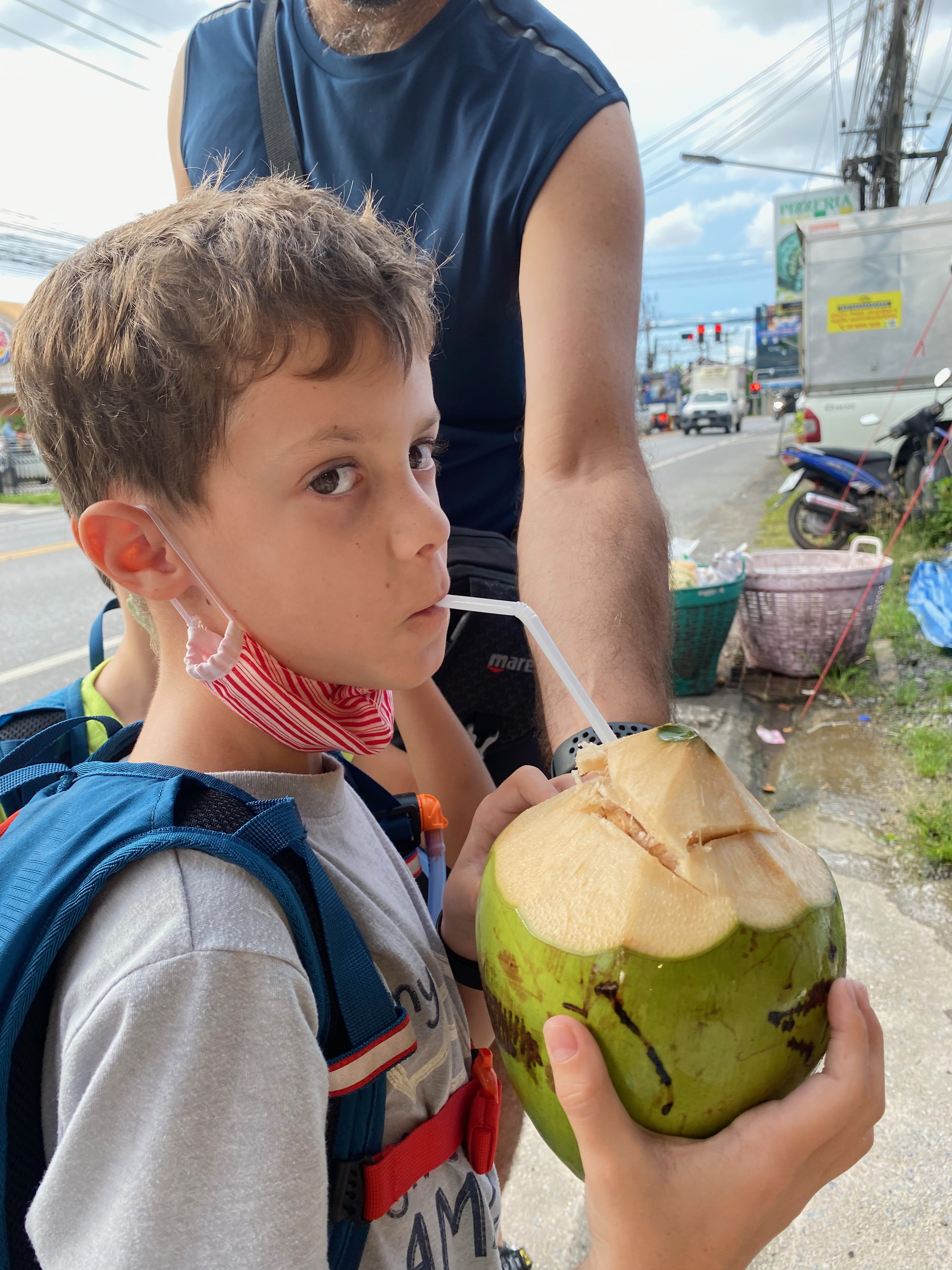 אחר כך המשכנו לרחוב סירה 🙂 (אני משתדלת לא לעבור לאנגלית כי הוורדפרס לא אוכל את זה ממש..) רחוב עם הרבה חנויות ומסעדות, עשינו סיבוב קצר ונחמד, הגענו לדוכן פירות וקנינו פירות טרופיים מגניבים וגם שתינו קוקוס.. (רציתי להכיר לילדים מנגוסטן.. לא זרמו..) בסוף התיישבנו במסעדת סושי קטנה. היה טעים והילדים מאוד אוהבים סושי, אבל הגענו למסקנה שעם הילדים שלנו אין שום סיבה להכנס למסעדות סגורות.. עדיף מסעדות על החוף, הרבה יותר נעים.