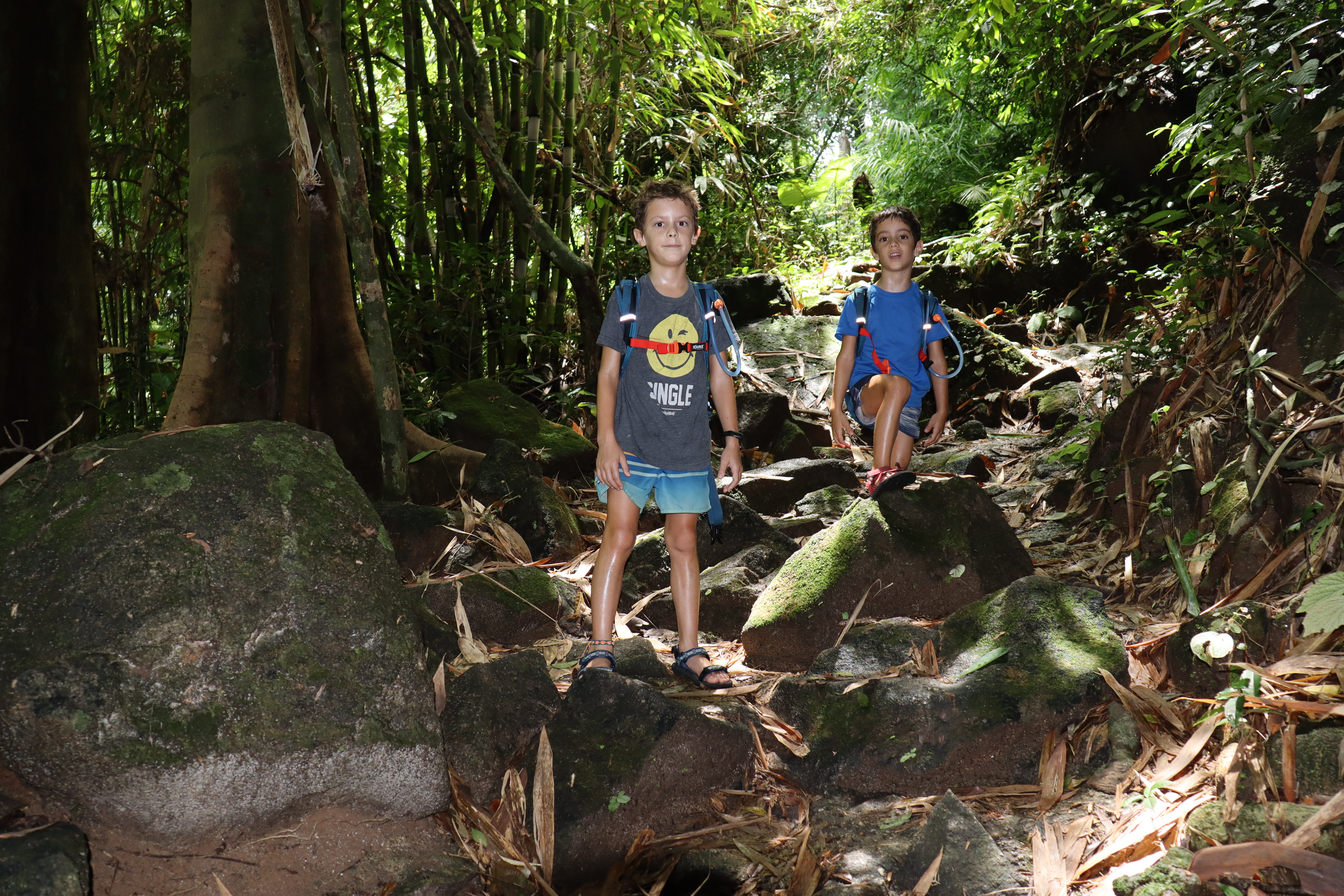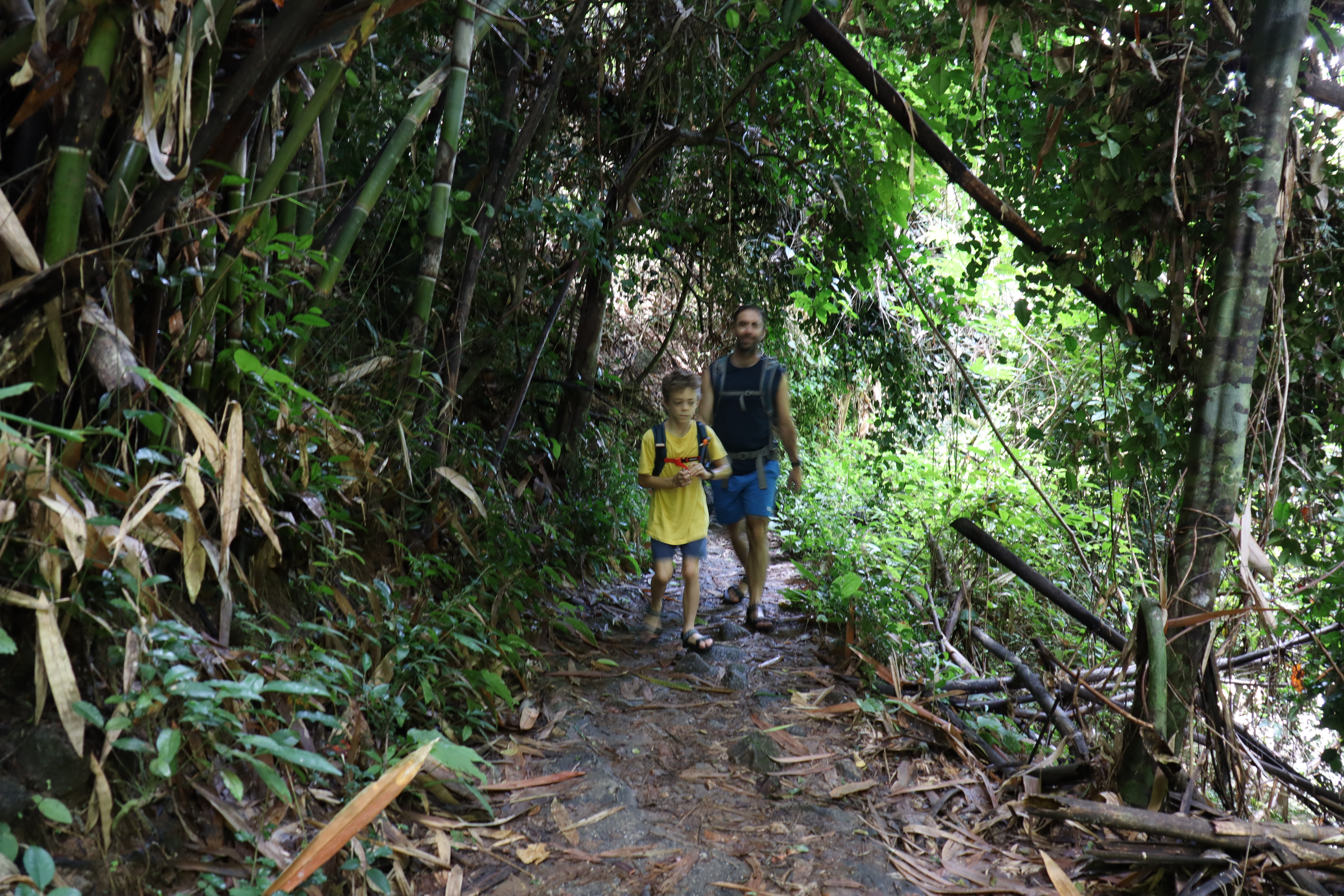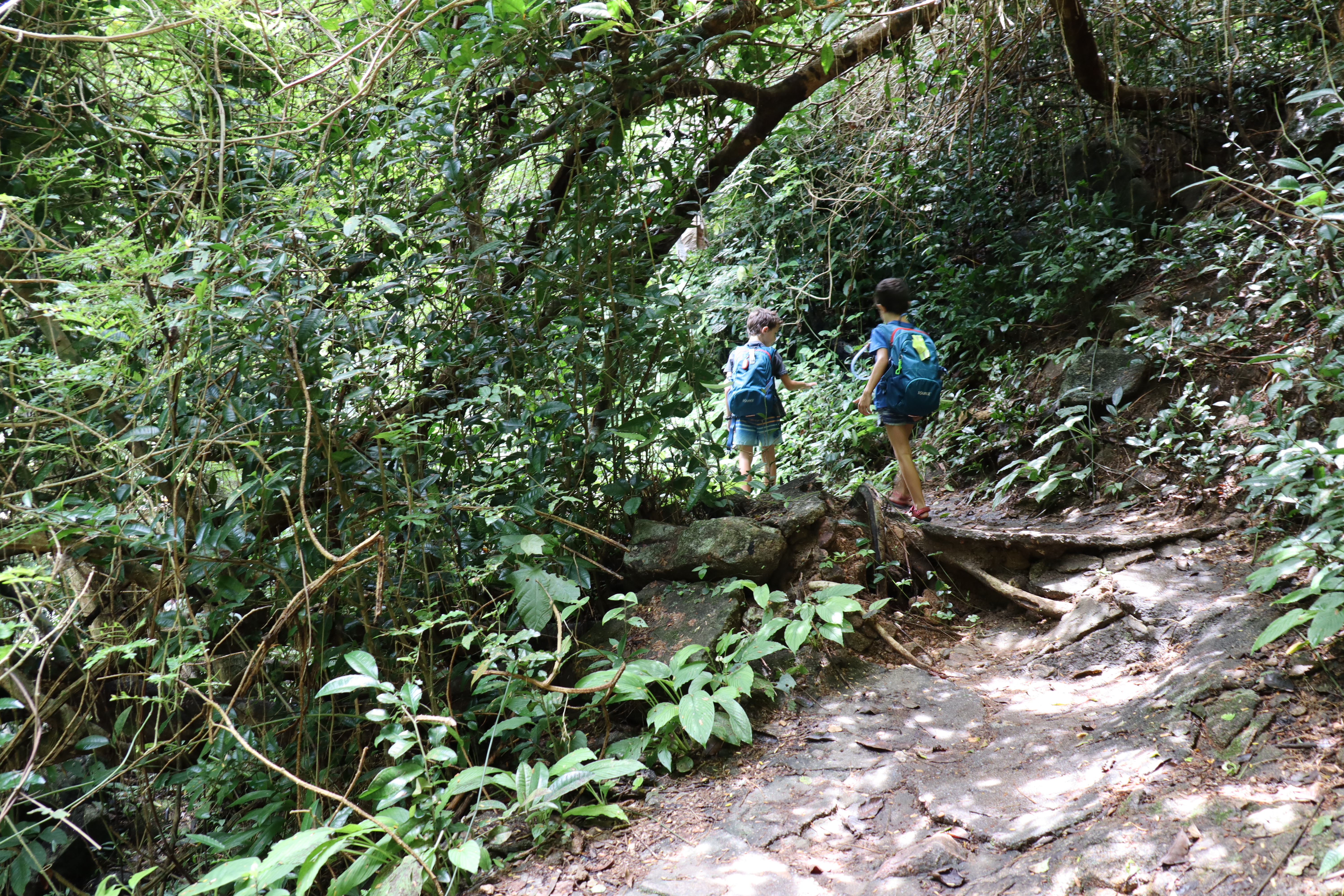 אז שלשום הזמנו מונית ויצאנו לג׳ונגל! היה יום יפה (ובכלל יש ימים מאוד יפים בזמן האחרון, לא חם מדי ועדיין השמש זורחת וממש מושלם), תכננו לצאת למפל, מסלולון קצרצר ומוסדר, יש שביל והוא אפילו מבטון, אבל שורשים עוטפים אותו ומרגישים שאתה ממש בתוך ג׳ונגל. עידו – שזה היה החלום שלו, לטייל בגונגלים, קלט שג׳ונגל בא עם מלא חרקים לא מוכרים וקצת מפחידים וקולות, ופתאום איזה עכביש ענק עובר לידנו, שורש קוצני משתרבב מעלינו ו-וואלה, קצת מלחיץ פה.. אז זה לא היה בדיוק כמו שפינטזנו, אבל זה חלק מהנעיין – התמודד והתגבר והגענו למפל, שהיה אפילו די מרשים, ונכנסנו טיפה למים לשכשך.