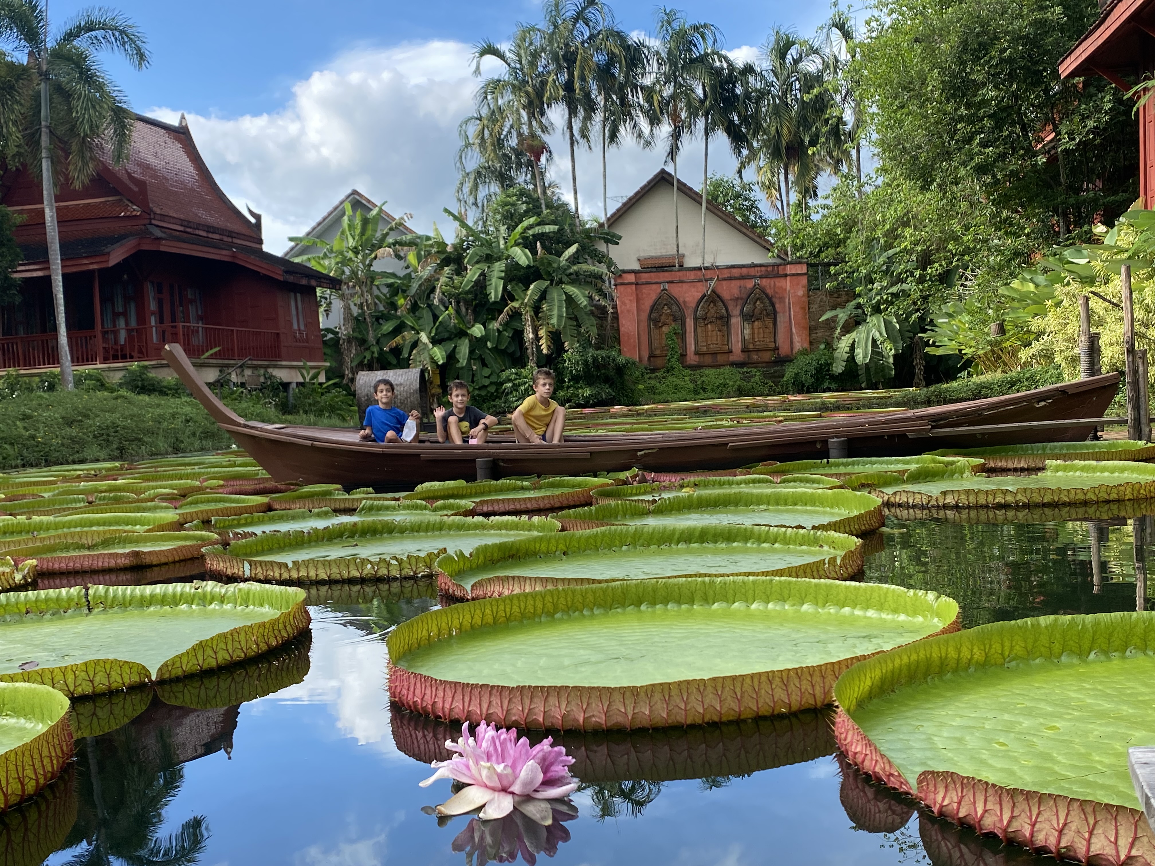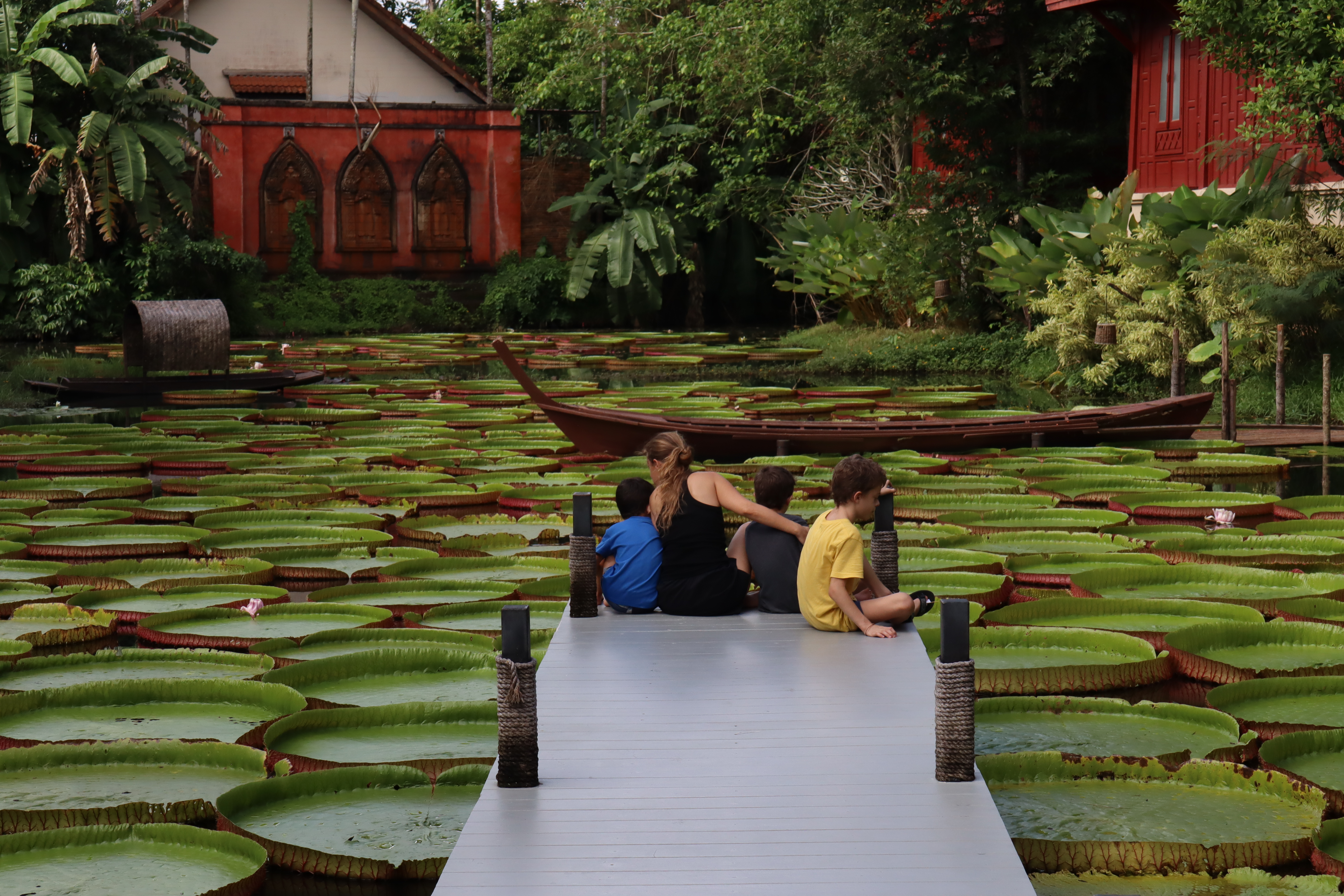 אחרי זה המשכנו למסעדה מאוד מפורסמת פה.. לא יודעת אם היא מפורסמת בכללי או שפשוט משפחת רוזנטל שכותבת בלוג מאוד מפורסם שיש לו מלא עוקבים בפייסבוק ומספרים על החיים שלהם בקו פנגן, ביקרו בה והמליצו עליה, אז אולי היא מפורסמת לישראלים.. בכל מקרה מה שמיוחד בה זה שיש שם מקווה מים מכוסה כולו בעלי לוטוס ממש גדולים. זן ענק. ובגדול מרגישים בה בתוך תמונה… אז אכלנו שם בסטייל, נהנים מהנוף ואפילו פינקו אותנו בלתת לנו להצטלם על אחת הסירות שם במים. (אפשר גם תמורת תשלום לעמוד על עלי הלוטוס אבל זה דורש הערכות שלהם ועושים את זה רק בסופי שבוע).