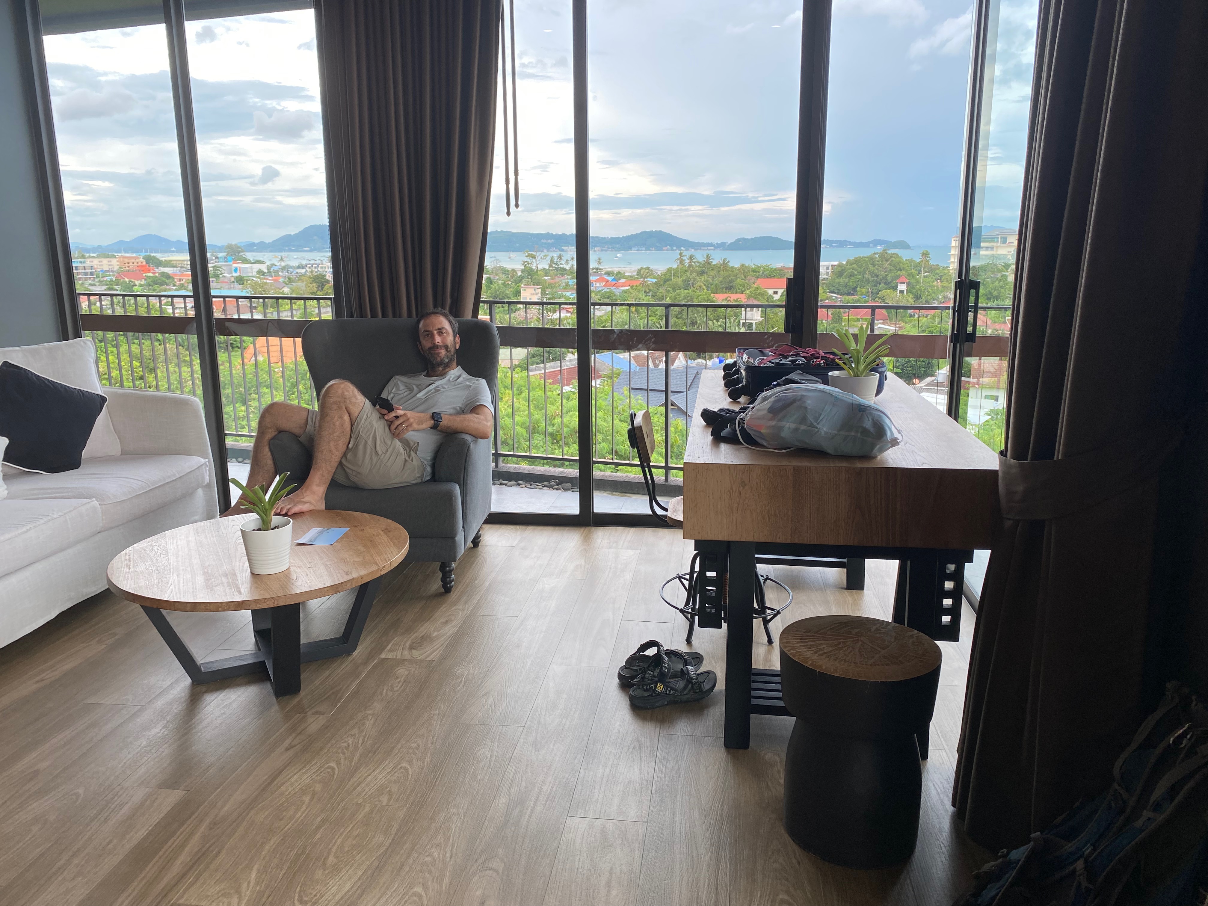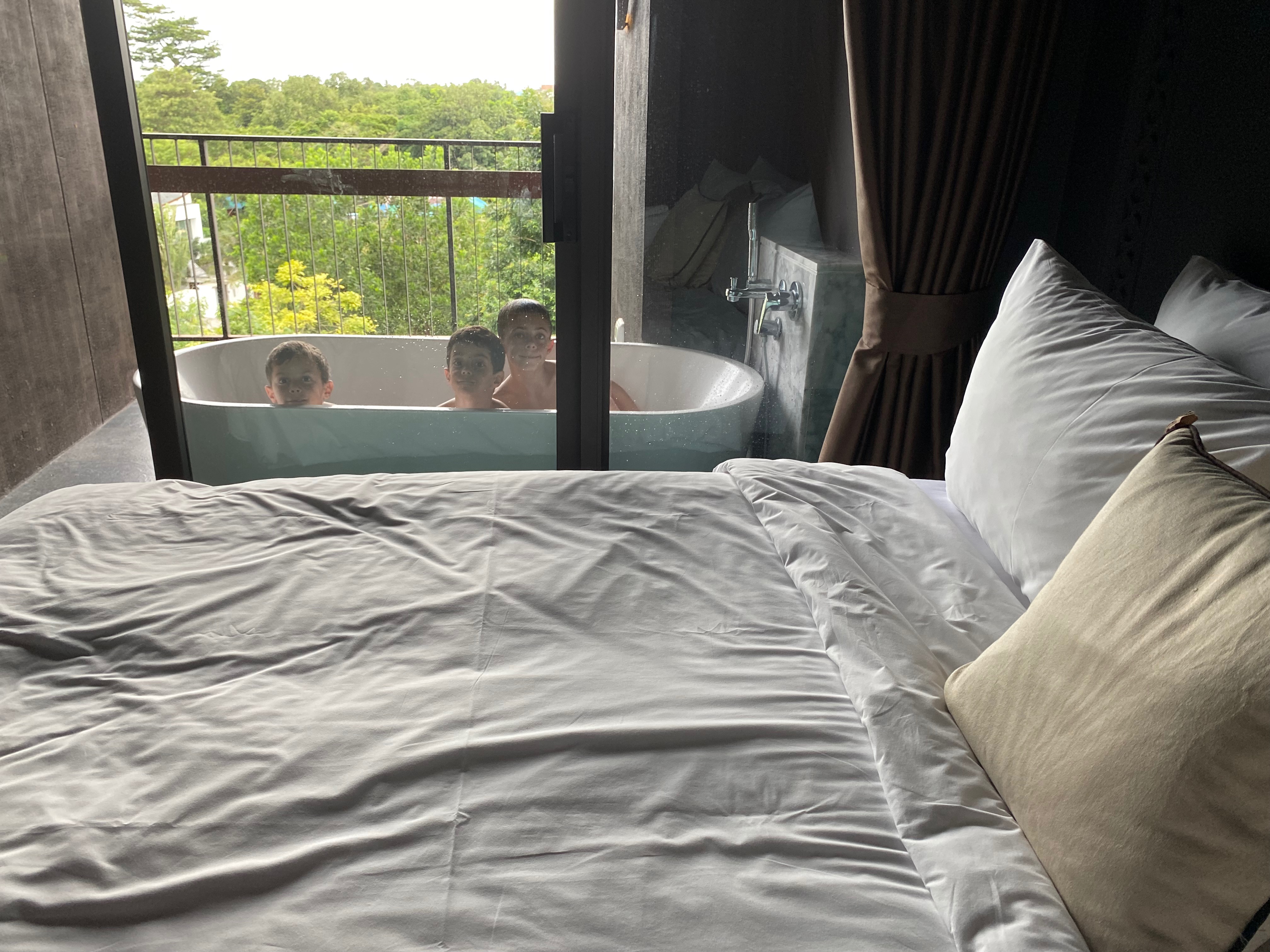 כשהגענו למלון בבנג טאו הסברנו לילדים שזה המלון הכי יפה שהם הולכים להיות בו בטיול שלנו.. פשוט כי לא ידענו שאנחנו נעבור למלון שבו אנחנו נמצאים עכשיו.. זה מלון מדהים!! מהמם! דירה יפהפיה, עם נוף משגע, שני חדרי שינה, שני חדרי רחצה, אמבטיה במרפסת, סלון ומטבח.. והוא עולה פחות מ200 ש״ח ללילה.. האמת היא שהיו לי קצת ייסורי מצפון כשהזמנתי אותו.. הרי אנחנו תרמילאים וזה.. והטיול שלנו לא אמור להראות ככה.. אבל כשהשוויתי לחדרים פשוטים באיזור, וראיתי שהם עולים איזה 40 ש״ח פחות מזה (בגלל הקורונה.. ברור.. זה חדר של לפחות 1000 ש״ח ללילה בכל זמן אחר) אז זה היה ממש דבילי לא לבחור בו.. בקיצור אנחנו כאן, ואנחנו סופר מרוצים.. הזמתי 2 לילות, ואיך שהגענו הארכנו בעוד לילה. אולי נאריך גם בעוד.. האנשים פה מאוד רוצים שנהיה מרוצים, ושנמליץ על המקום, נתנו לנו את החדר הפינתי הגבוה הכי מדהים במלון.. מדהים פה.