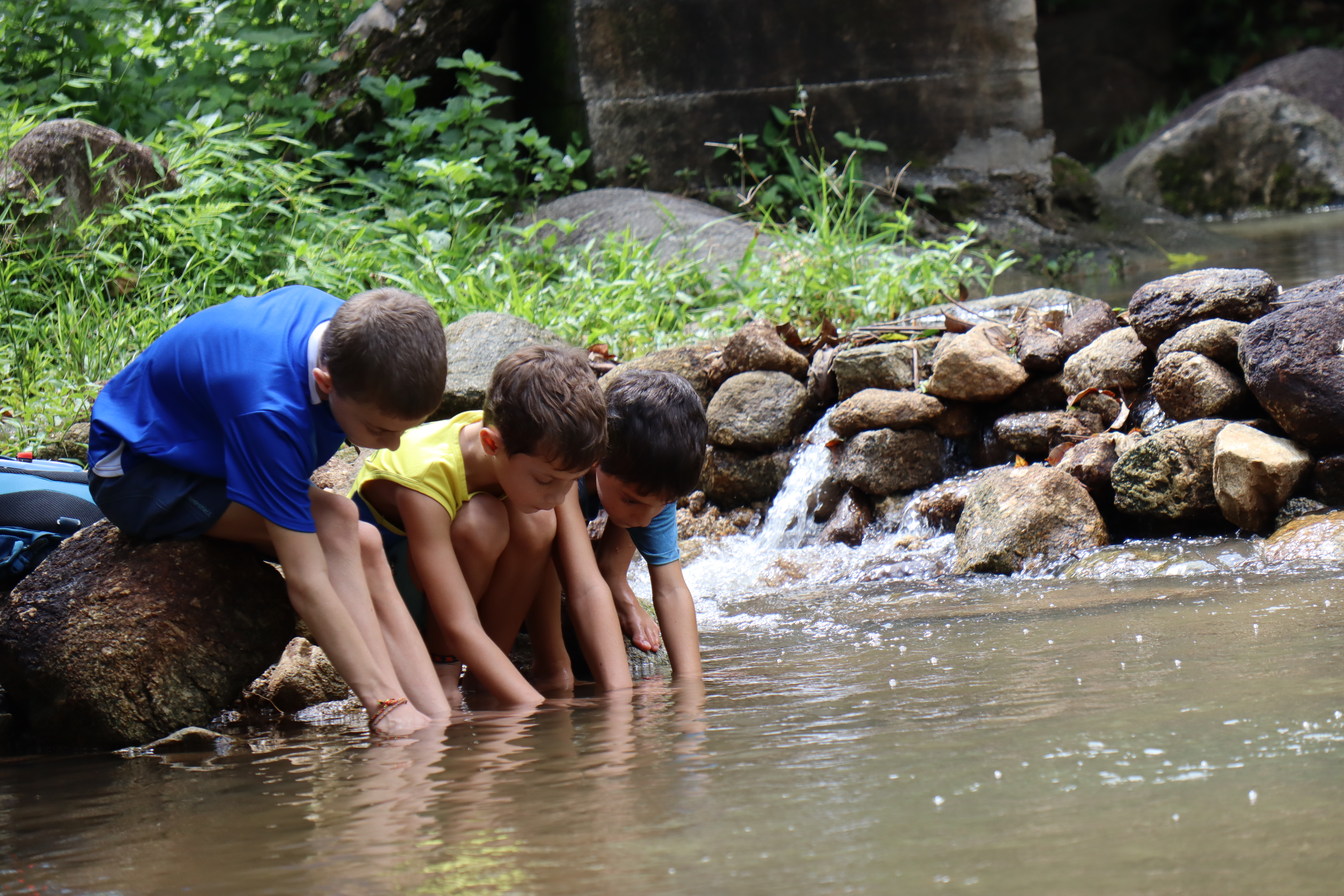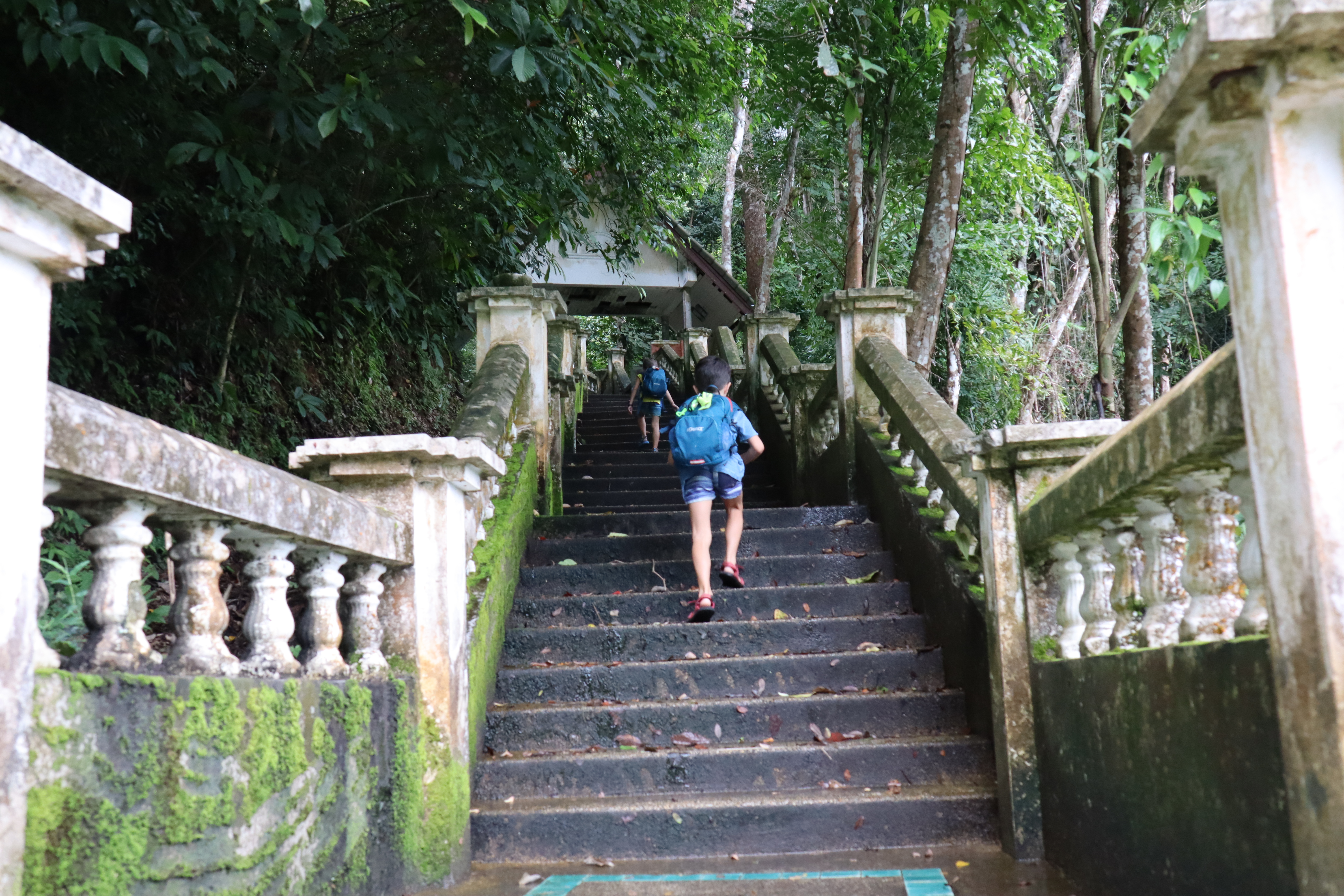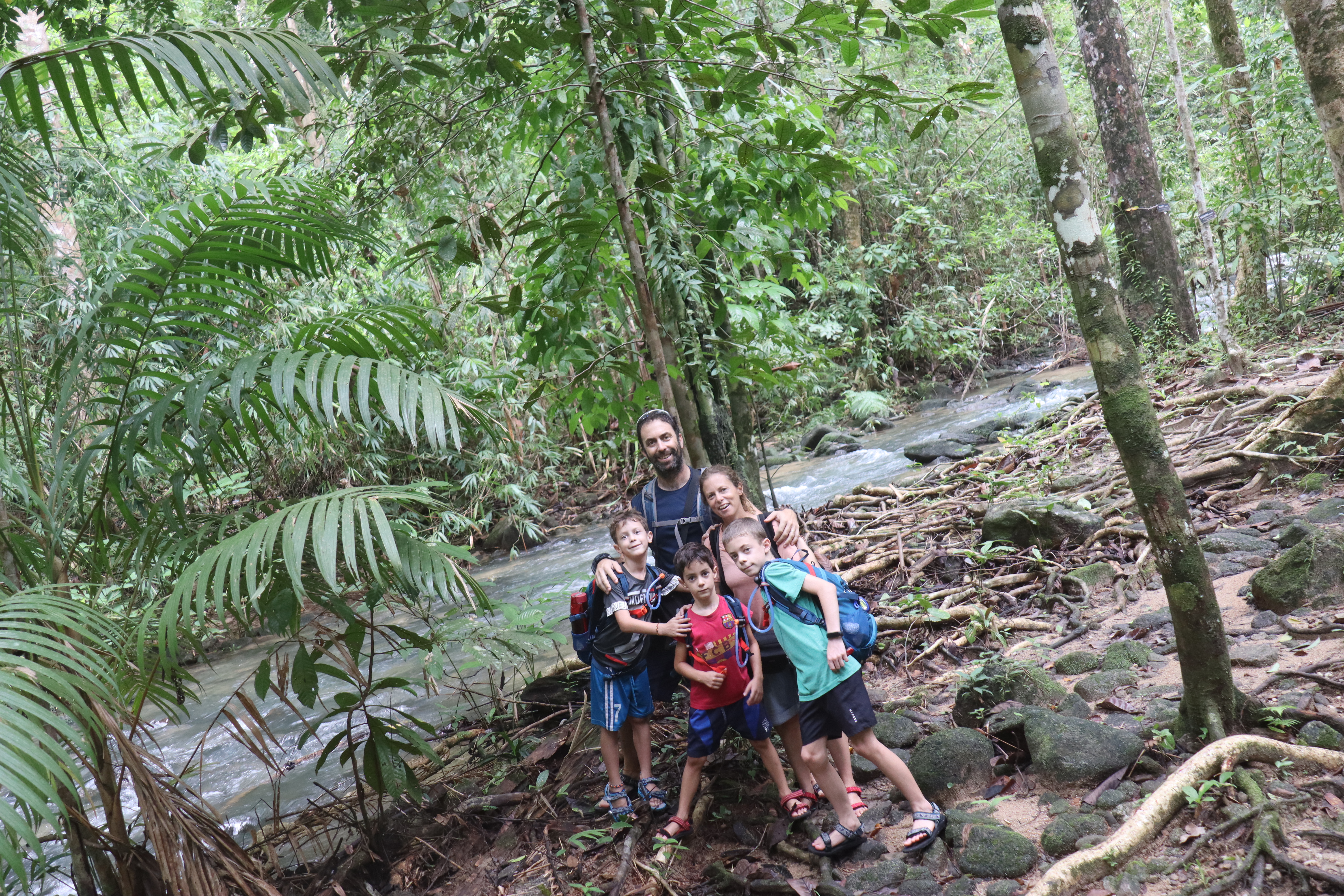 התחלנו במפל קא-טו, זה מפל שיותר מגיעים אליו בפוקט, כי הוא יותר קרוב לדברים אחרים, אבל בתקופה זו כמובן שהיינו שם עדיין די לבד. יש מלא מדרגות שמובילות אליו, וכמה בריכות שאפשר להשתכשך בהן בדרך, ואנחנו האמת בעיקר רצינו לבוא לפה בשביל עוד איזה תרגול ג׳ונגלים נח לילדים.. שמחנו לגלות שאין מתנגדים בקהל, ויצאנו לדרך. טיפסנו כמעט 500 מדרגות, עד שהתחילה להשמע התנגדות.. אז ירדנו בחזרה והשתכשכנו בנחל למטה. הילדים מצאו שם מלא דגיגונים ושיחקו איתם בעניין וסבלנות, כשהדגיגונים עושים להם מסאג׳ באצבעות..