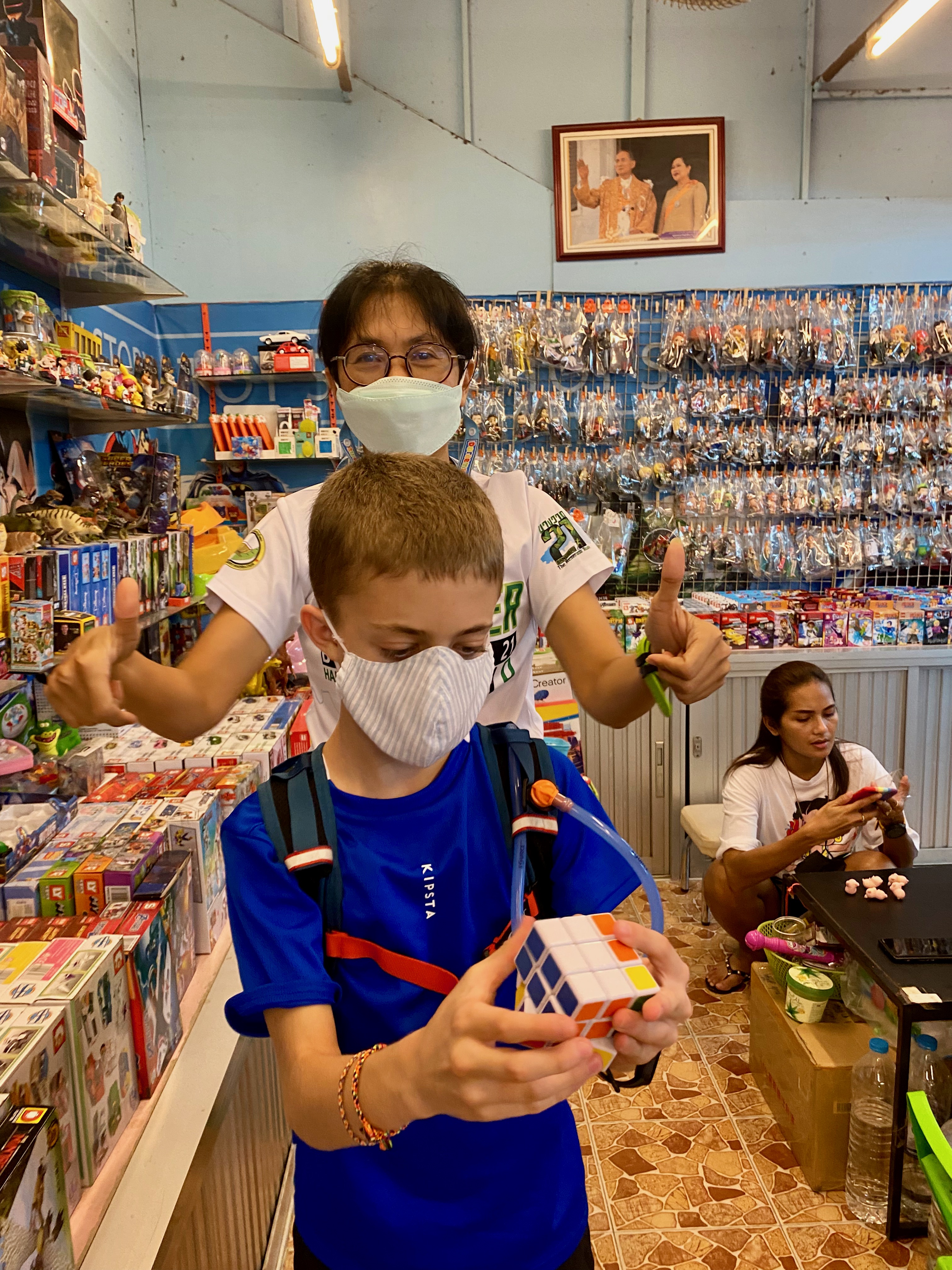אתמול בבקר (11/10/21) התעוררנו באמצע עיר תאילנדית, לא מתויירת בכלל. אכלנו את ארוחת הבוקר של המלון (אורז עם ירקות לארוחת בקר, רב הילדים זרמו!!) ויצאנו לקצת סידורים – הוצאת כסף מהבנק (העמלות הכי נמוכות הן כשמושכים כסף מהכרטיס אשראי אצל בנקאי, הרבה יותר משתלם מאשר בכספומט) ובית מרקחת בחיפוש אחר התכשיר המושלם, שעוד לא ניסינו נגד היתושים שכל כך אוהבים את גל.. שזה בלתי נסבל.