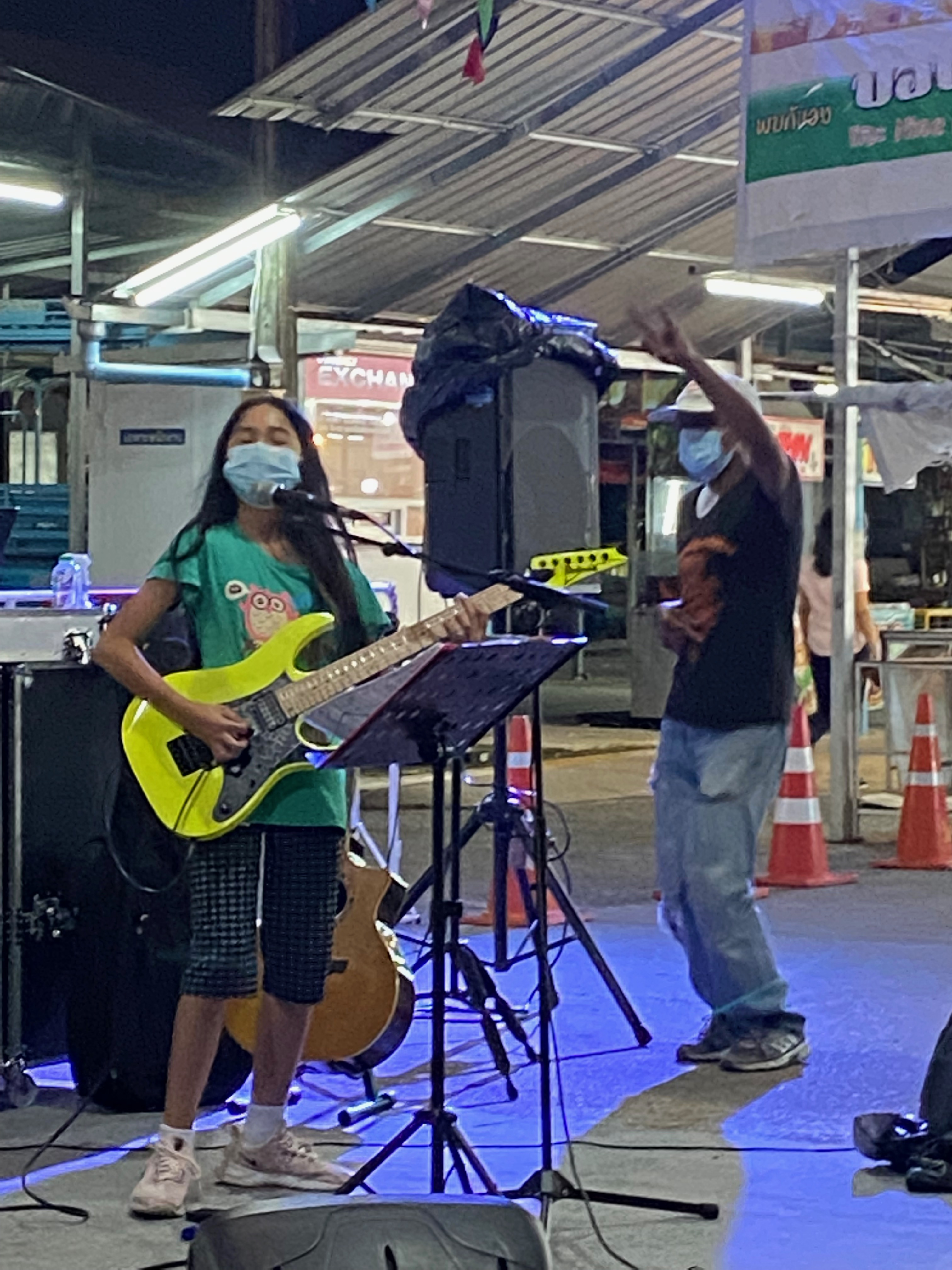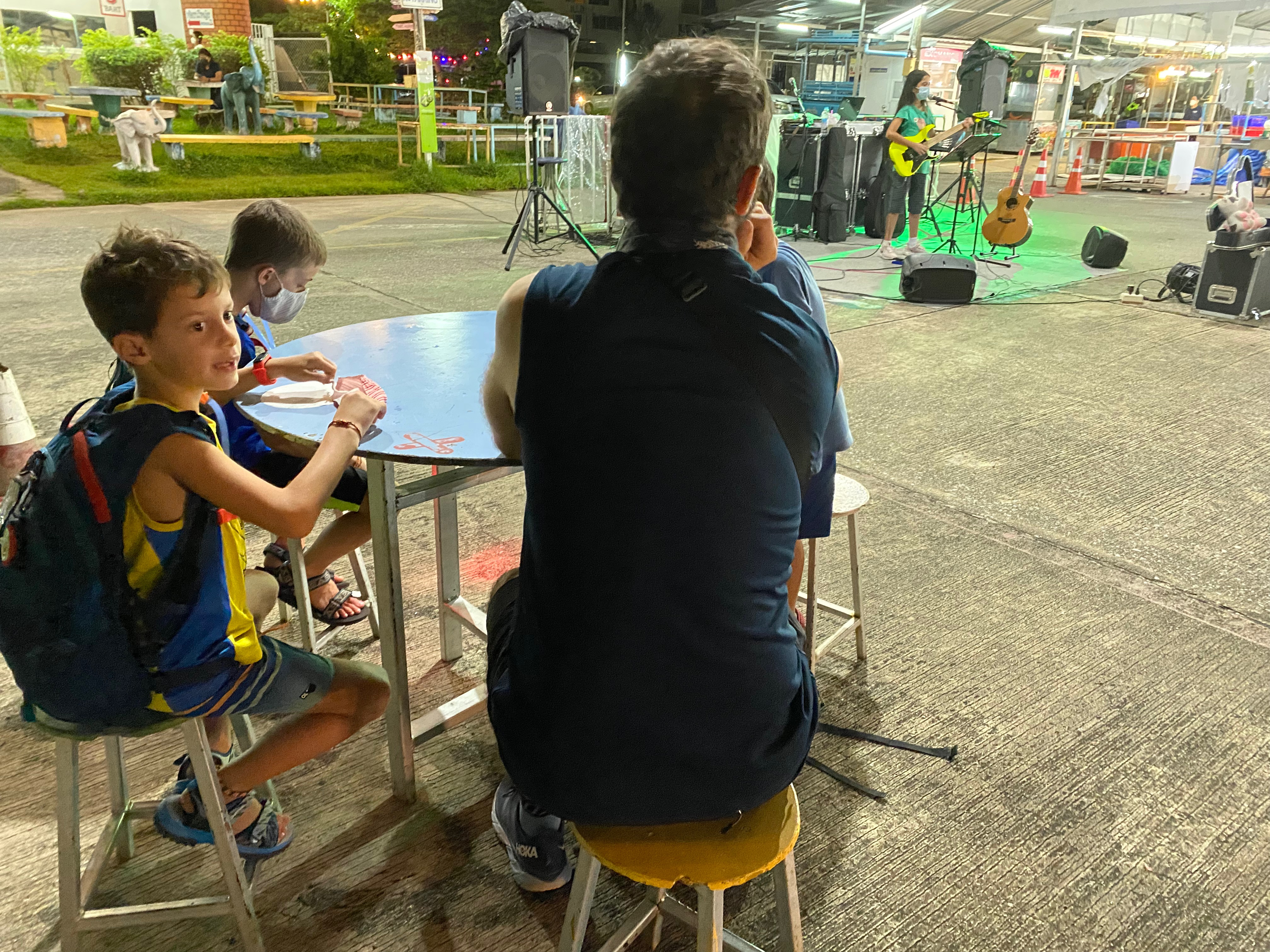 כשיצאנו משם שוק הלילה בנאקה כבר היה פתוח, והמשכנו ישר אליו. גילינו שוק הרבה יותר פתוח ושוקק חיים מזה שפגשנו לפני שבועיים.. הקטנים ישר רצו את מיץ קנה הסוכר שהובטח להם. עידו חיפש סמן לייזר (ומצא וקנה מכספו, וכמובן שישר האחים שלו רצו גם וקנו מכספם..) אחר כך ישבנו באיזור האוכל שם הופיעה ילדה בת 11 שניגנה מהמם בגיטרה שלה ושרה קאברים לכל מיני שירים בכל מיני סגנונות, והילדים (וגם אנחנו) התלהבו ממנה. קנינו כמה כדורי בטטה שהיו טעימים לילדים וסגרנו שם גם ארוחת ערב. היה יום ממש ארוך וממש כייפי!