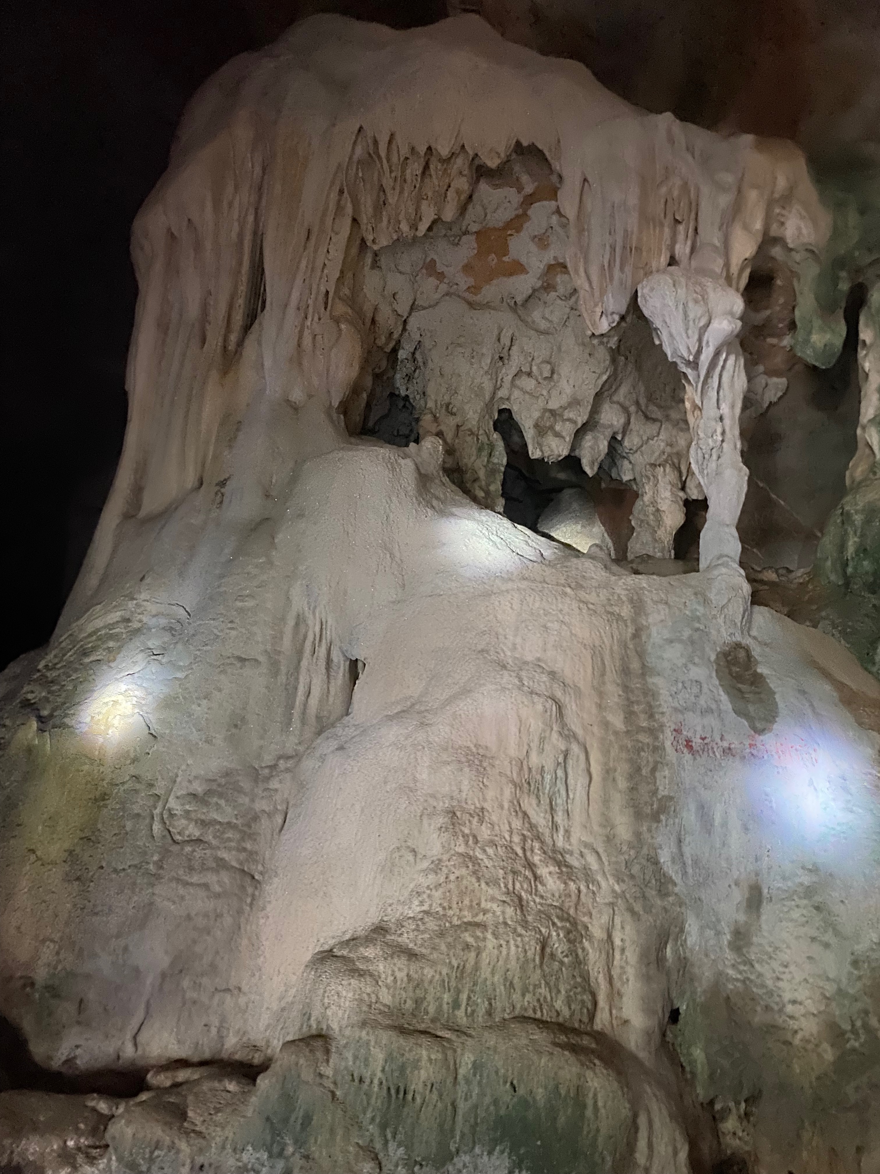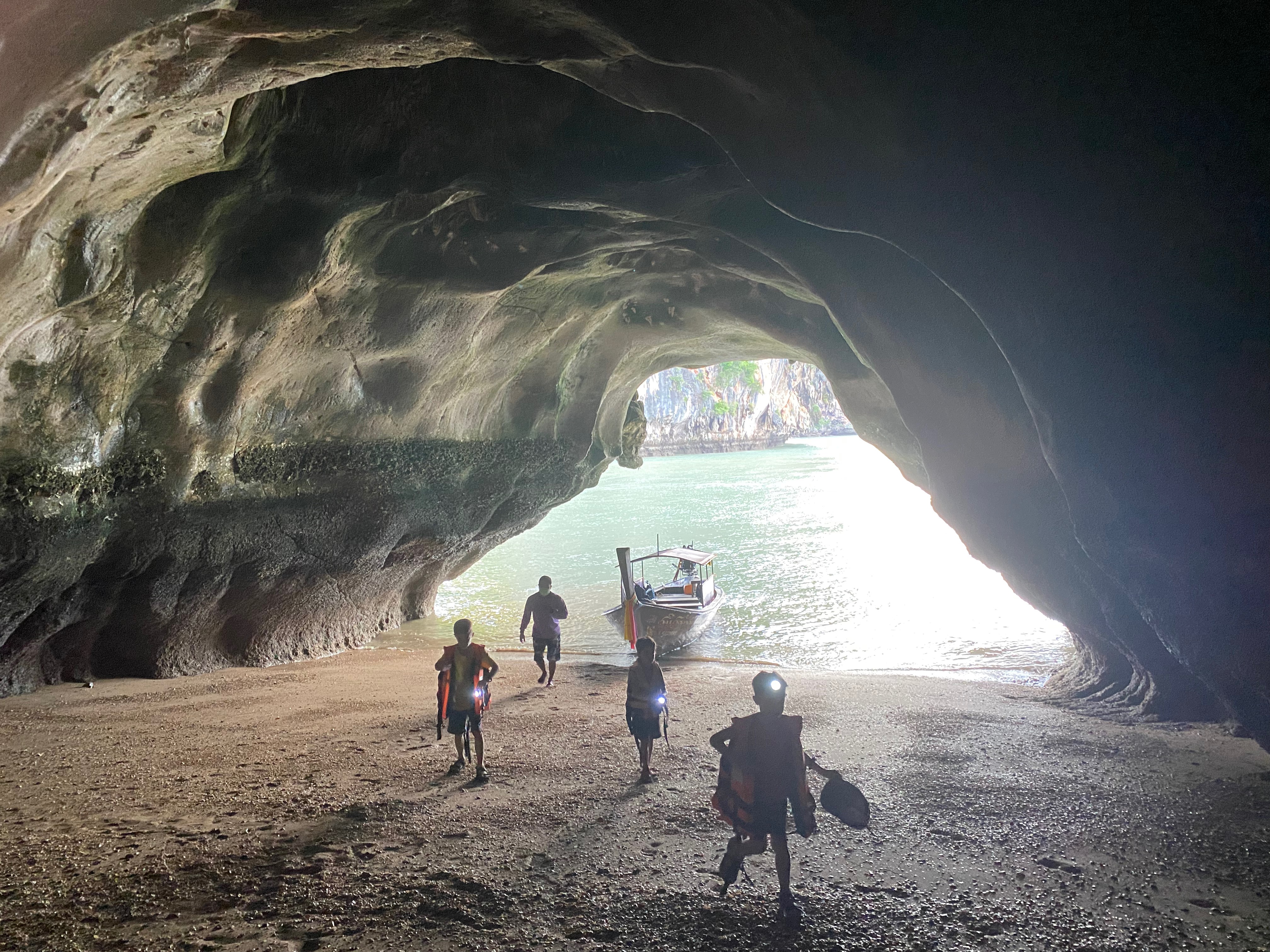 משם המשכנו למערת נטיפים מהממת עם קריסטלים מבהיקים בלבן ועטלפים חמודים על התקרה. ואחר כך שטנו לשביל קטן שמתגלה בגאות ונעלם בשפל, אצלינו הוא היה גלוי בחלקו.. הבחור שמשיט את הסירה לקח את הטלפון של גל לצלם אותנו, ובזמן שאנחנו כולנו עסוקים בזה עידו הצביע לסירה ואמר שהיא נסחפת… ממש ברגע האחרון קפץ המשיט למים ושחה והצליח בקושי להשיג את הסירה, לטפס עליה ולהחזיר אותה אלינו.