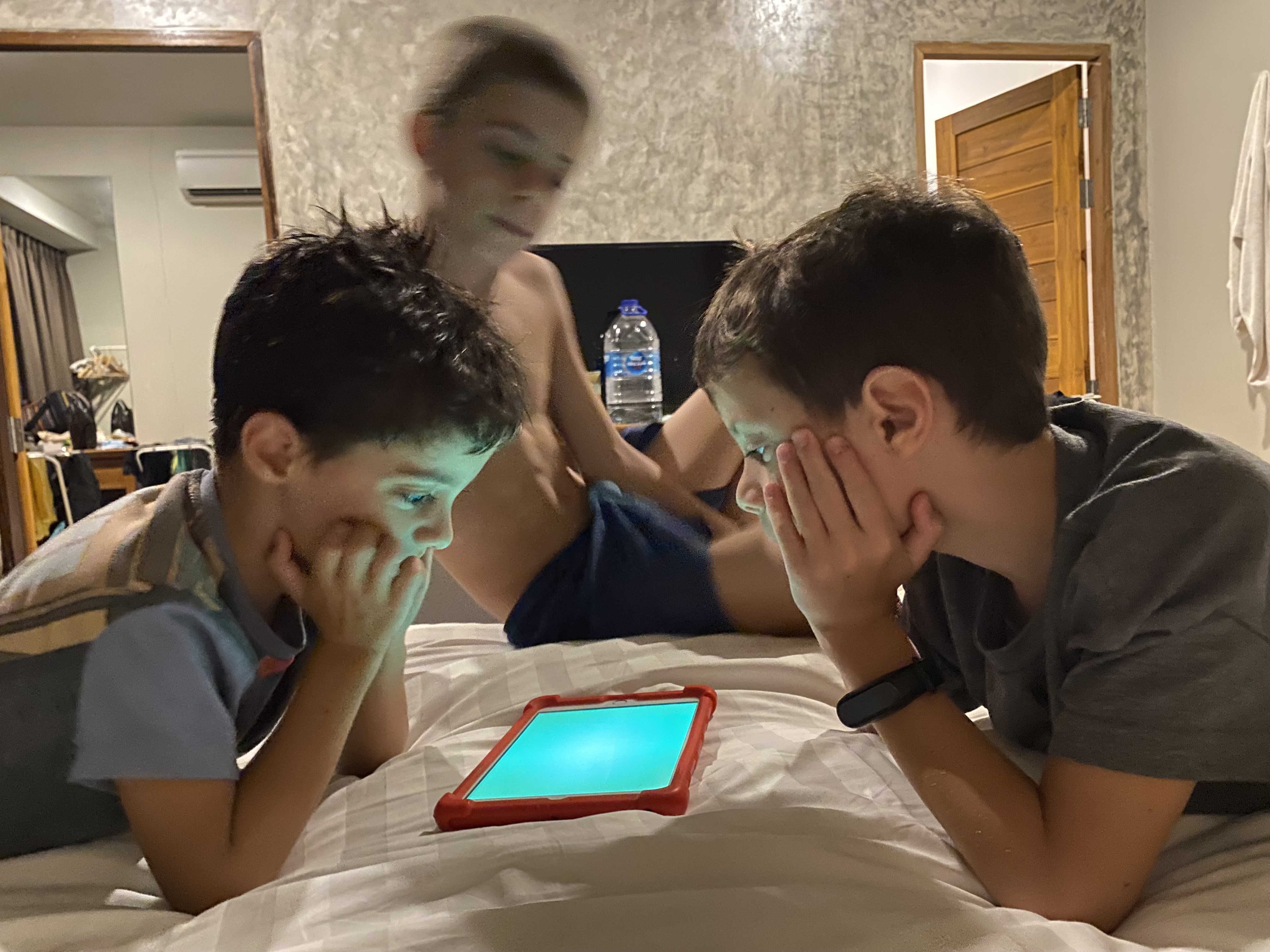 ואכן הגענו למלון הנטוש הזה, חדר אחד לגל ועידו וחדר לי ולקטנים, מרגיש מלון עירוני תאילנדי. לא מיועד לתיירים, אבל נקי ומרווח, נראה שמאוד הושקע בעיצוב האבירי שלו אבל כשלבד במקום כל כך גדול ויורד גשם ללא הפסקה זה נראה קצת מוזר. אחרי המקלחות התיישבנו לעוד טורניר יניב.. אחלה משחק!!