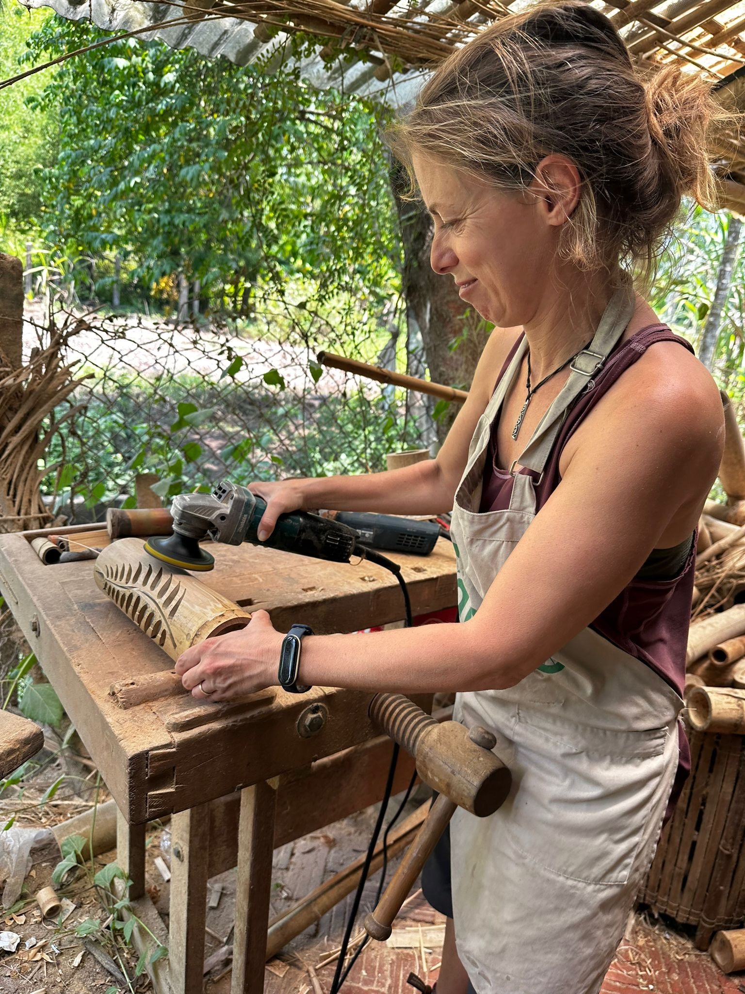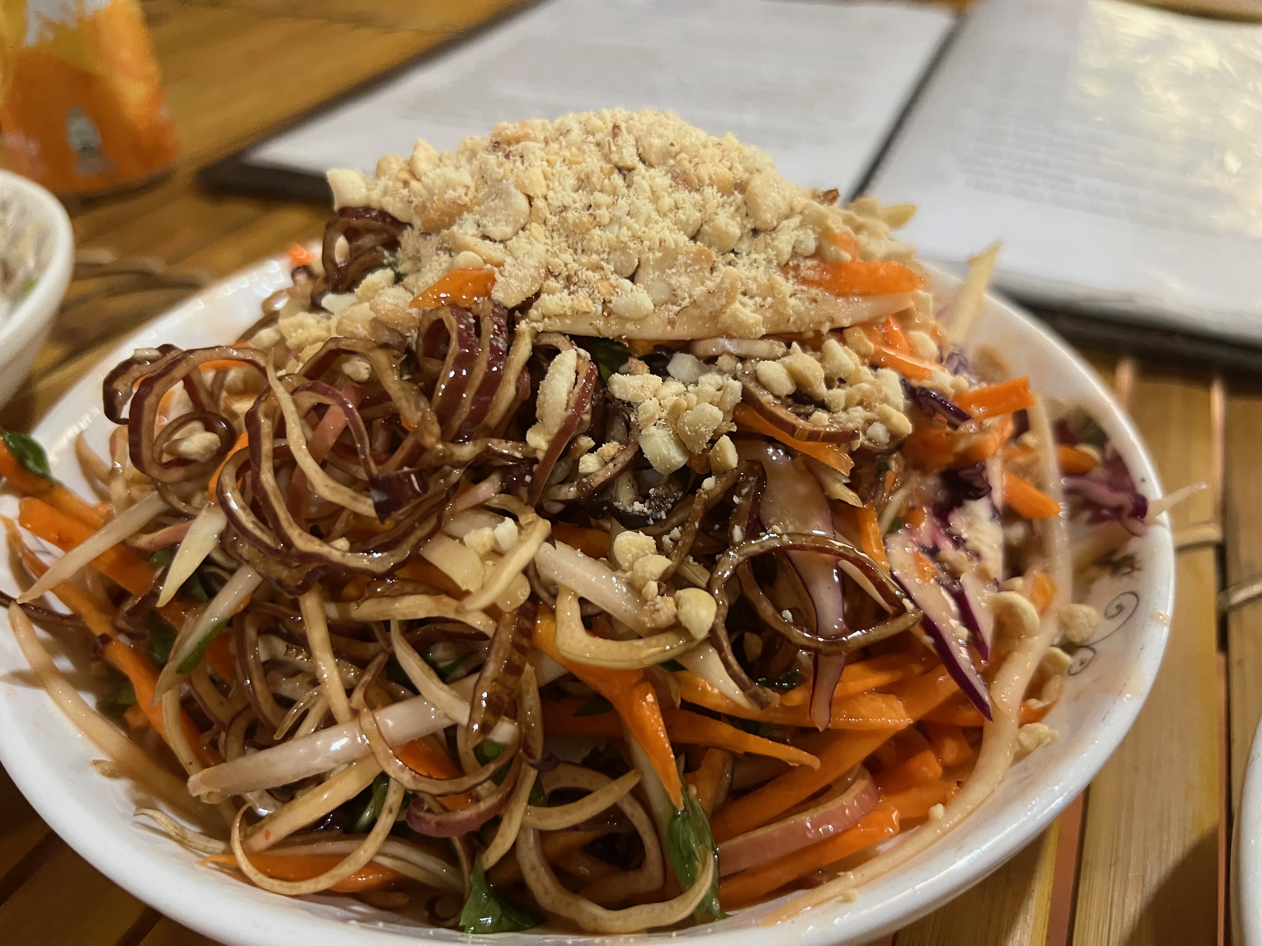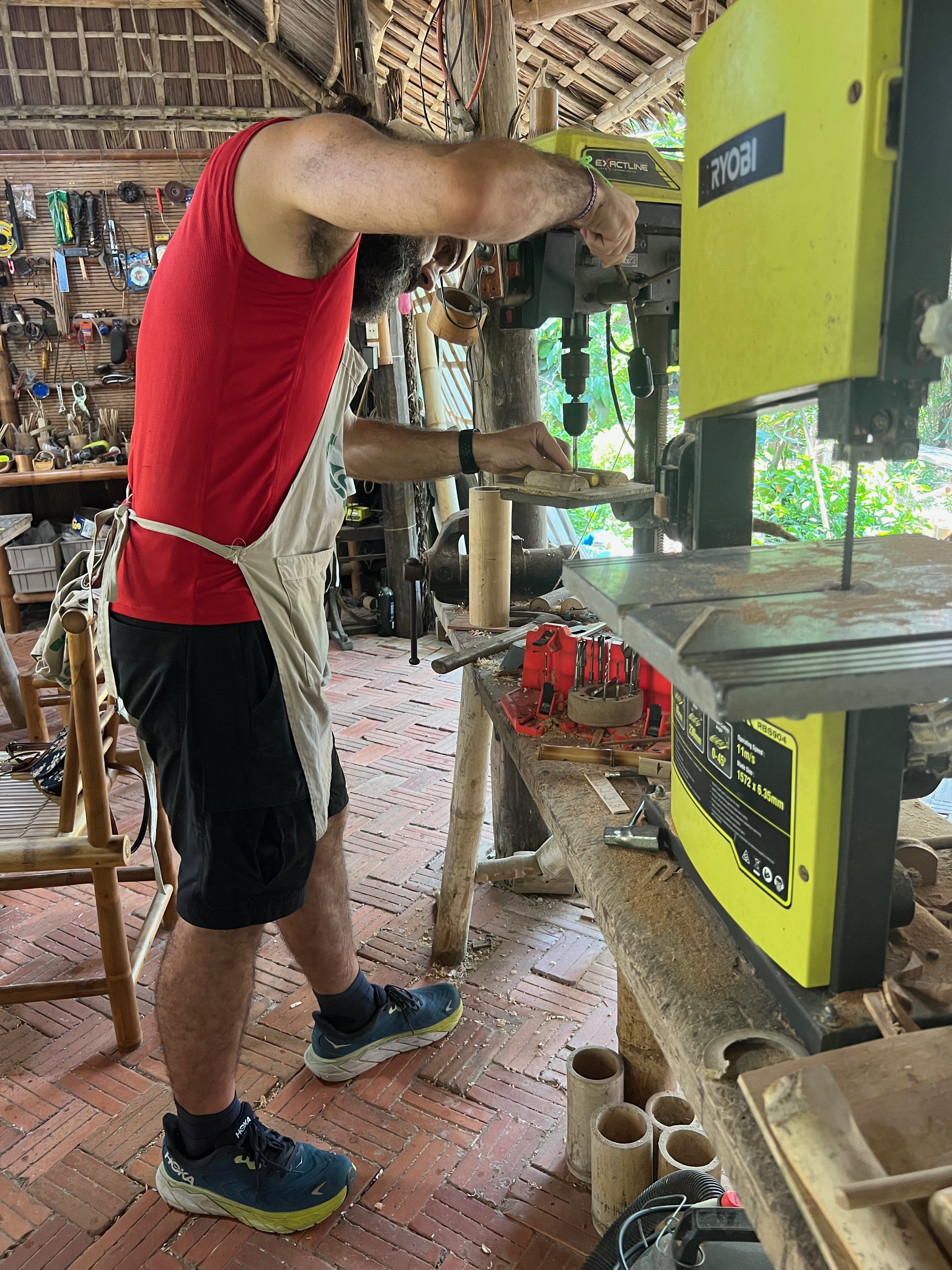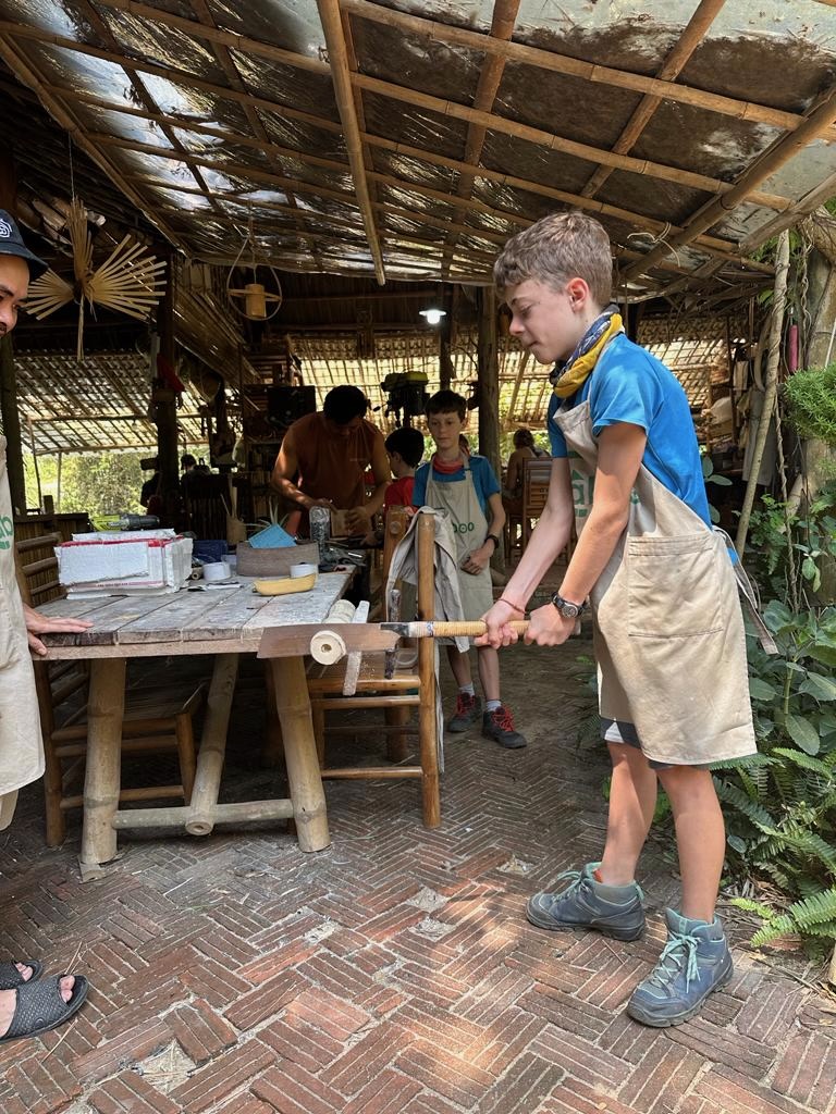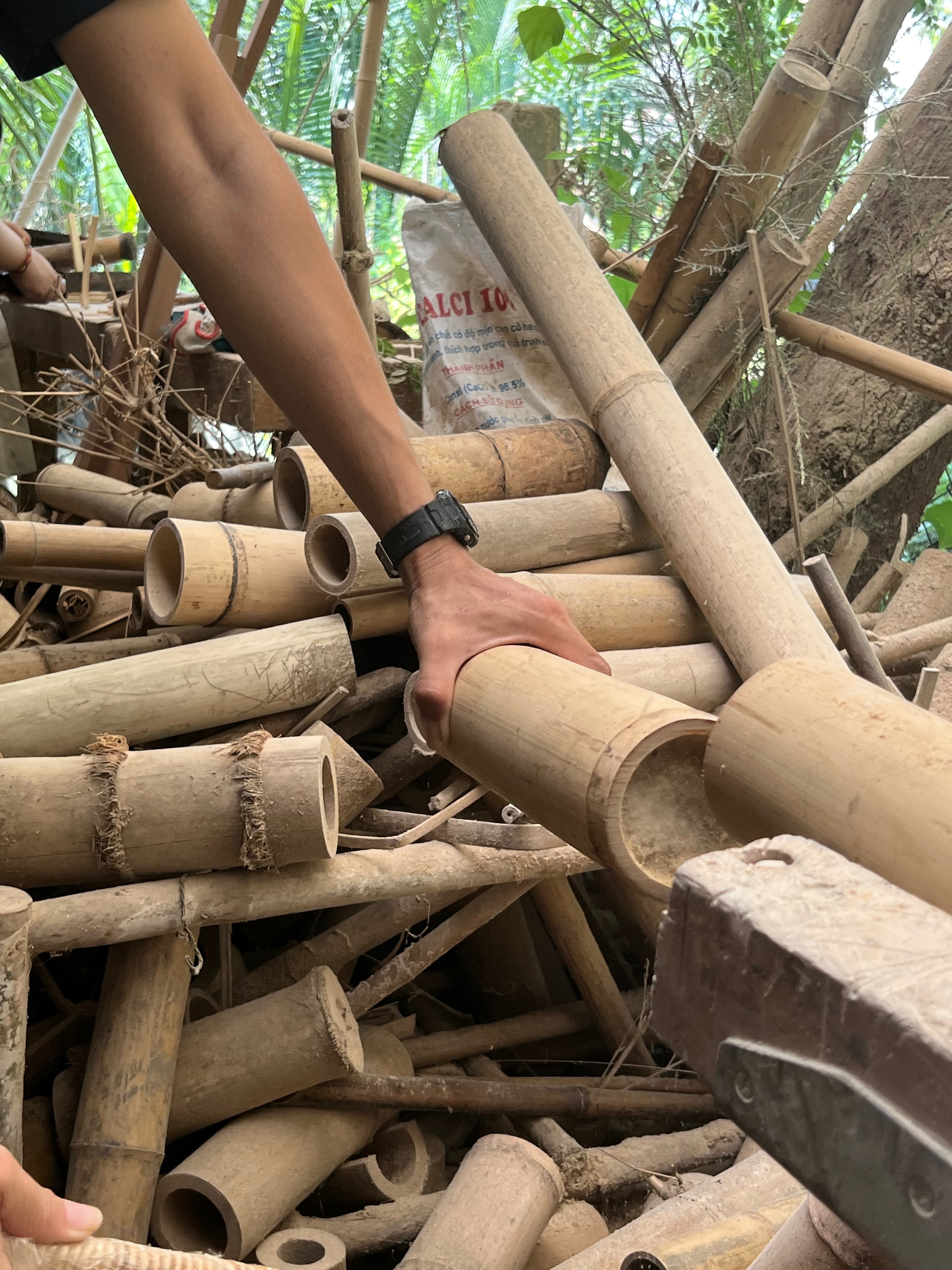 בבקר למחרת קבענו סדנת במבוק בכפר אמנים קרוב. בעל המקום, בן למשפחה שעוסקת ביצירת חפצים ואומנות מבמבוק במשך שנים בדרכים מסורתיות. כיום משלבים כלי עבודה מודרנים וזה כמובן מייעל את מהירות העבודה בהמון. הבמבוק הוא חומר אידאלי, הוא צומח ממש מהר – מגיע ל30-40 ס״מ ביום! והוא חזק וקל, ויוצרים ממנו כל כך הרבה.. יש בערך 250 סוגים שונים של במבוקים בויאטנם, וכל אחד יכול לשמש לדברים אחרים. אחרי 4 שנים הם חותכים את הבמבוק ומשקיעים אותו לשנה בבוץ של הנהר. הבוץ והכימיקלים במים הופכים את הבמבוק ללא-אטרקטיבי למזיקים ואז הוא אידיאלי לעבודות גילוף ובניה.