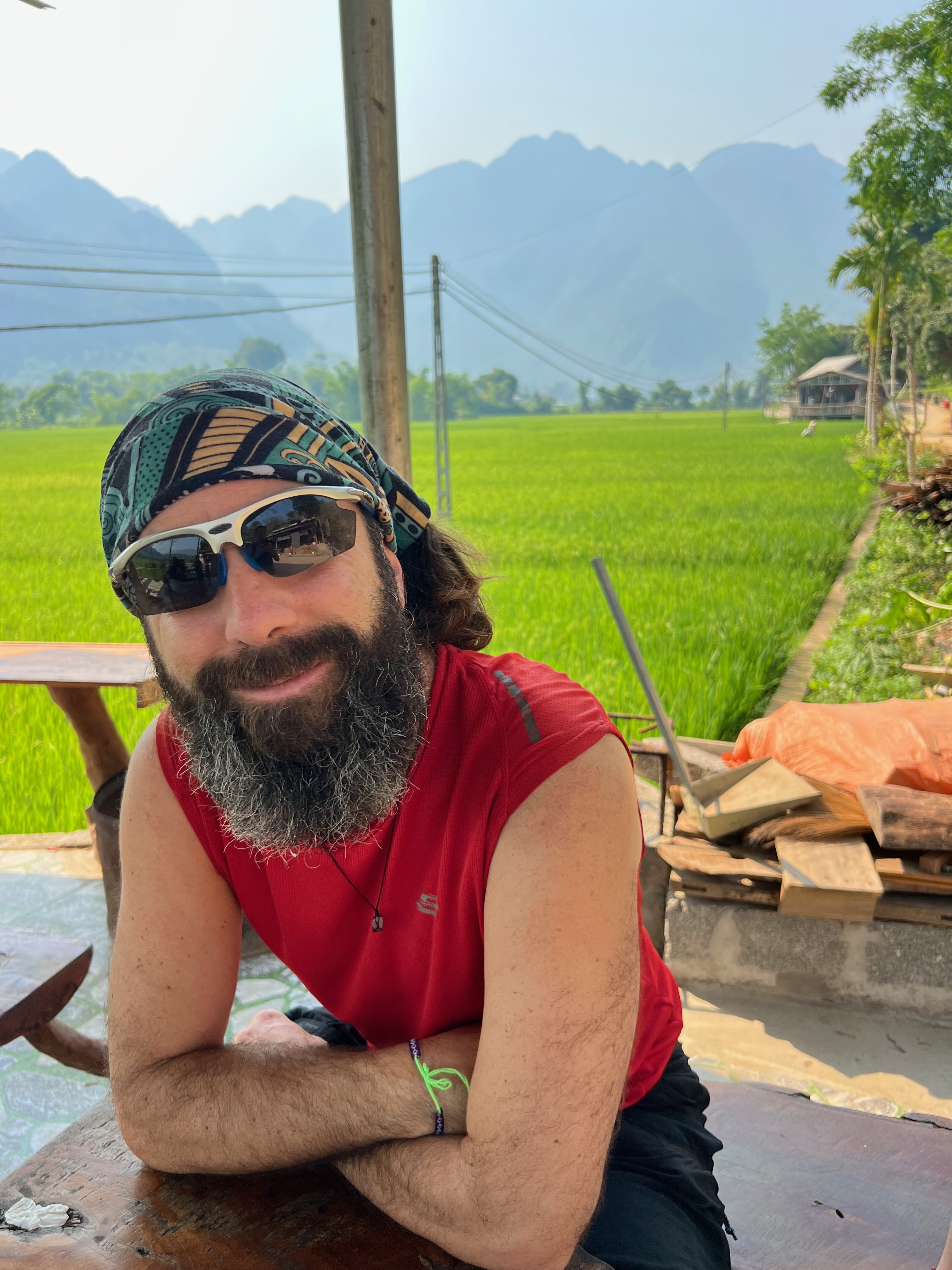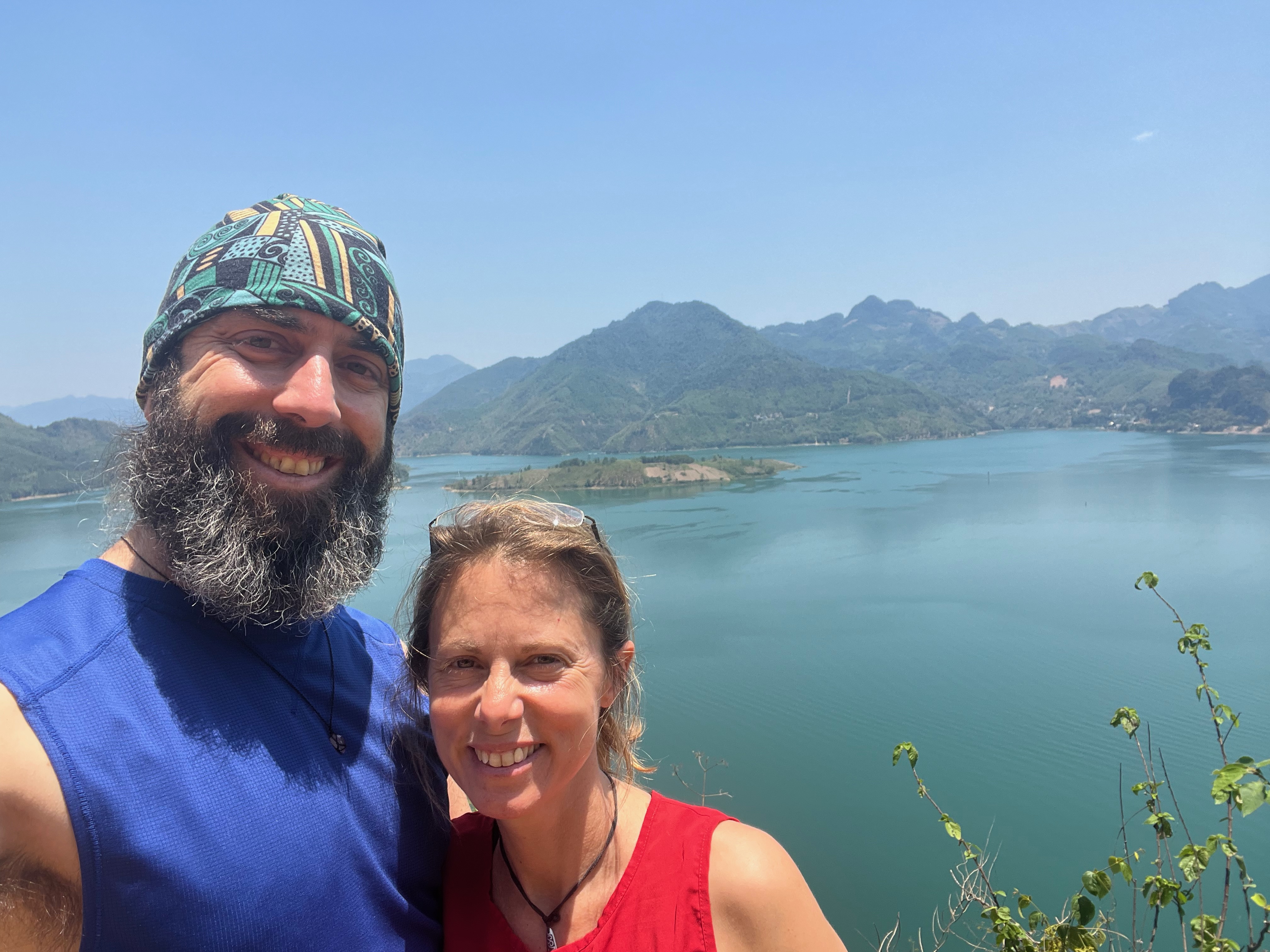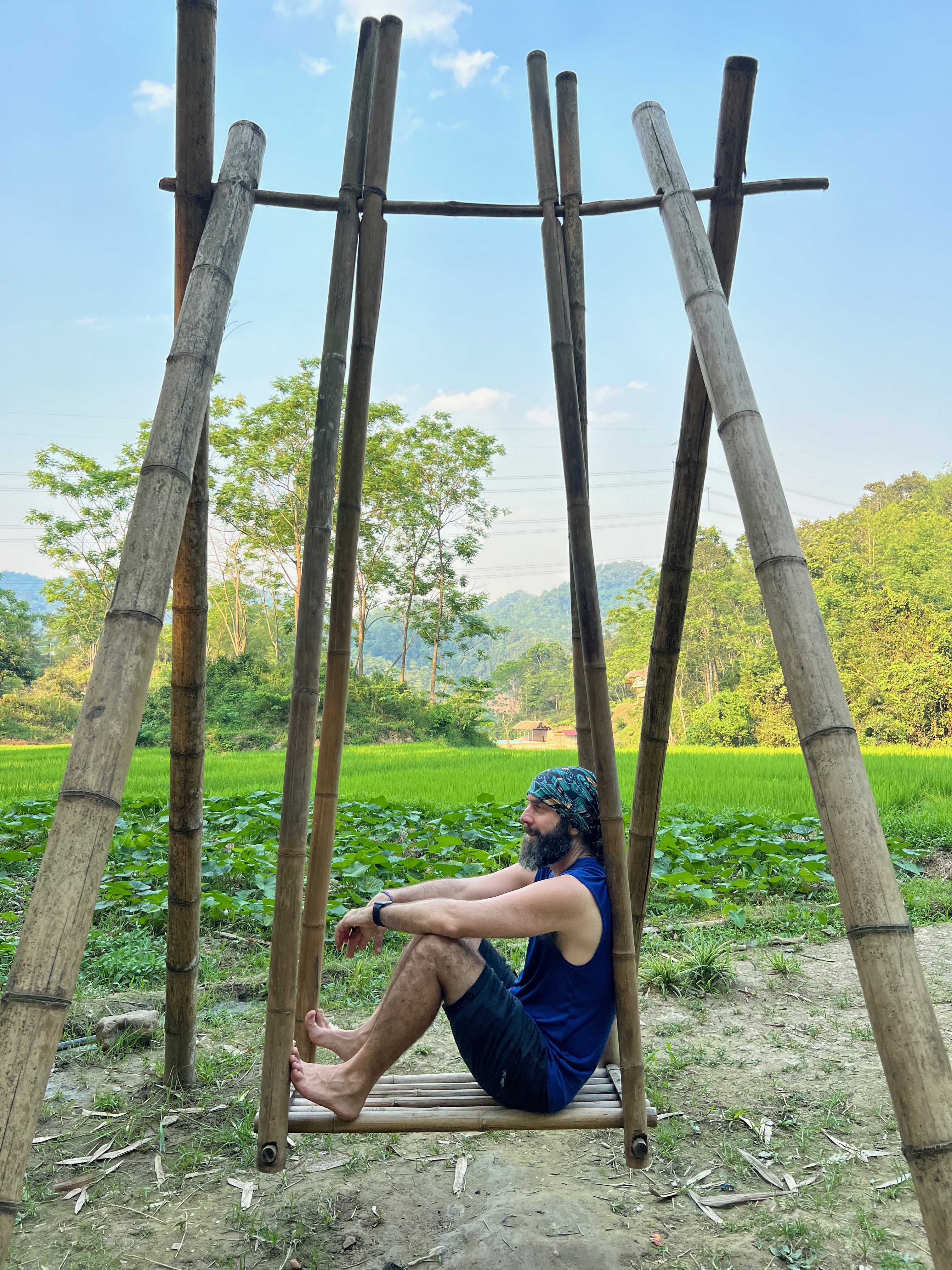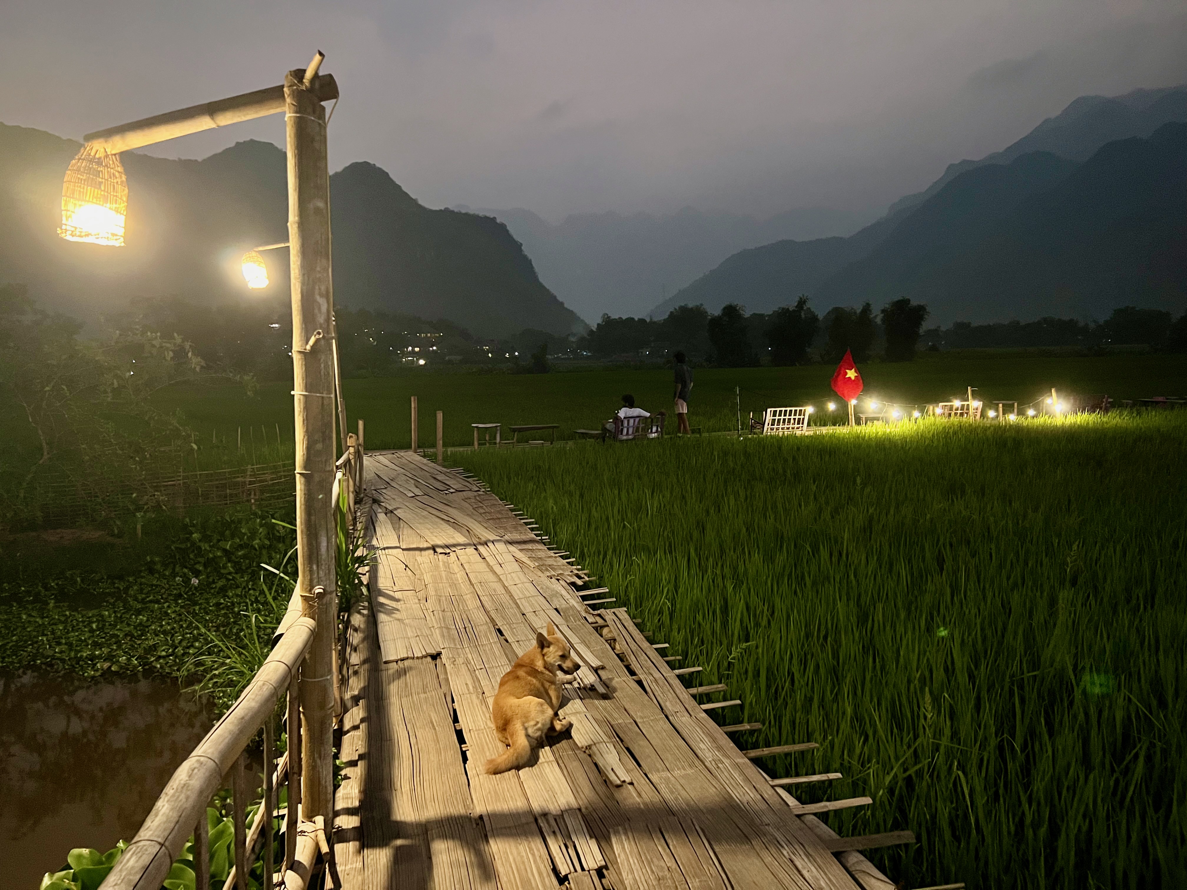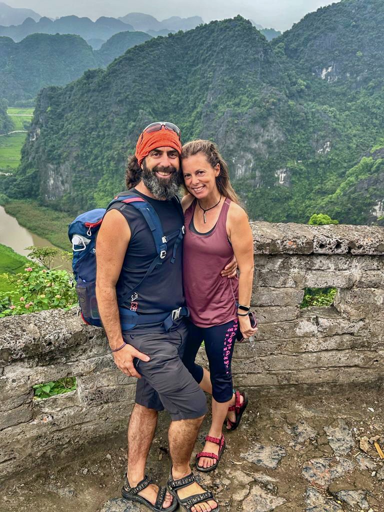 למחרת בבקר הכרנו את השכנים החמודים שלנו, נעם ועודי והבן שלהם איילון בן השנתיים. הופתענו שסה״כ על אף הפרשי הגילאים והשלבים השונים סה״כ בחיים, עדיין אנחנו חולקים לא מעט חוויות וגם אתגרים דומים, ושמחנו מאוד על המפגש. עשינו בקר רגוע של לימודים ואוריגמי וזמן איכות עם מבוגרים אחרים. ואחרי ארוחת צהריים יצאנו לטיול בשדות לכיוון תצפית מרהיבה על האיזור. טיילנו בין שדות אורז לשדות לוטוס, ומסביבנו צוקי גיר בולטים מהקרקע.. עד שהגענו למדרגות שמטפסות על אחד הצוקים.. לתצפית משגעת.. ממש מדהים.. צופים מצד אחד על הנהר שבו משייטות סירות תיירים ובצד השני השדות ובקצה הצוק פסל של דרקון, שבגללו כולם קוראים למקום התצפית עם הדרקון, במקום דאם סן האנג מואה – שזה משהו כמו ׳מערת ריקוד בריכת הלוטוס׳. באמת בבסיס הצוק יש גם מערה קטנה:)