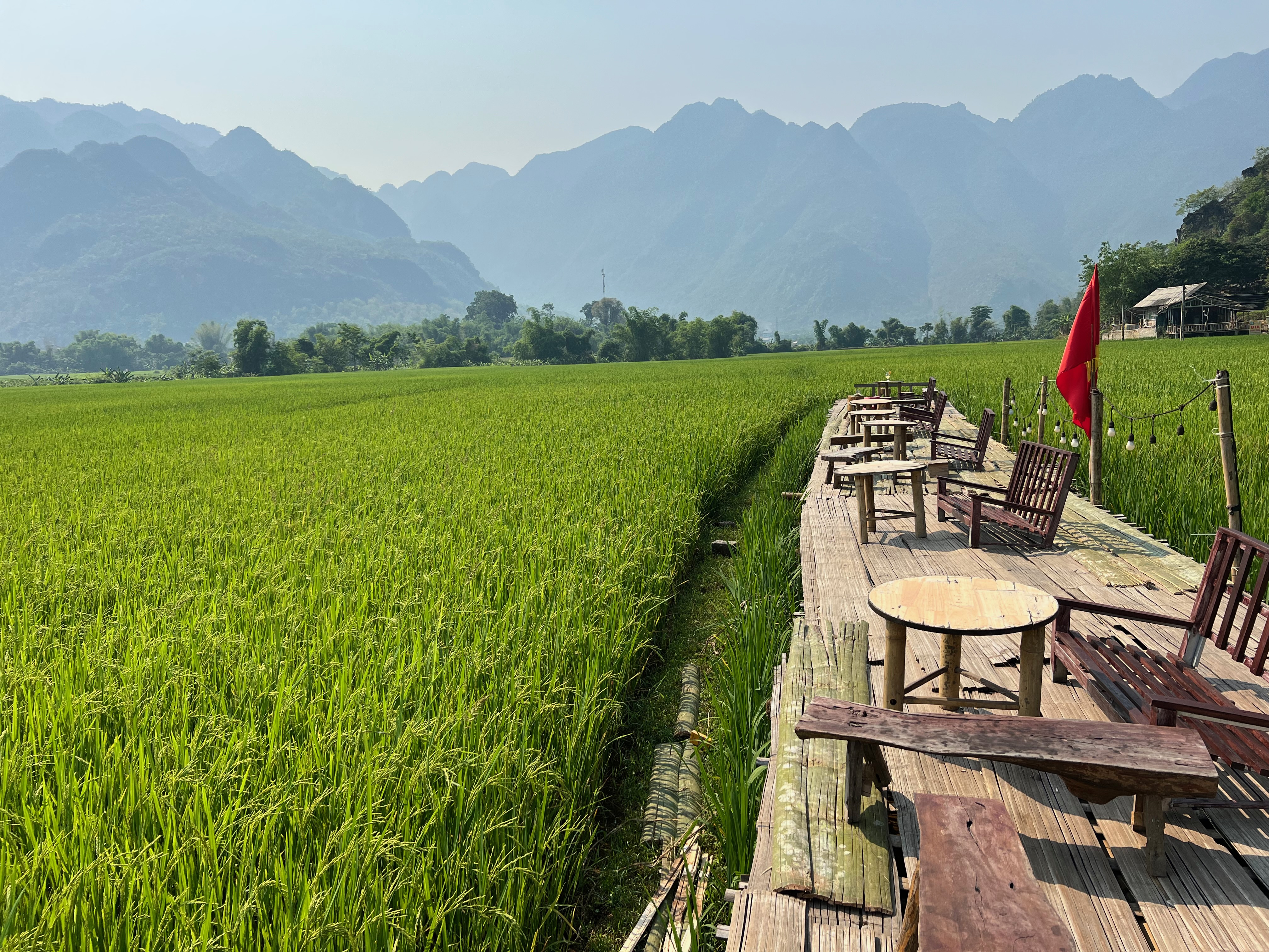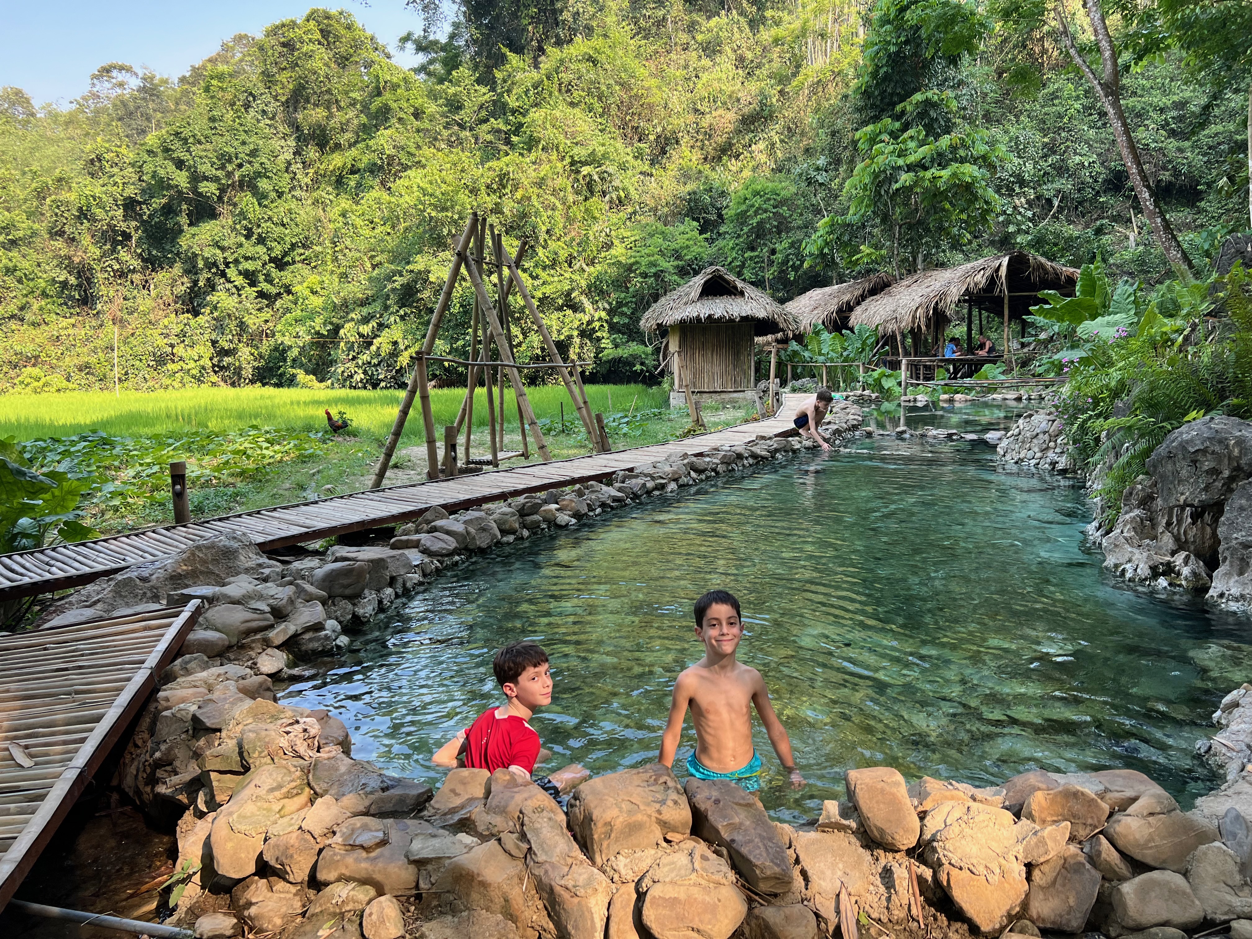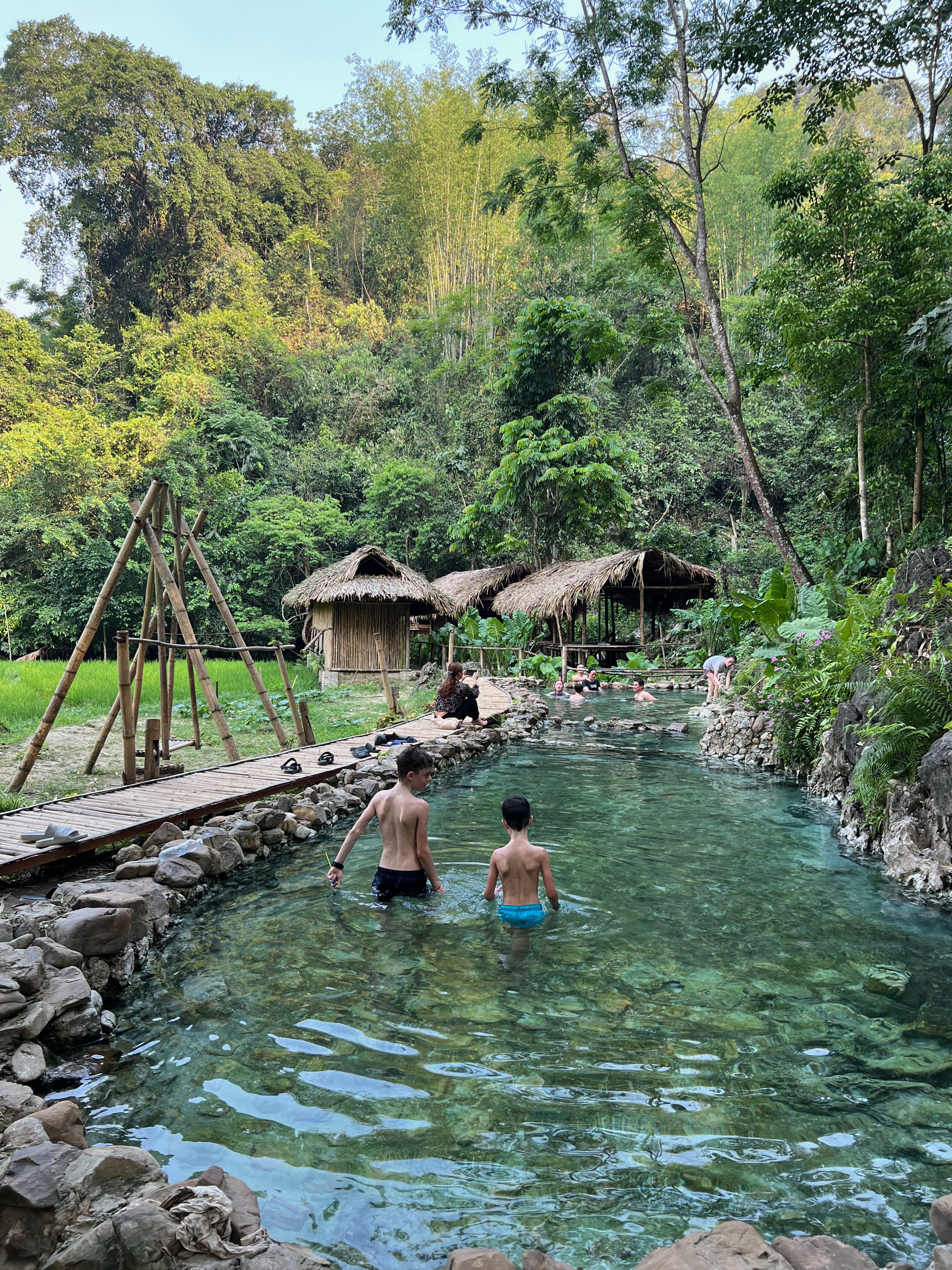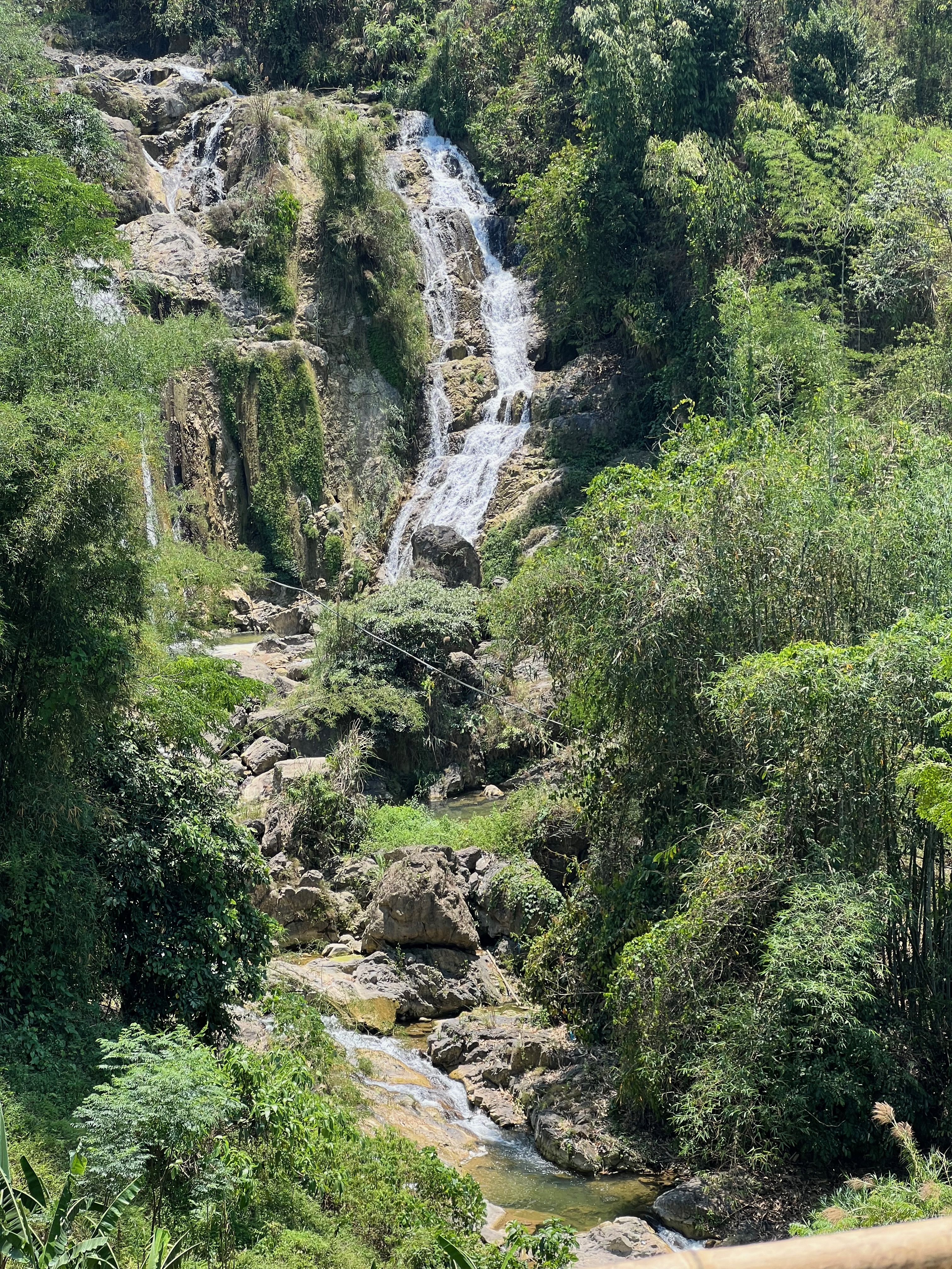 למחרת נסענו למאי צ׳או. ואן אסף אותנו מוקדם בבקר מפתח המלון, ולקח אותנו לדרך של שלוש שעות כמעט, לאיזור מאי צ׳או. שם טיילנו ב43 מעלות, בין מפלים כייפים ומרעננים שאפשר להתרחץ בהם, נקודות תצפית יפהפיות לגלים של שדות האורז מתחתינו, ומעיינות חמים מקסימים שאליהם הגענו רק כשכבר היו פחות מ43 מעלות, וגם אחרי שהתקררנו במפלים.. היה יום מקסים שבסופו הגענו לגסט האוז מתוק (חדר פשוט פשוט אבל מיקום מהמם) בין שדות האורז השופעים של מאי צ׳או.