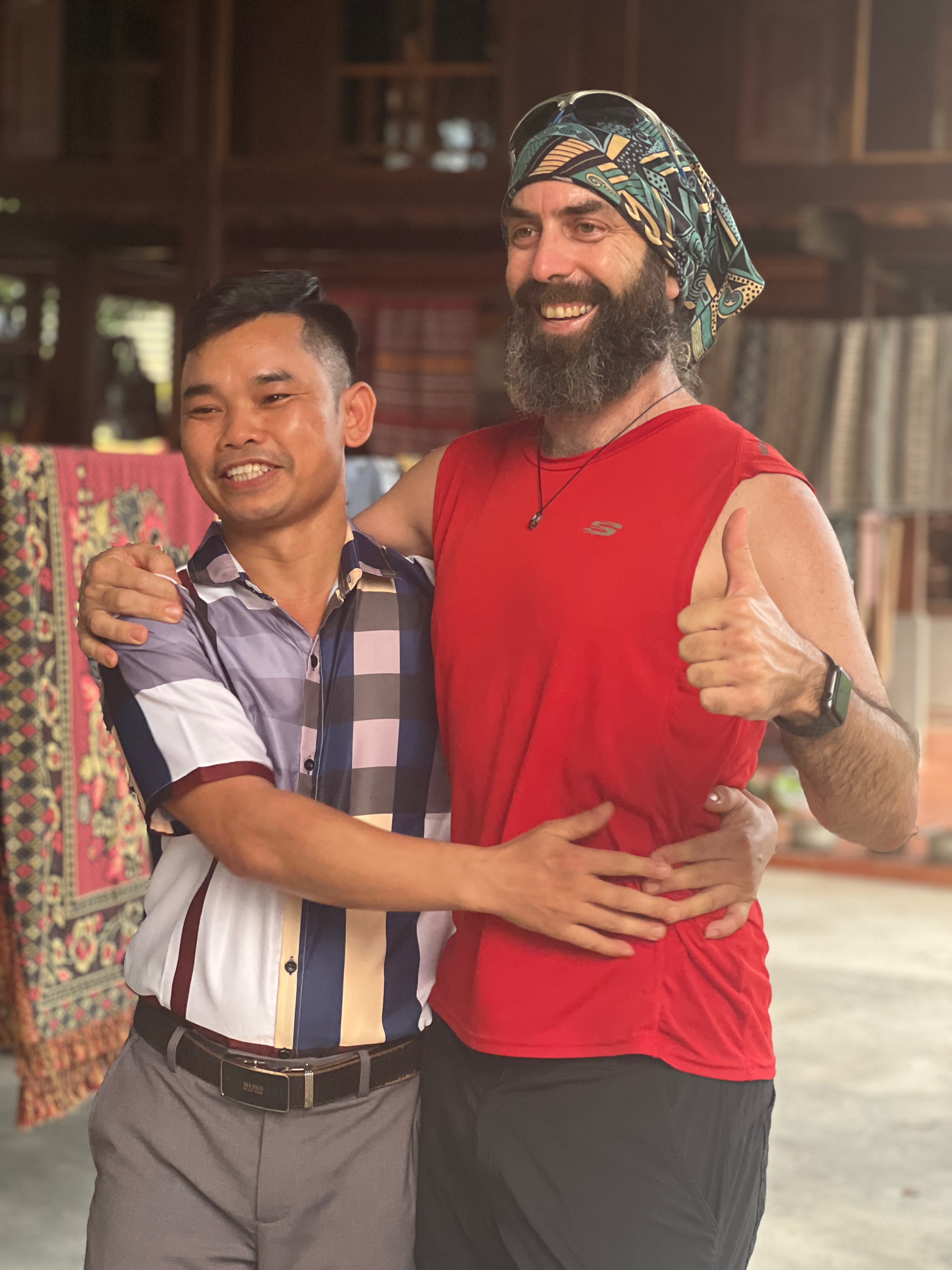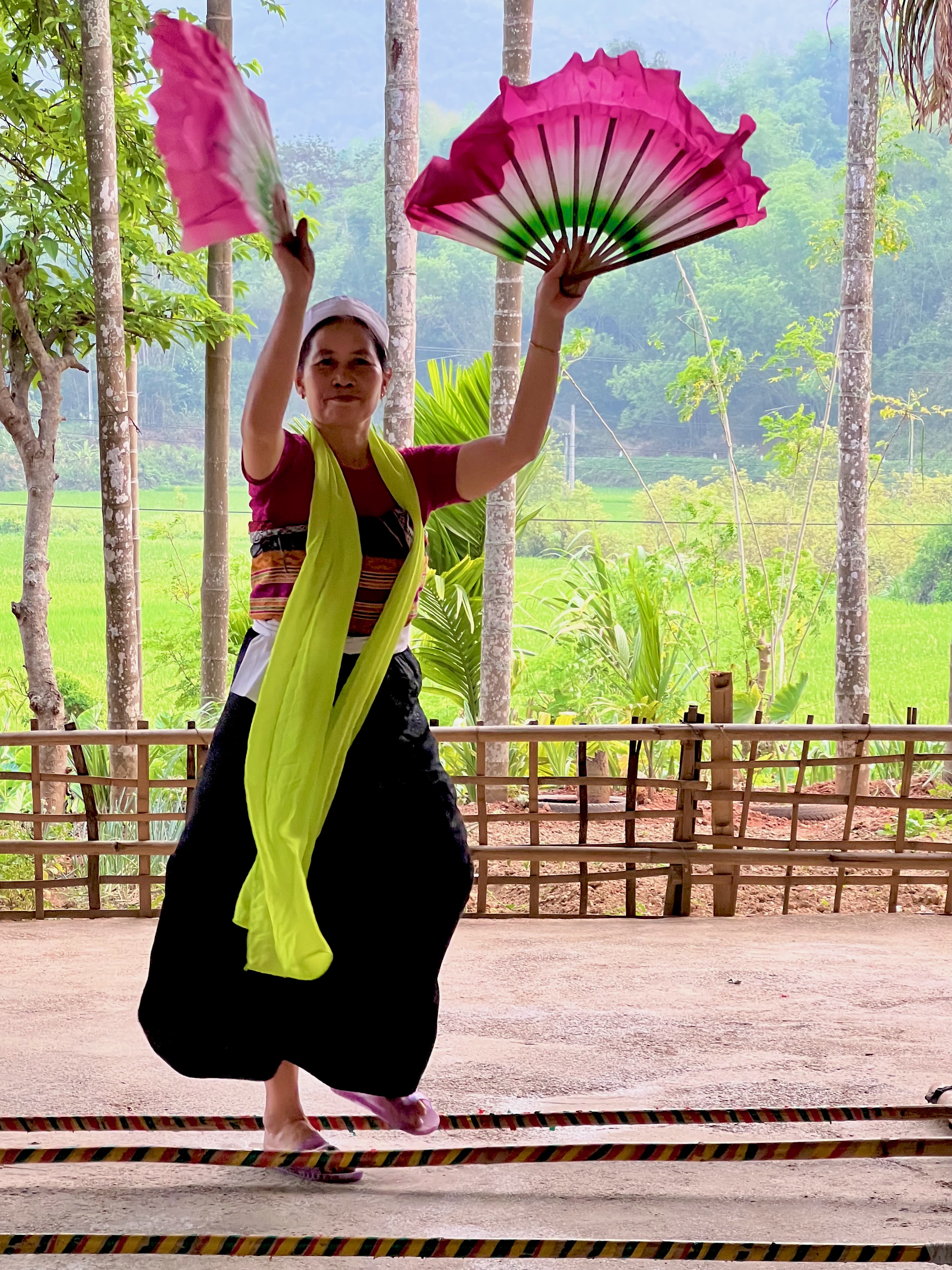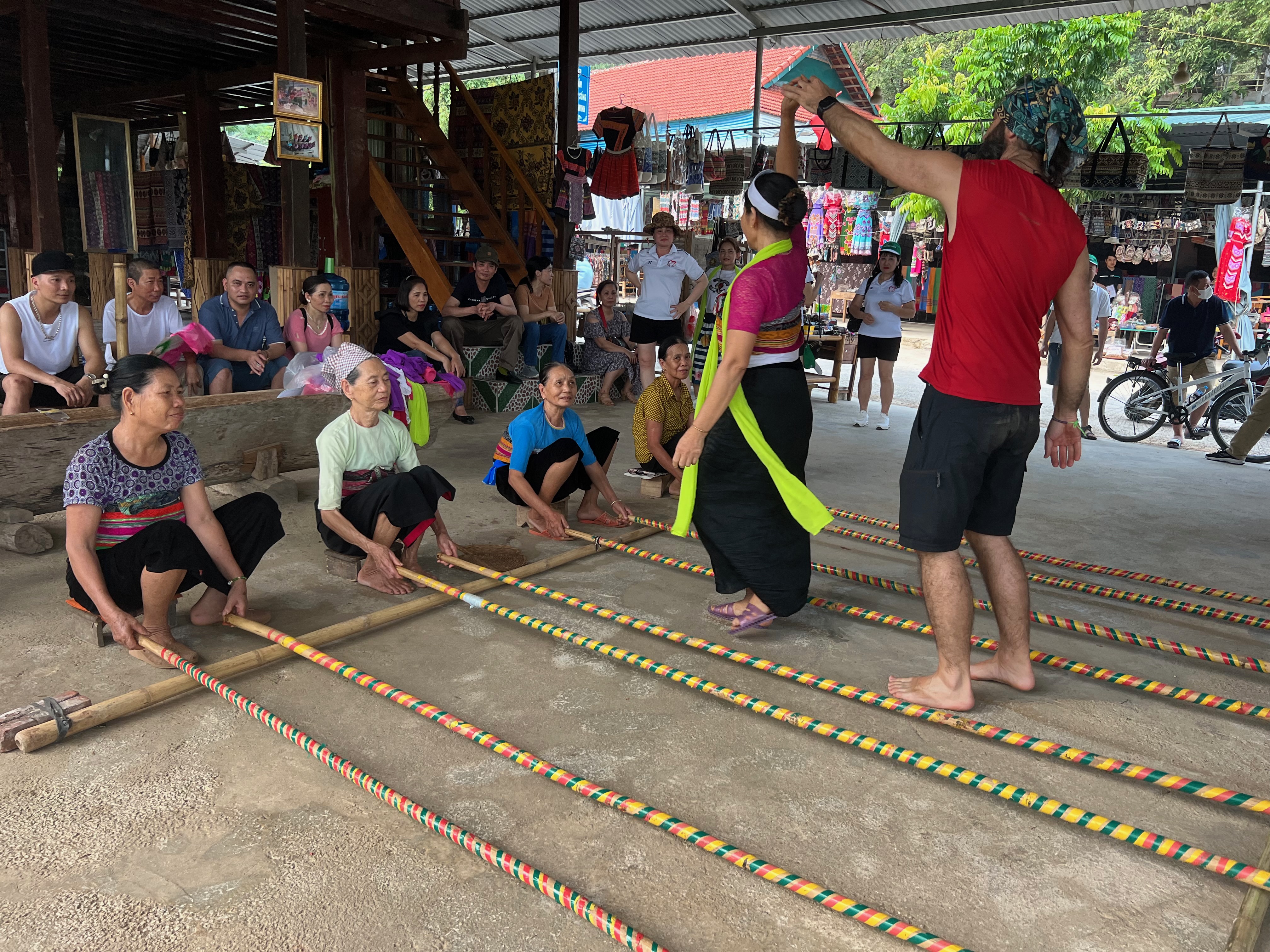 הו אז הפקדנו את הילדים בחדר ויצאנו לטיול שקיעה ארוך על האופנוע לבד.. עצרנו בכפר, לקנות מתנה מעוד פיית שיניים וגילינו חבורה מקומית רוקדת ריקוד מסורתי עם כמה מוטות במבוק בקצב מדליק.. מהר הם סחפו אותנו להצטרף לריקוד.. לרגע זה ממש נראה כאילו חבורה מקומית השתעממה אחר הצהריים והחליטה לרקוד ביחד, אבל אז קבוצה קטנה של תיירים ויאטנמים עזבו את המקום והשאירו אותנו לרקוד לבד..
