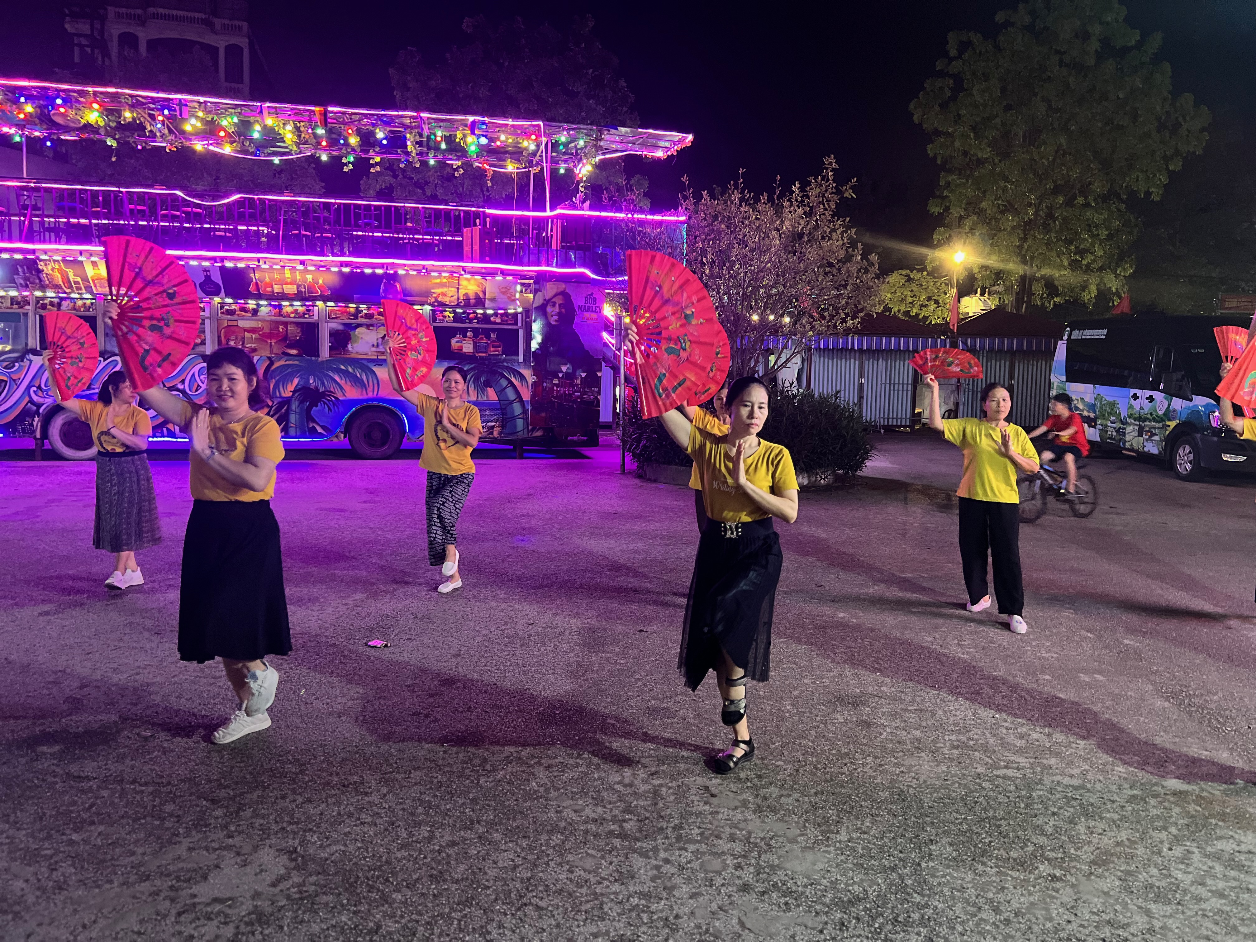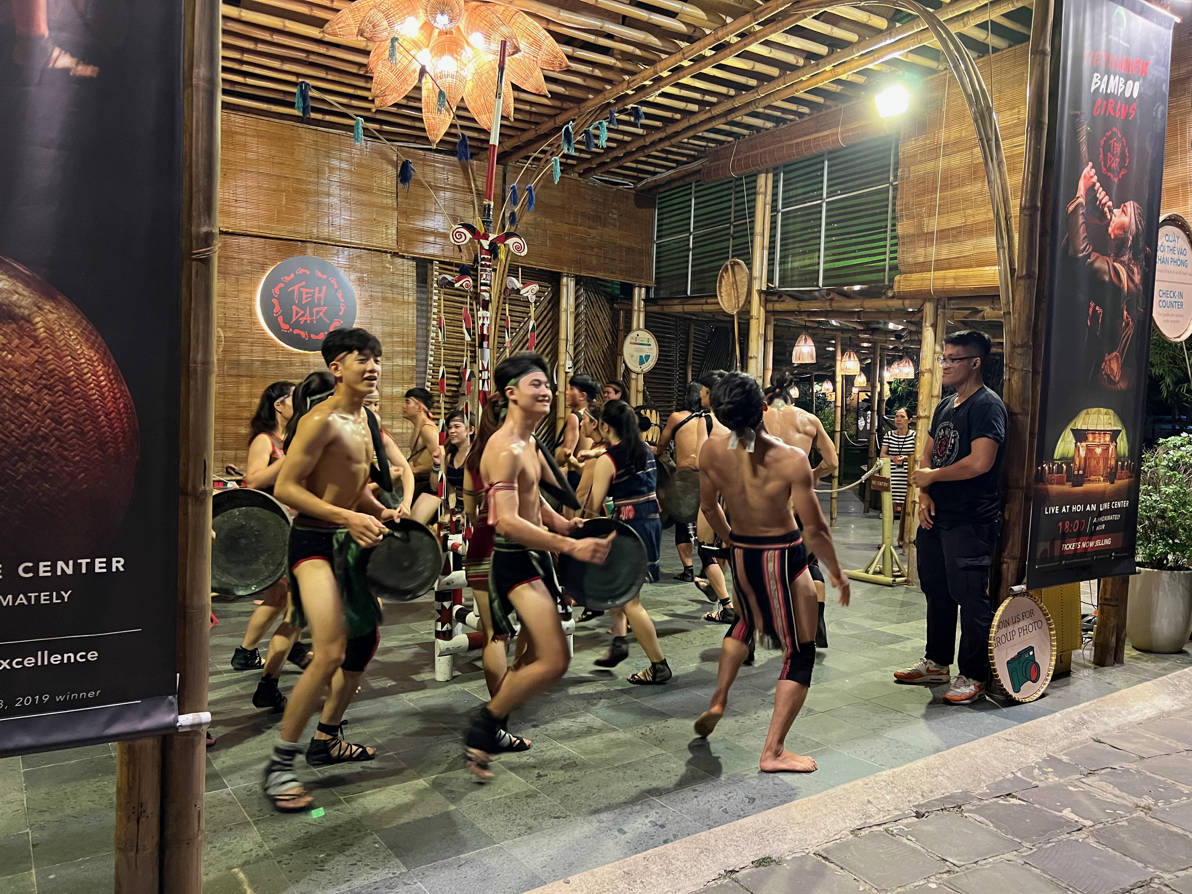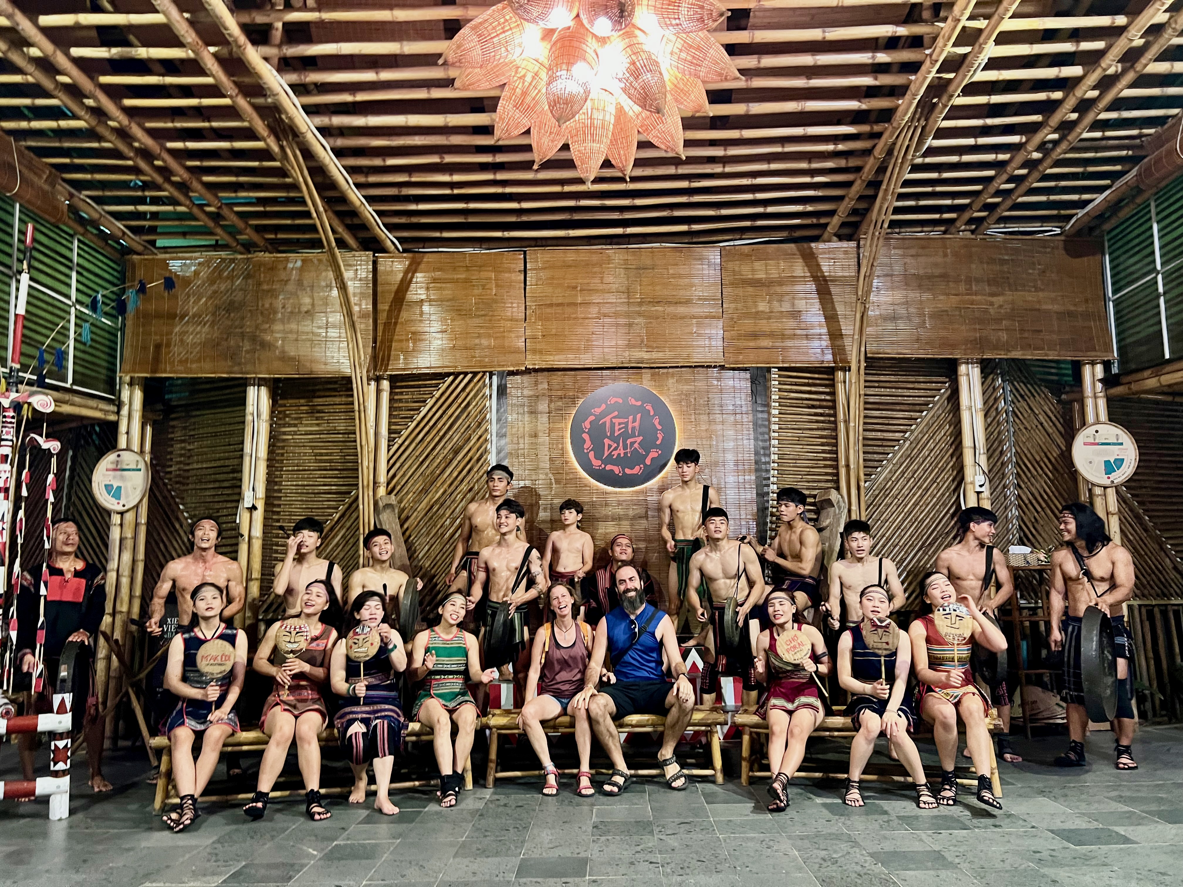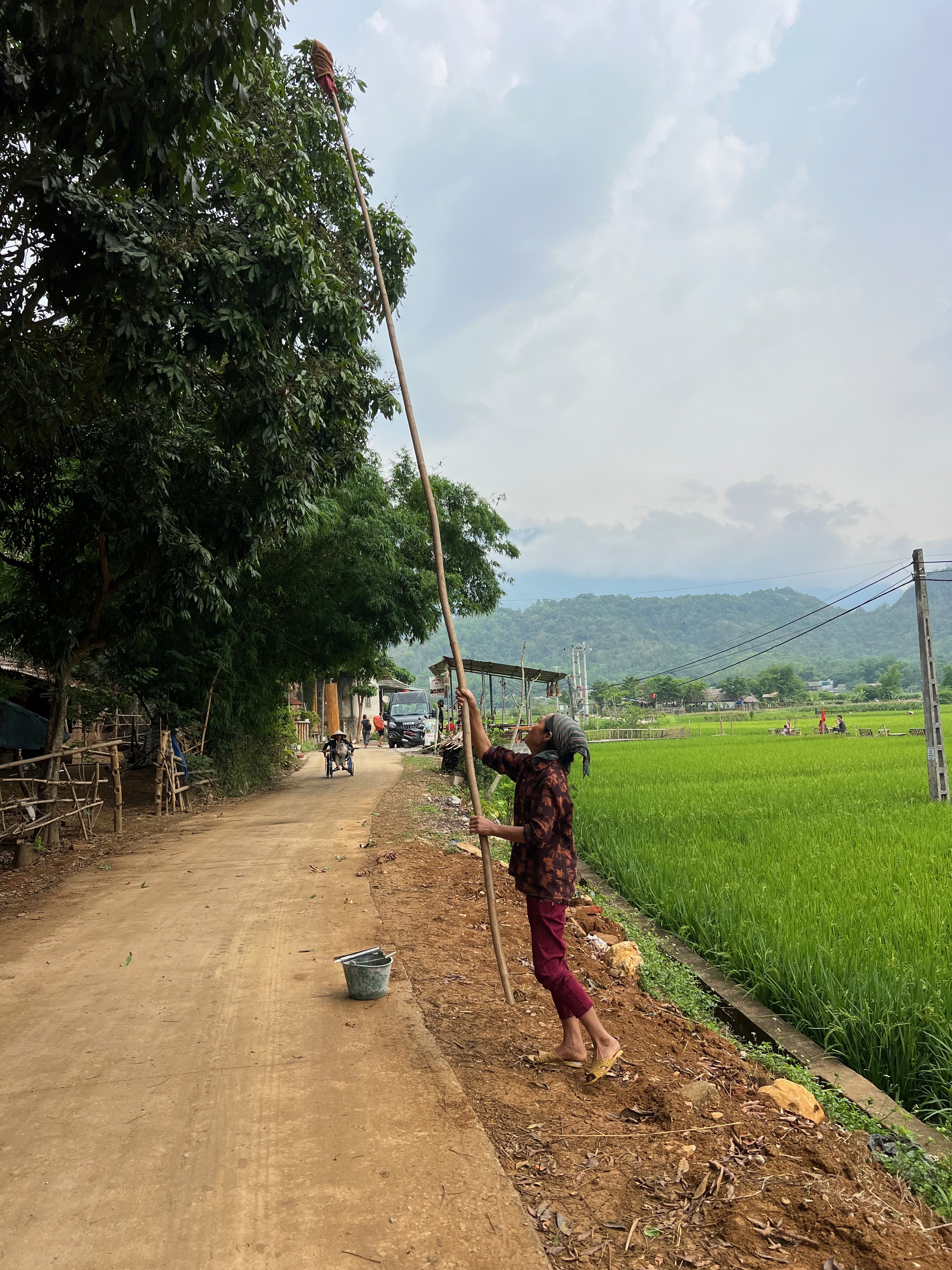 הו אז הפקדנו את הילדים בחדר ויצאנו לטיול שקיעה ארוך על האופנוע לבד.. עצרנו בכפר, לקנות מתנה מעוד פיית שיניים וגילינו חבורה מקומית רוקדת ריקוד מסורתי עם כמה מוטות במבוק בקצב מדליק.. מהר הם סחפו אותנו להצטרף לריקוד.. לרגע זה ממש נראה כאילו חבורה מקומית השתעממה אחר הצהריים והחליטה לרקוד ביחד, אבל אז קבוצה קטנה של תיירים ויאטנמים עזבו את המקום והשאירו אותנו לרקוד לבד..