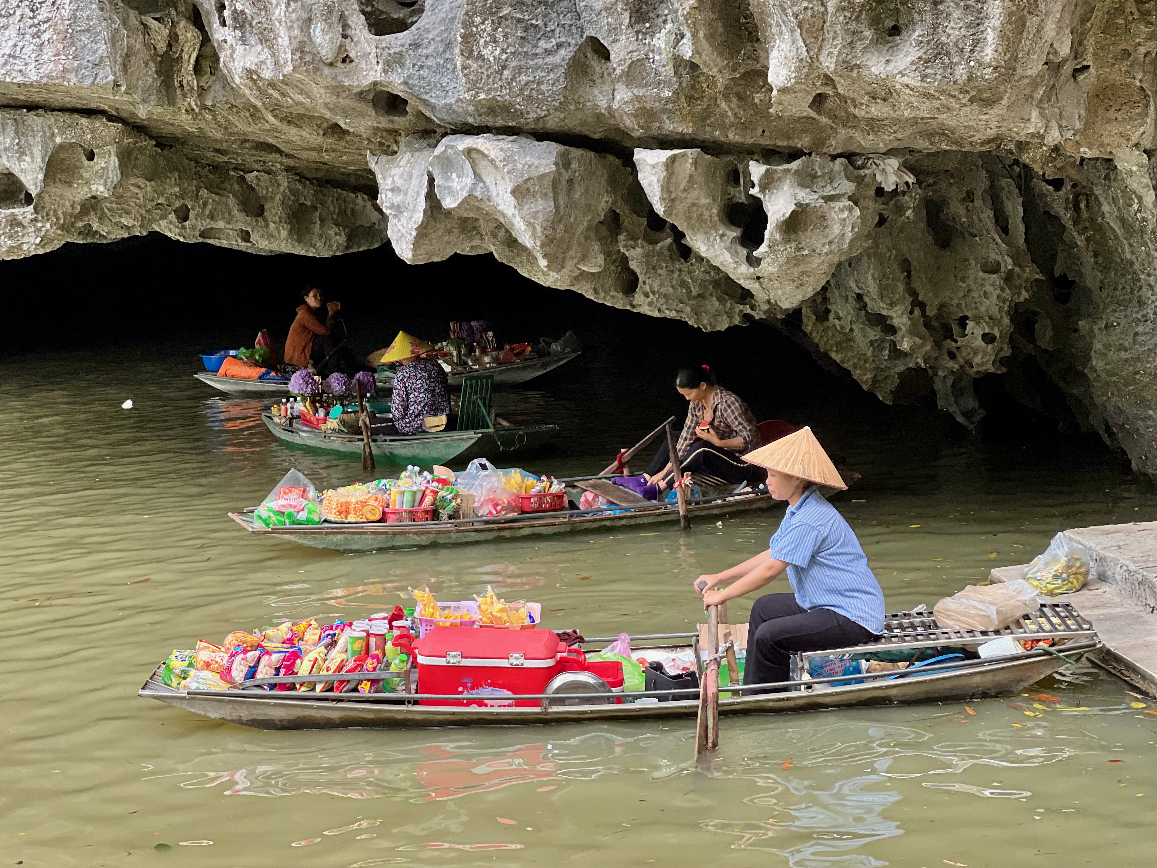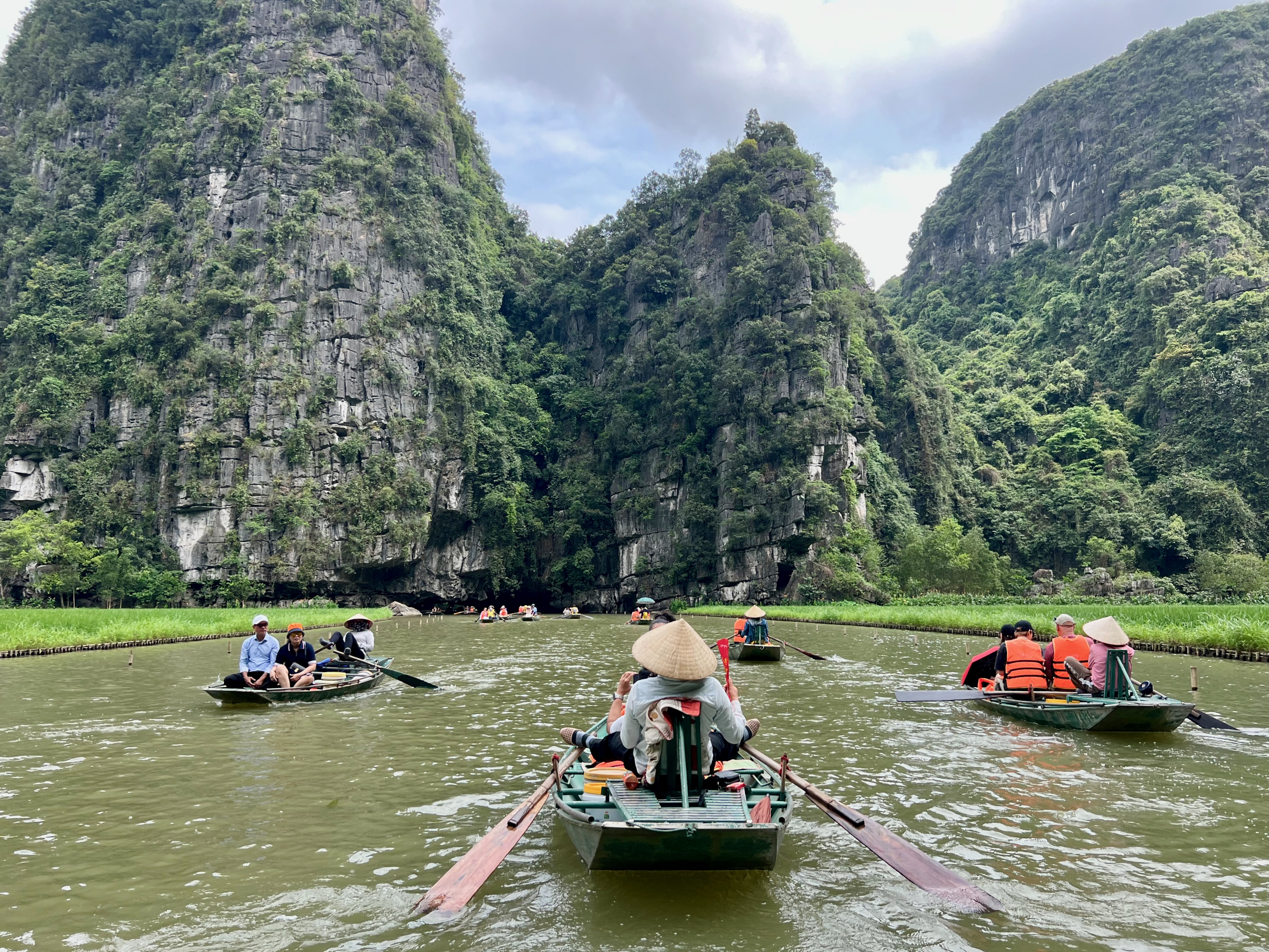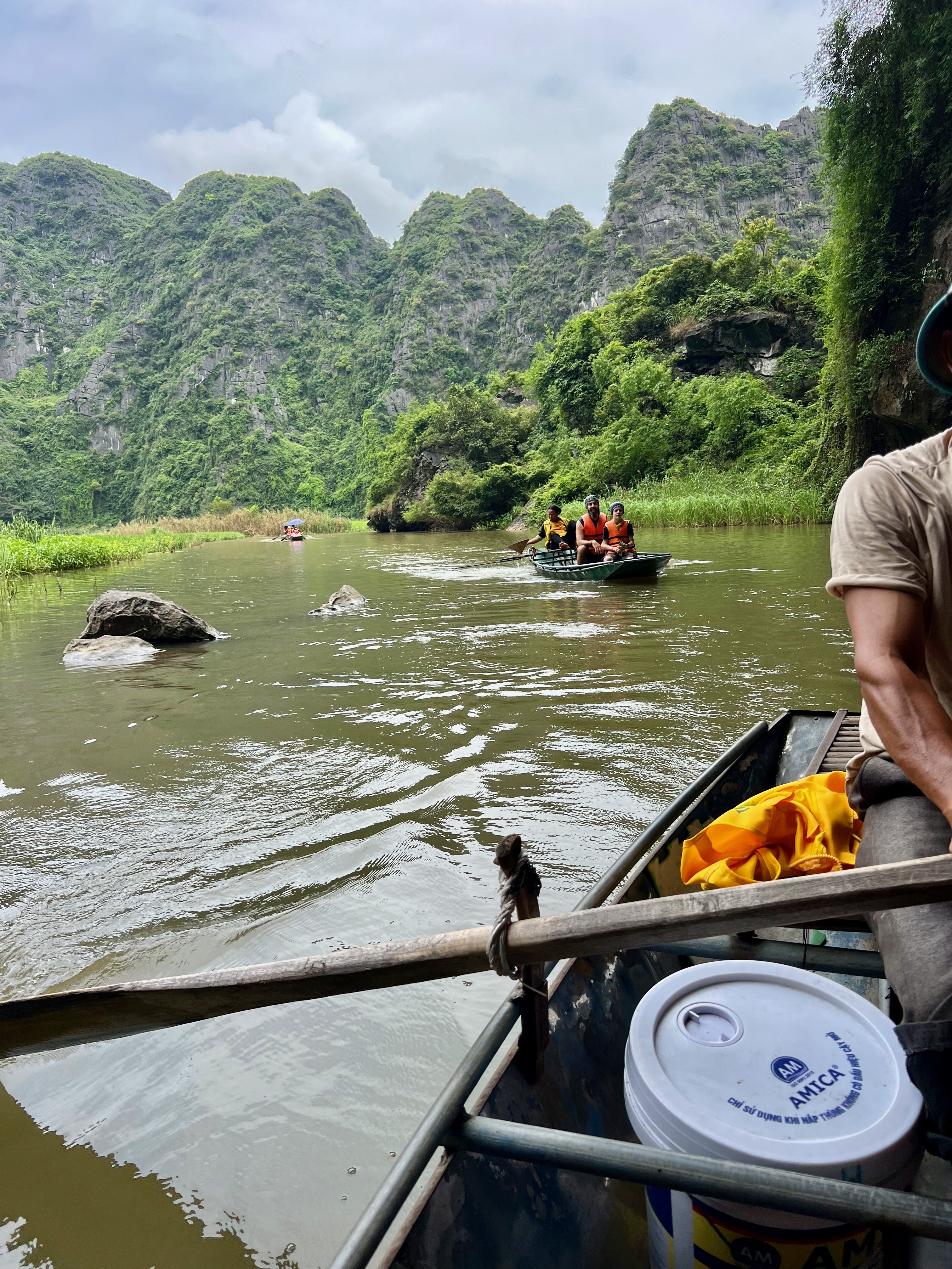 לקחנו שתי סירות ויצאנו לשייט מקסים של שעתיים, שקט שלו ונעים בנופים המשגעים של האיזור, ראינו עיזים אוכלות בגבהים מטורפים על צוקים מטורפים, מלא שדות אורז ועברנו בתוך מערות שמתחת לצוקים. החותרים פה חותרים משום מה דוקא בעזרת הרגליים, ולתחושתי אפילו שיירת הסירות של התיירים שעושים את אותו מסלול, מוסיפה יופי לנוף ולא גורעת ממנו..