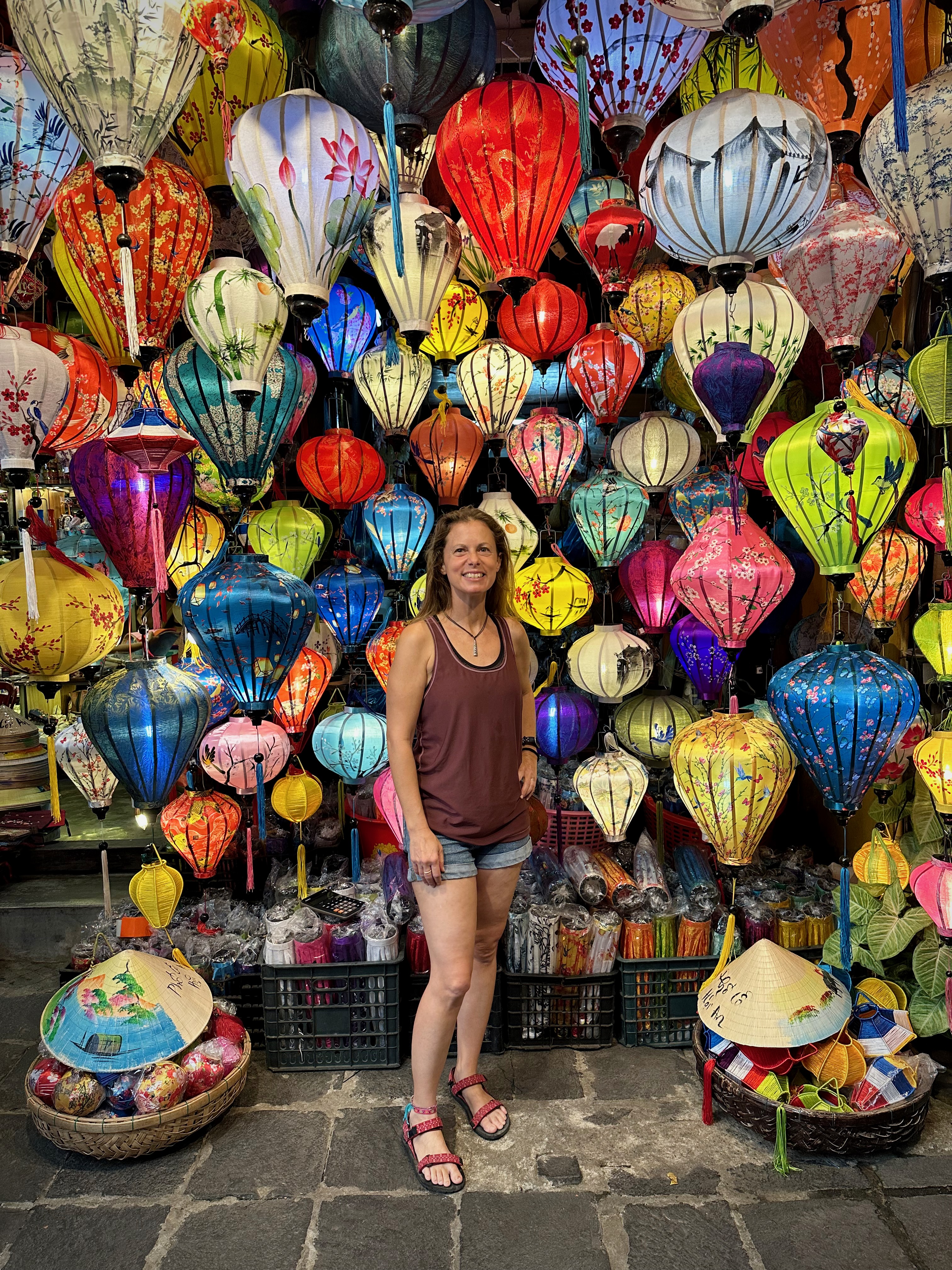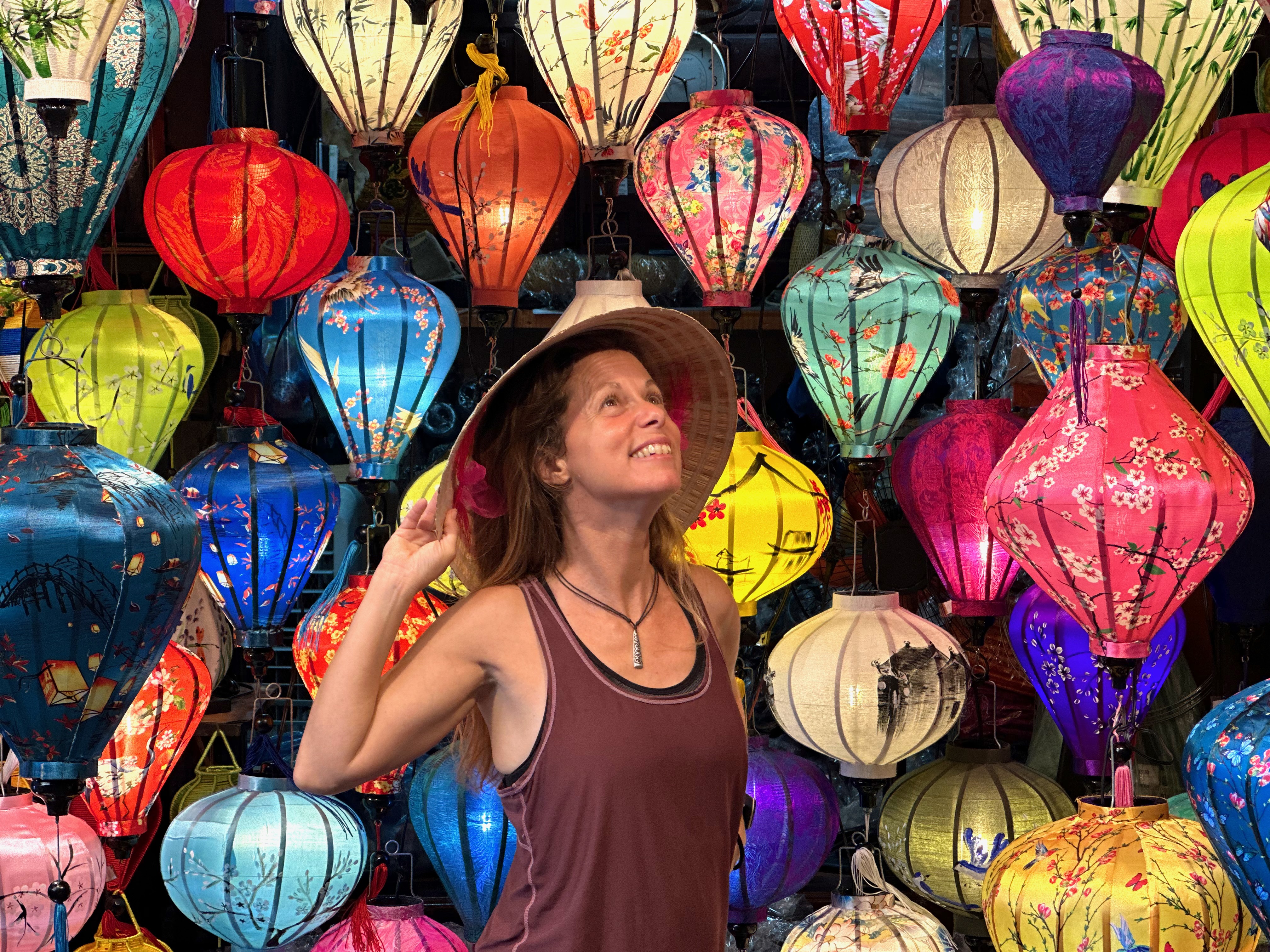 כשחזרנו לעיר שמנו את הילדים לנוח ונסענו לעיר העתיקה על האופניים, קיבלנו המלצה מחברים שהיו פה בסיור אוכל, על הבאן מי הצמחוני, שהוא הכי טעים בהוי אן (הכי טעים גם מהלא צמחוניים!). אכן היה טעים. המשכנו להסתובב בשוק ומצאתי חנות משקפיים שנראתה רצינית.