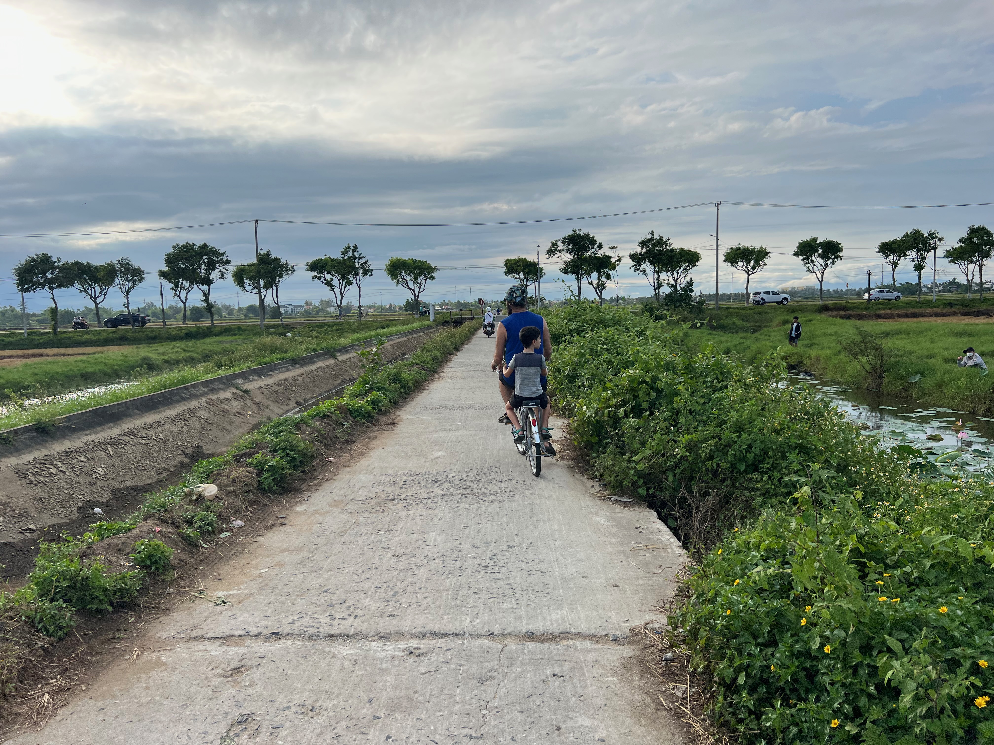 איך שהגענו קפצנו להתרענן בבריכה, נהננו מזה שאנחנו בעיר אז הזמנו אוכל אלינו למלון. ואחר הצהריים יצאנו עם עומרי על אופניים לסיבוב בשדות. האורז כבר קצור פה. יש בריכות לוטוסים והמון ילדים שמעיפים עפיפונים בסופש.
