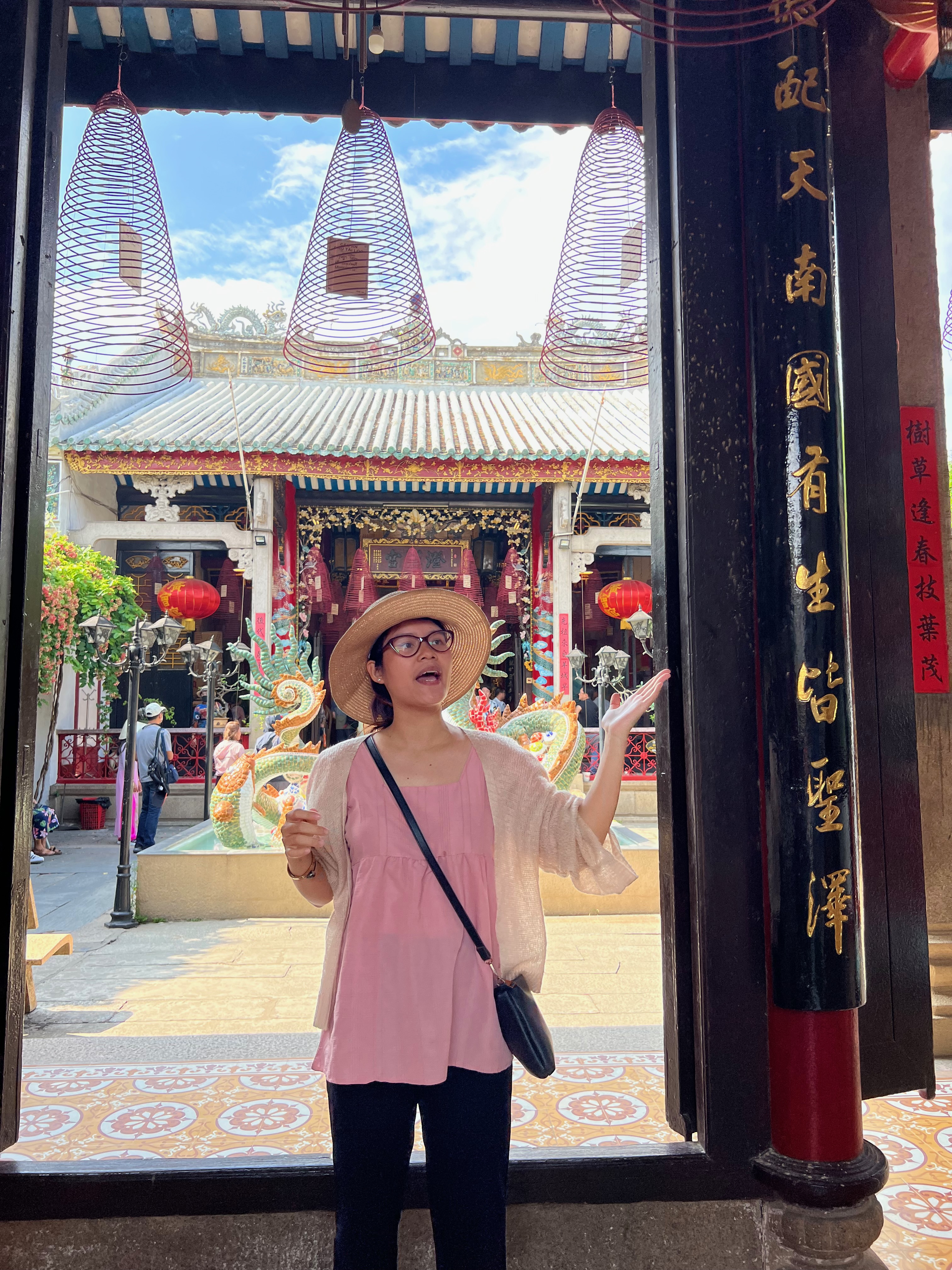 בסיור נכנסנו לאחד מהמוני המקדשים הסיניים היפהפיים שיש שם, הסבירו לנו על ארבעת חיות הקסם הקדושות של הסיניים, הדרקון (דרקון מעופף בעזרת ריצה על העננים, אין לא כנפיים והוא לא דומה לדרקונים אירופאים שמוכרים לנו), הצב, הפניקס והאריה (שדומה יותר לנמר). הסבירו לנו ששפמנונים מתגלגלים לדרקונים כאלה.. ושיש אפילו פוקימון שפמנון שמתפתח לפוקימון דרקון!! במקדש מדליקים קטורת וכשהיא דולקת אפשר לבקש משאלה. לכן המציאו קטורות שדולקות במשך שלושה שבועות! את המשאלה כותבים על פתק שמחובר לבסיס שלהן והכל עובד.. מתחבטת אם זה יעיל יותר או פחות מפתק בכותל..