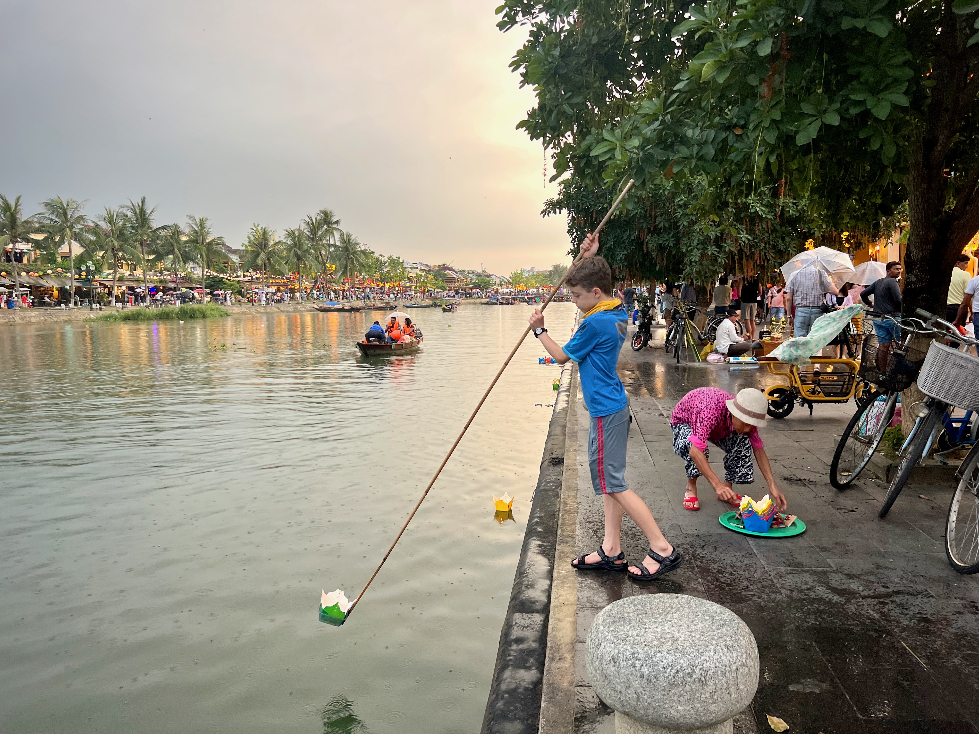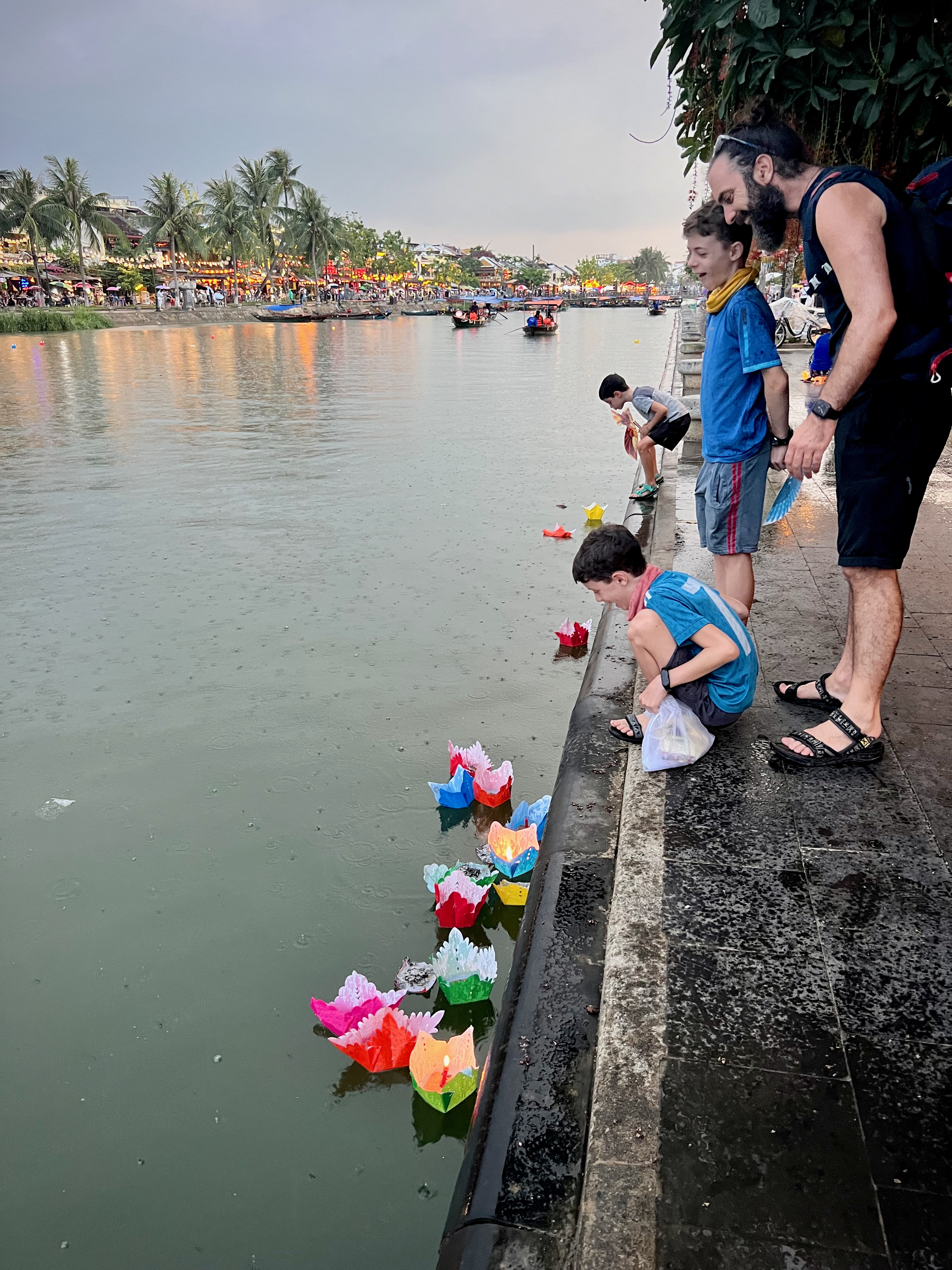 כשהסיור הסתיים המשכנו להסתובב בעיר, התחיל להחשיך והמנורות הצבעוניות דלקו. על הנהר שטו מאות סירות שגם בהן מנורות צבעוניות. התחיל לרדת גשם, והכל היה קסום. כולנו השטנו נירות קטנים בסלסילות נייר קטנות על הנהר וביקשנו משאלות. פשוט, קסום!!