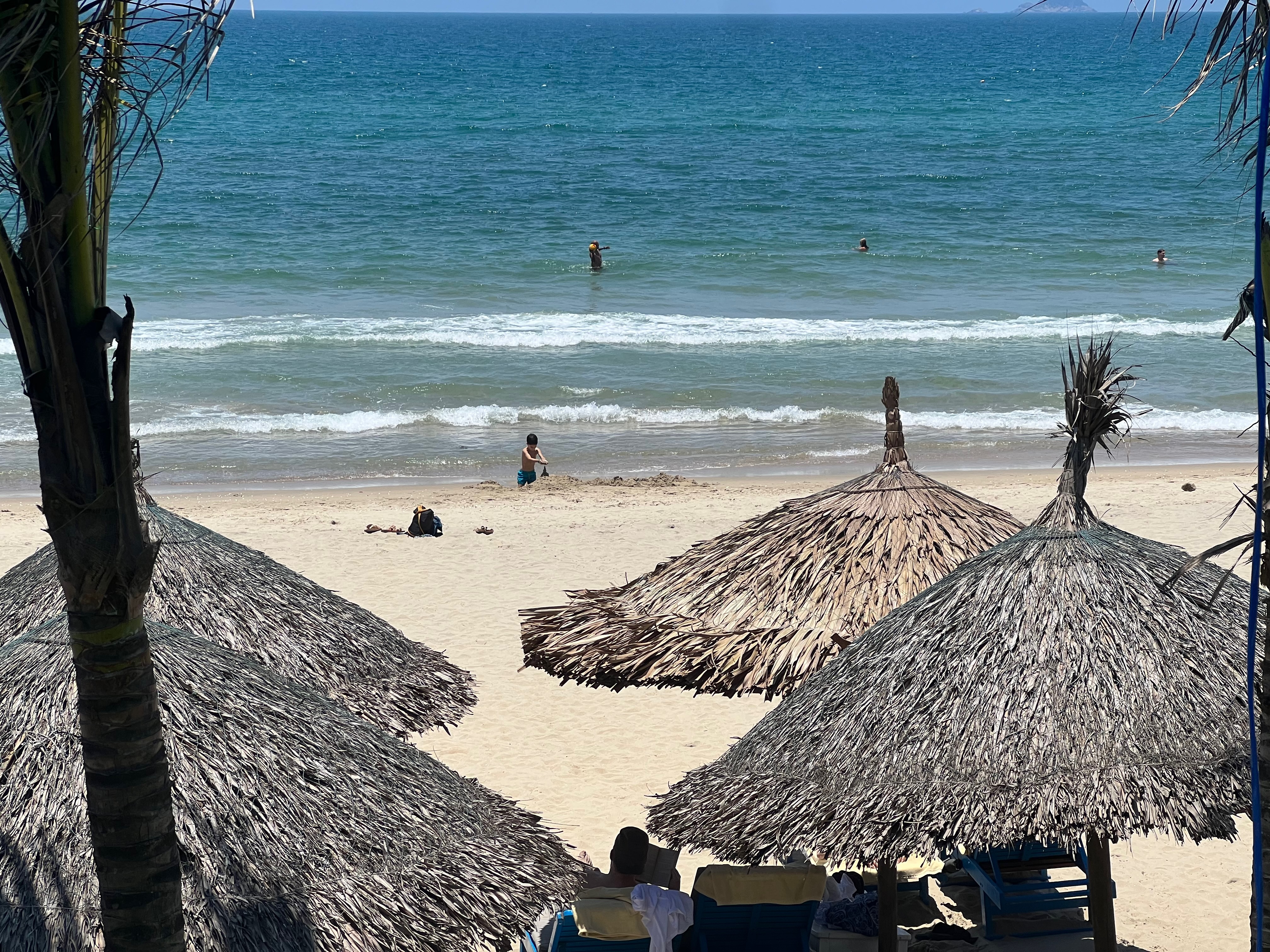 למחרת נסענו לים. הצטרפו אלינו נועם ועודי וכמו כל דבר בויאטנם, גם פה – הופתענו לטובה. החוף היה יפה (דומה לחופים של הארץ, לא יותר..) המים היו נעימים, הגלים היו נעימים ואפילו אפשר היה לבנות ארמון בחול. מצאנו מסעדה חמודה מעל החוף שאפילו היתה בה בריכה. בקיצור היה ממש כיף ולמרות שחשבנו שנעביר שם גג שעתיים, העברנו שם יום שלם..