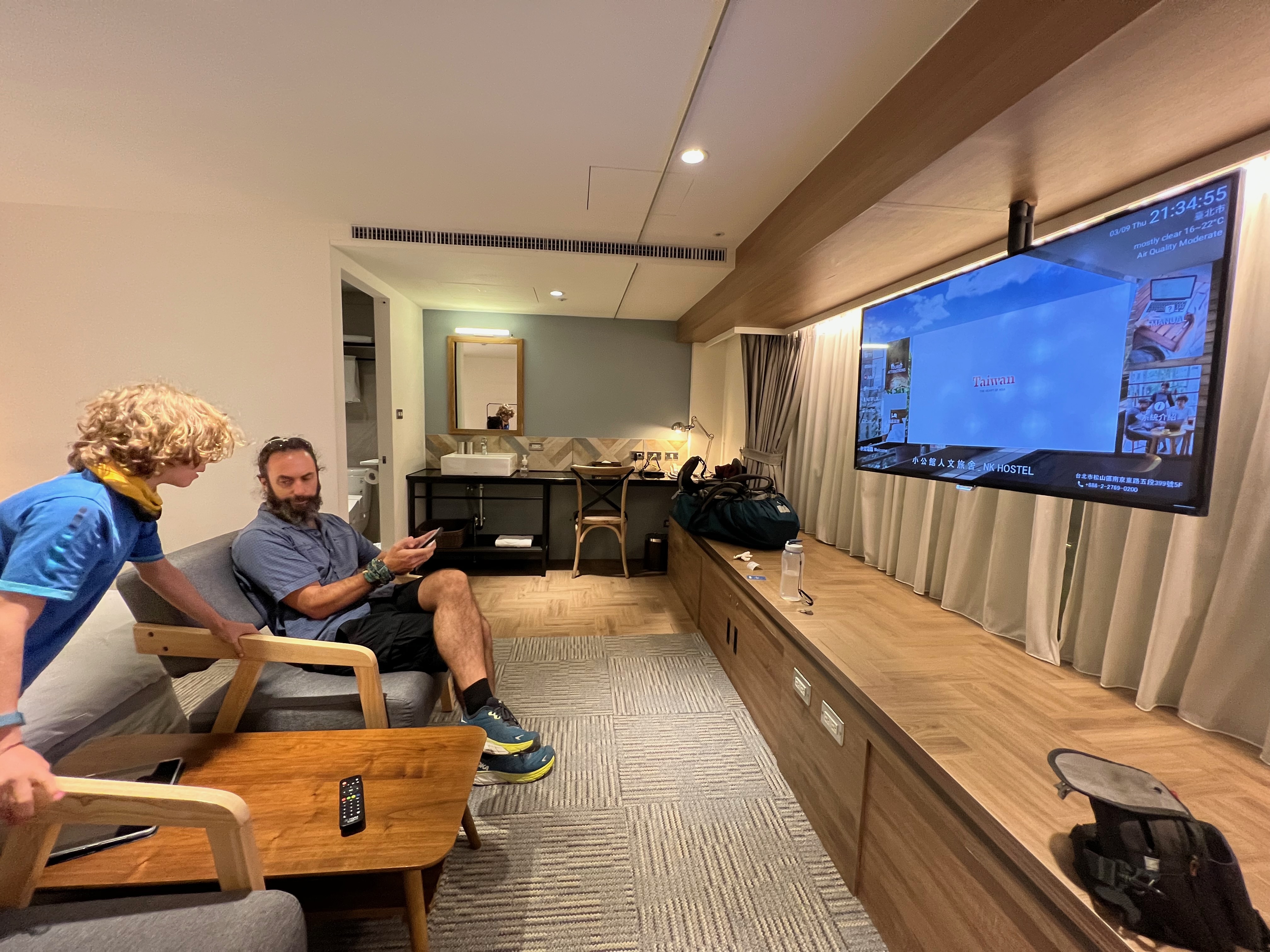 במונית שלקחנו למלון בטאייפה היו 8 מסכים.. כמה לניווט וכמה עם פרסומות ואלוהים יודע למה עוד.. המלון היקר מאוד שלנו מבחוץ נראה ממש פשוט, אבל החדר מרווח ומקסים ונוצץ שלא לומר יוקרתי.. שני חדרי מקלחת ולכל שירותים קונטרול פאנל משלו, מלא כפתורים שאת חלקם הבנו, חימום אסלה מפנק, ואפשרות לשטוף את התחת.. הכנה ליפן..