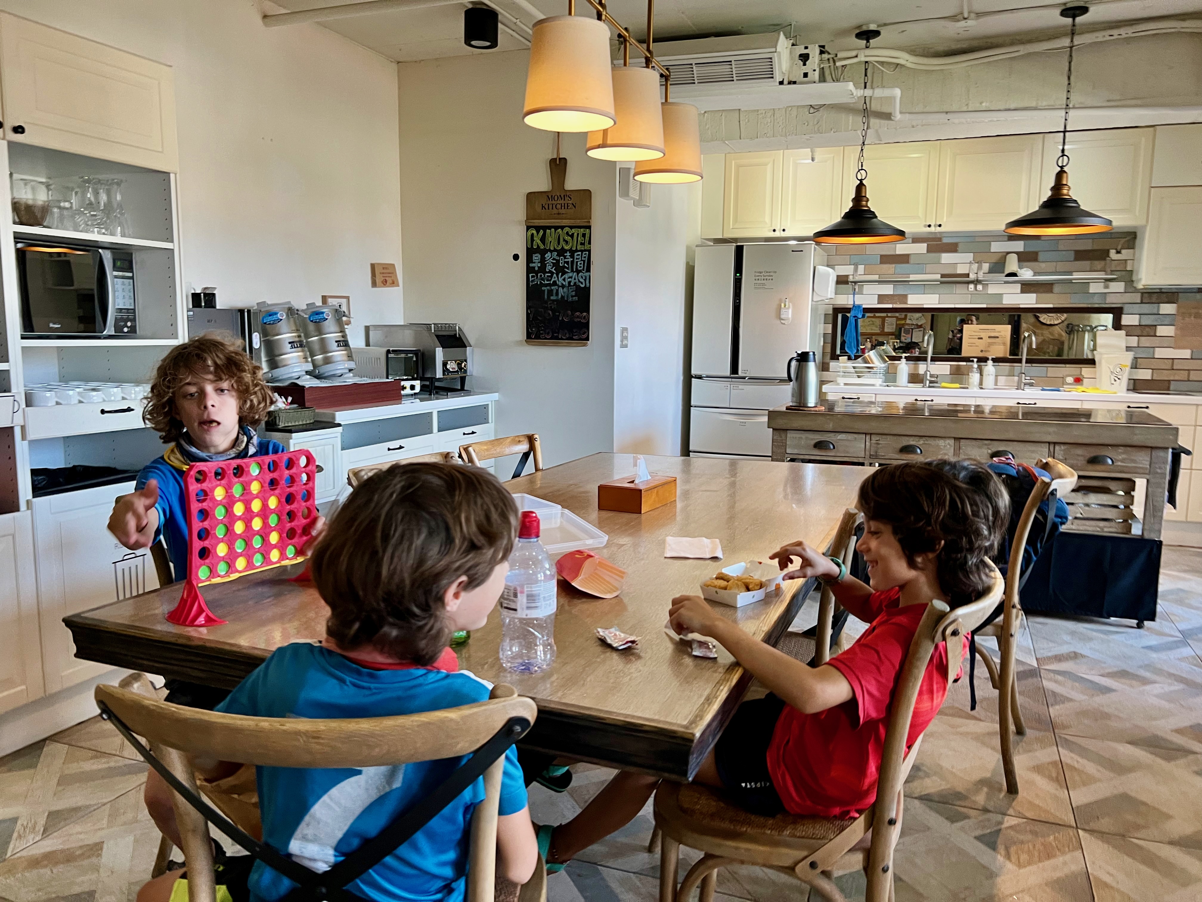 כל הסיפור הזה לקח די הרבה זמן, וגזל הרבה אנרגיות נפשיות מכולנו.. כשחזרנו לחדר אחר הצהריים סילביה חיכתה לנו שם עם מלא פינוקים, הביאה סושי לילדים וכל מה שהיא חשבה שיהיה לנו טעים לאכול.. והבנות שלה שלחו לילדים מדבקות של פוקימון כי הן שמעו שהם אוהבים. וזה חימם את הלב עד מאוד❤️