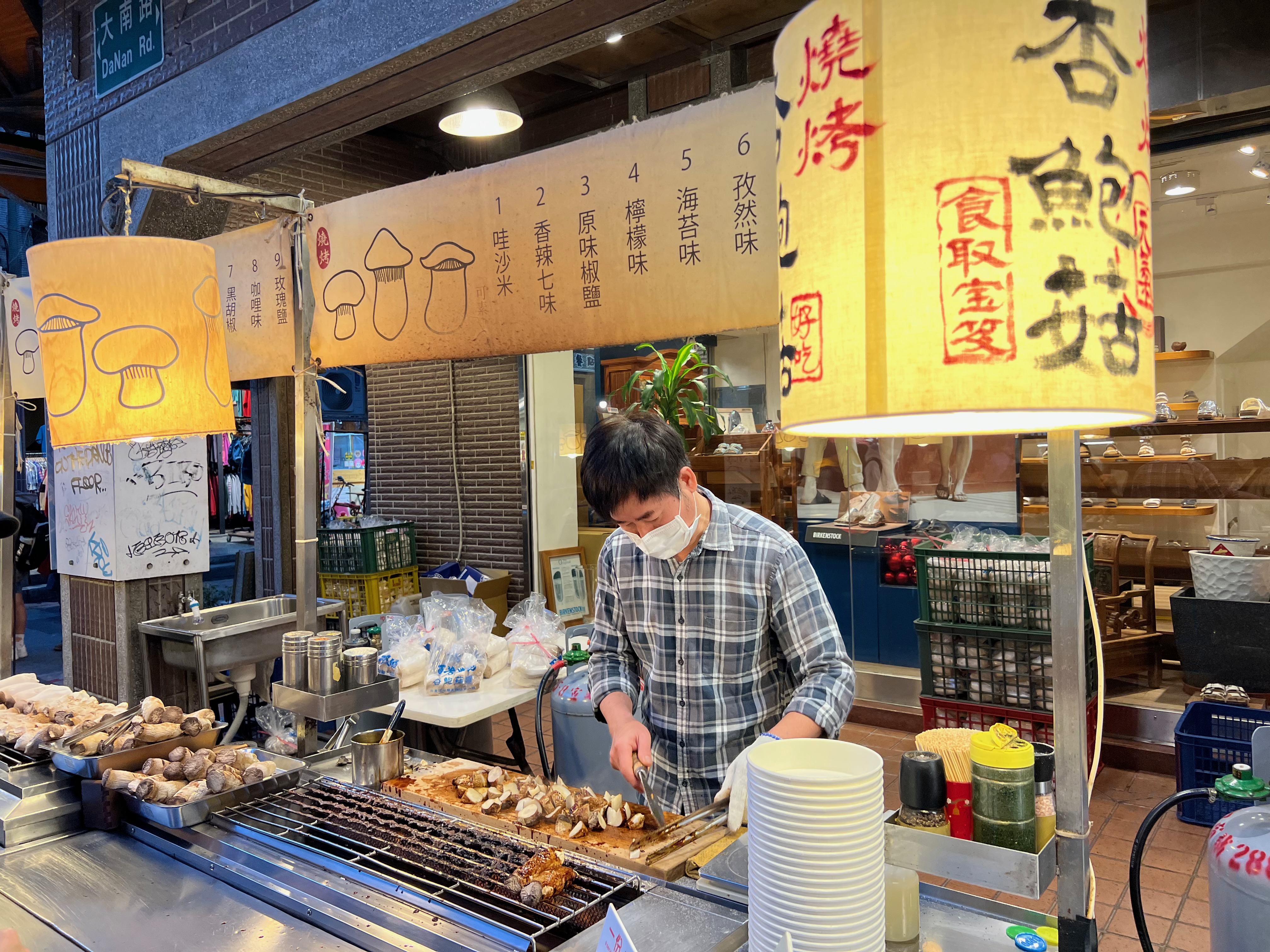 למחרת נפרדנו מפיי, החזרנו את הרכב ונסענו ברכבת לטייפה. הגענו אחר הצהריים לגסט האוז מקסים ממש, עם חדרים פשוטים אבל באיזור מרכזי. הפקדנו את הילדים והלכנו לזמן זוגי. גל בחר לנו מסעדה טאייואנית צמחונית קרובה. אנחנו מאוד אוהבים להתנסות באוכל מקומי צמחוני, אבל במקרה הזה לא הייתי סגורה שזו הבחירה הנכונה בשבילי.. זרמתי וגיליתי שאכן כך.. היה מבחר עצום של אוכל מגוון ומעניין וצמחוני, ולא בשבילי.. אחרי שגל סיים לאכול הלכנו להתנחם בעוגת שוקולד בסטארבקס!
