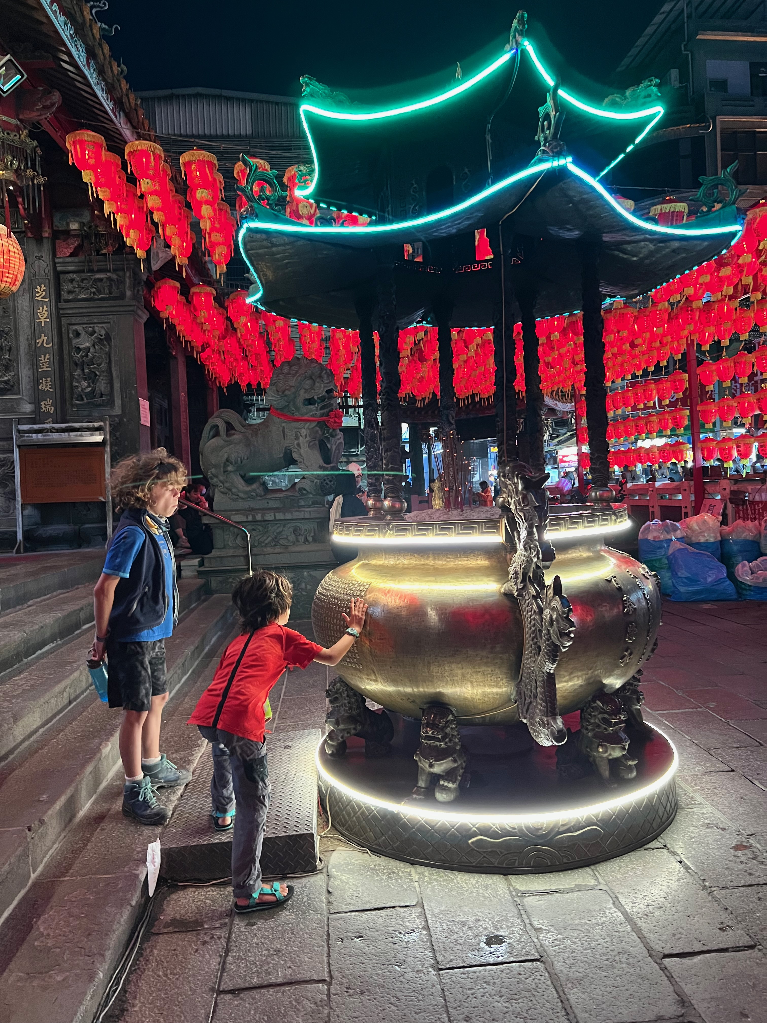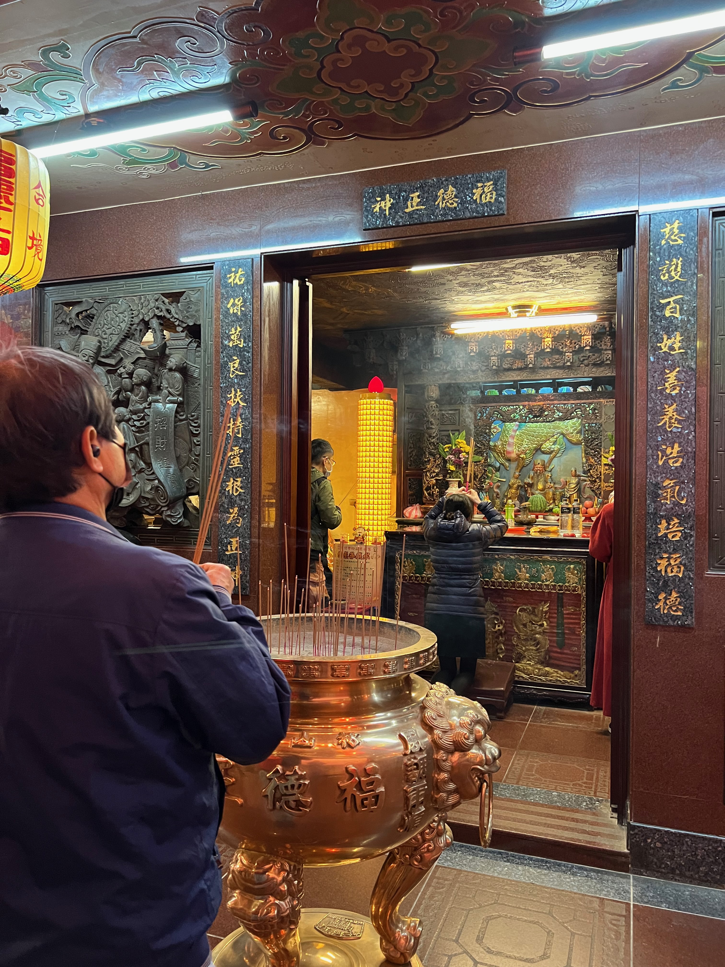 למחרת הלכנו למקדש סיני גדול ומרכזי, כמה דק הליכה מהמלון, מקום מקסים ומאוד פעיל בכל ארבעת הקומות שלו (יש עוד 2 קומות אבל אי אפשר היה להכנס אליהן), מלא קטורת וצ׳אנטים וכוונה אמיתית שבתפילות.. לי זה עושה את זה כל כך, שחזרתי לשם לבד בערב. בערב גם היה ברחובות ליד שוק לילה קטן יותר מזה שבשאילין, אבל נחמד.