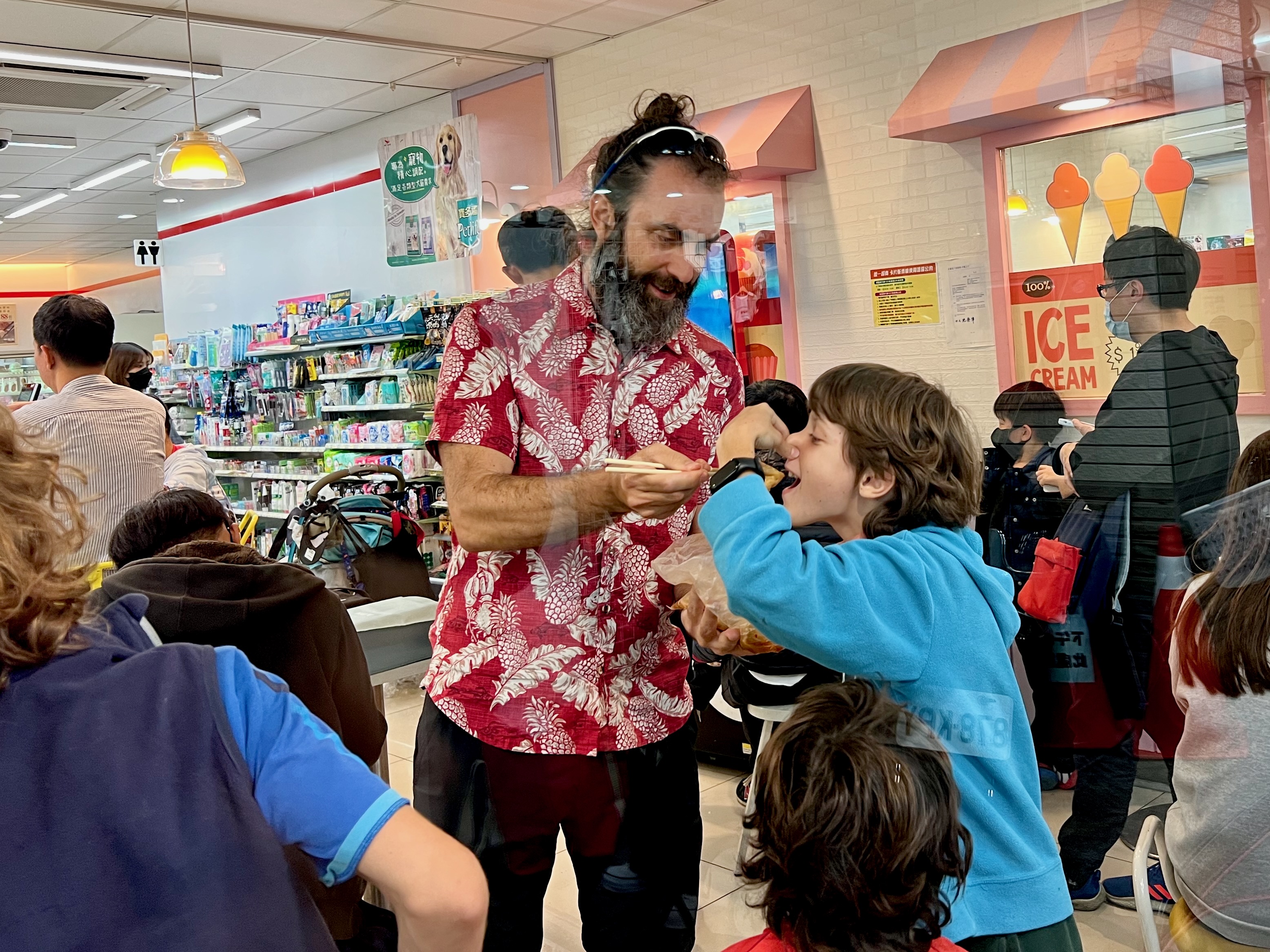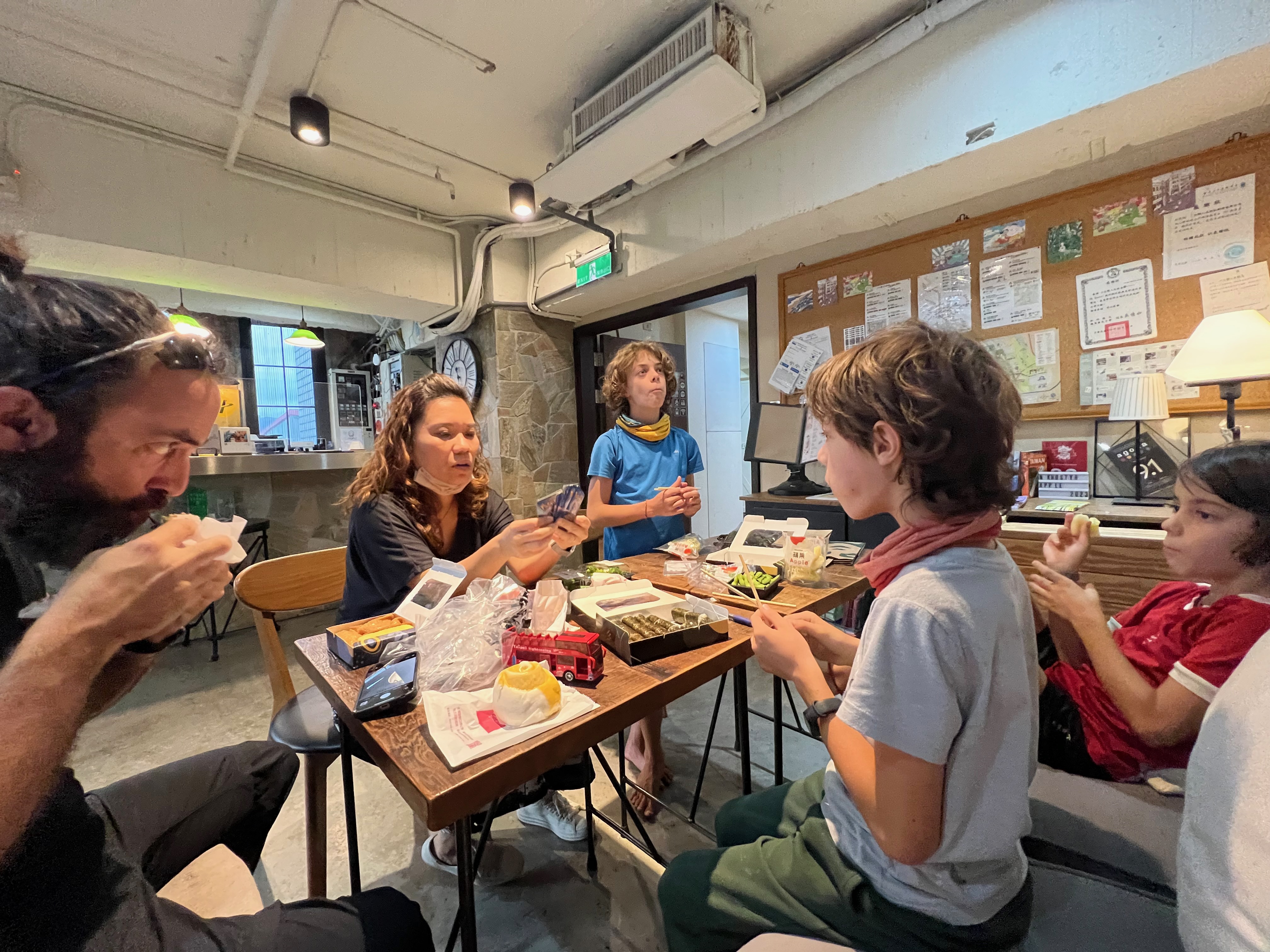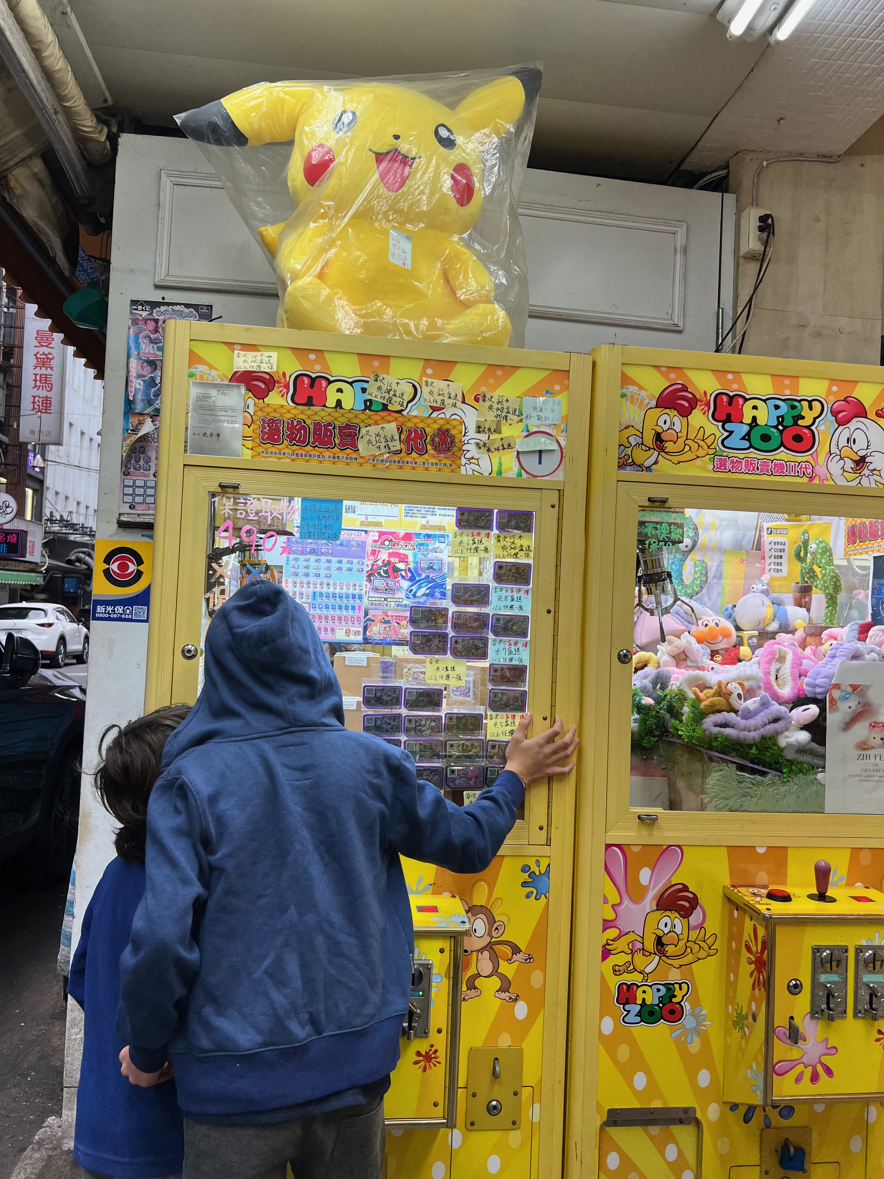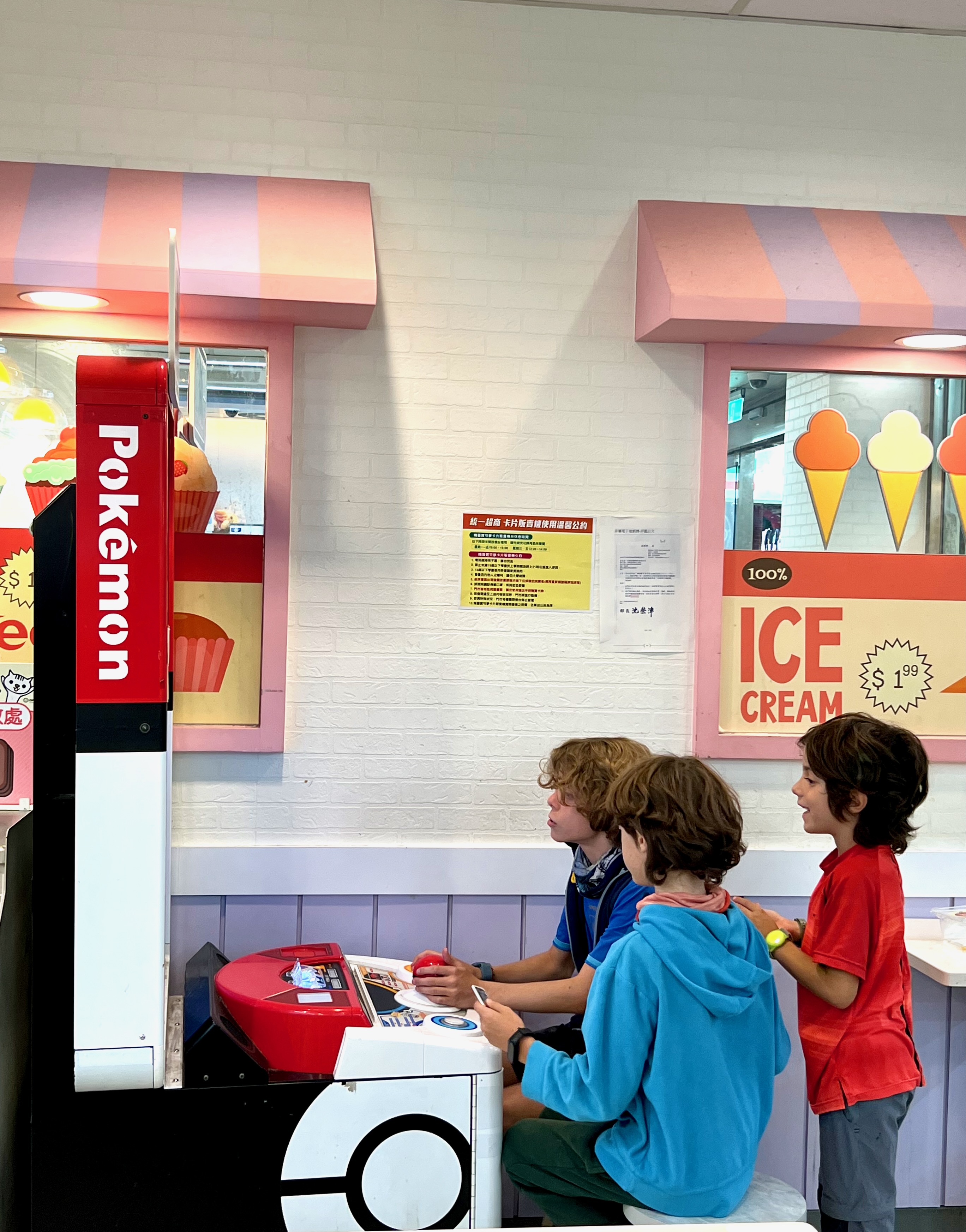 הילדים לא באמת אכלו כלום בשוק (אבל הם טעמו הרבה מעבר למה שציפינו) אז עצרנו בסבן אילבן לאורז לבן ובננות.. ושם הם גילו שבהרבה סבן אילבן בטאייואן – יש משחק של פוקימון, וזוכים בו בכל מני כרטיסיות.. ובקיצור – עולם חדש מופלא..