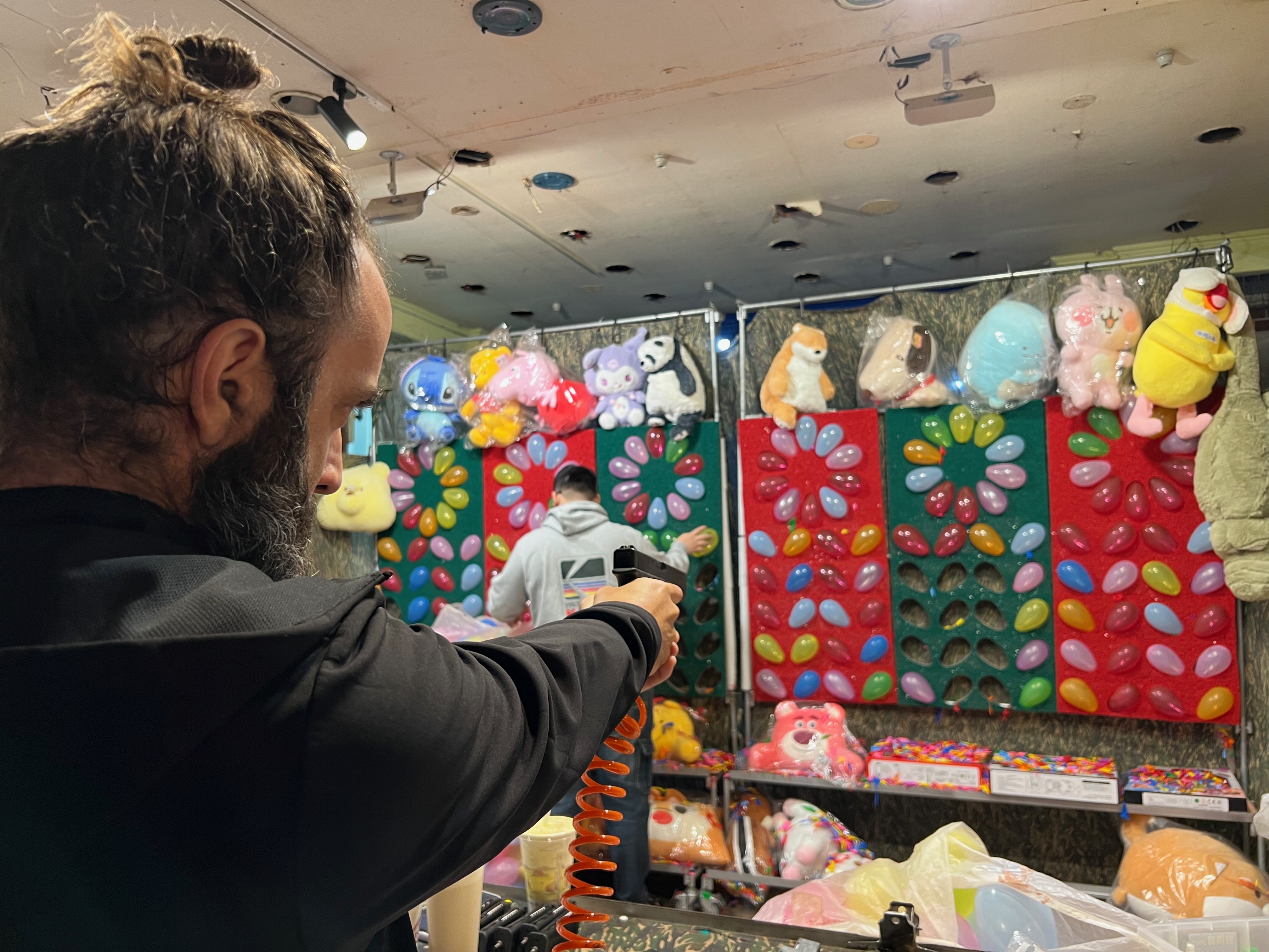 לפני שאכלנו עוד הספקנו לבקר בעוד שוק לילה.. כי שווקי לילה זה כיף, הפעם פגשנו מישהו נחמד שנתן לילדים לשחק בחינם וללא הגבלה במכונות הפצ׳נקו שלו.. הימורים לילדים.. מאוד מספק:)