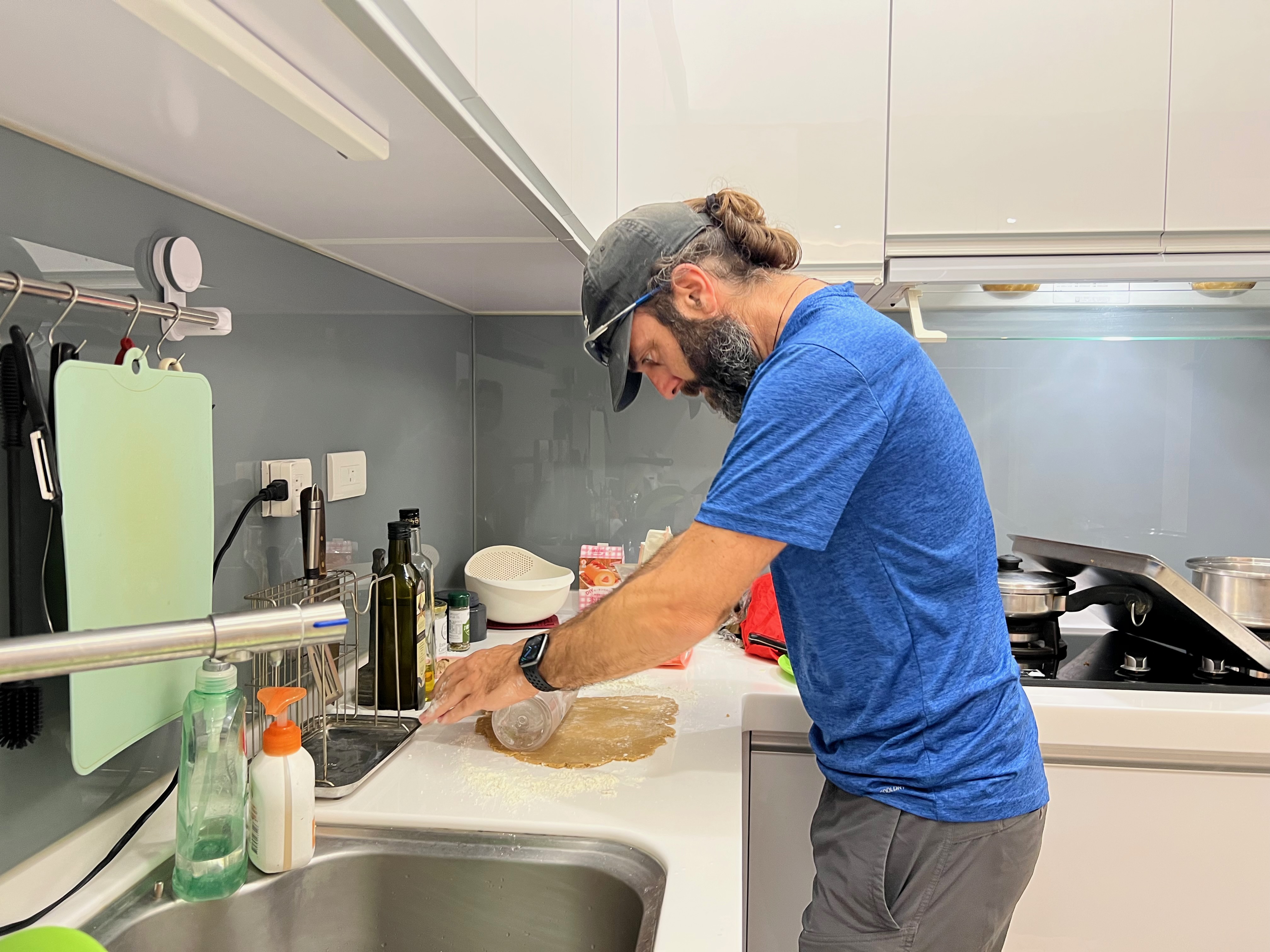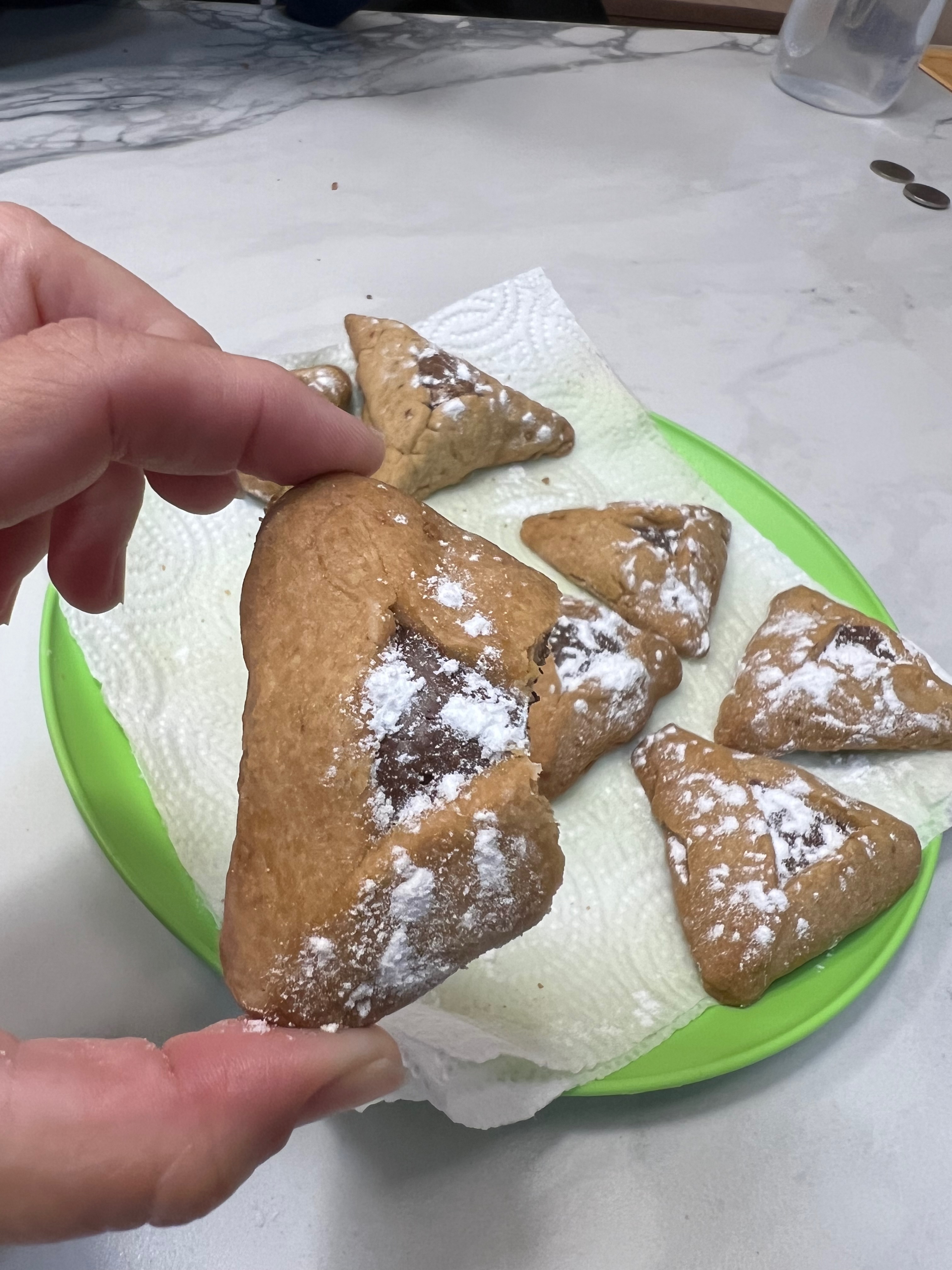 לדירה של פיי חזרנו כי גל הגיבור הבטיח לילדים להכין אזני המן. הרי פורים היה לא מזמן.. ומגיע להם.. אתמול החרוץ הזה בילה איזה שעה בסופר כדי לחפש מצרכים, והכין בצק, והיום הוא לש ועשה צורות והילדים מילאו.. והיה ממש טעים.. וגם ממש מגניב לפיי ולאחיין שלה, שנהנו מהאוכל היהודי האותנטי שהכינו להם.