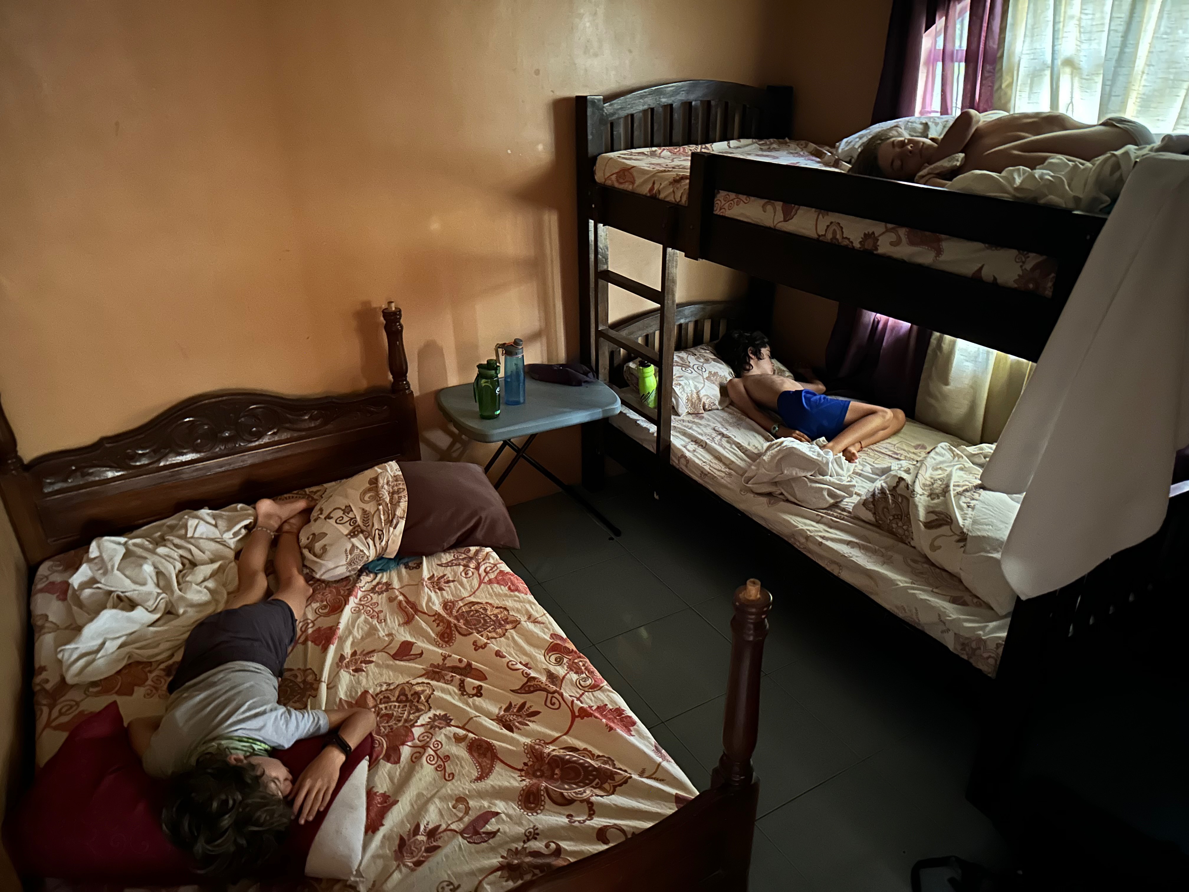 הילדים היו בעננים וגם אנחנו נפעמנו מההבדל בין החדר הקטן והפשוט והקצת מתפרק שבו התעוררנו בבקר, בכפר שליד הפינאטובו בלוזון – והחדר שבו אנחנו הולכים לישון.. והשקט.. אחרי הקולות של האופנועים והרכבים והתרנגולות והכלבים שהיינו בתוכם כל כך הרבה שבועות.. מחוץ לחלון שלנו יש מחלף מטורף, ולא שומעים אותו!