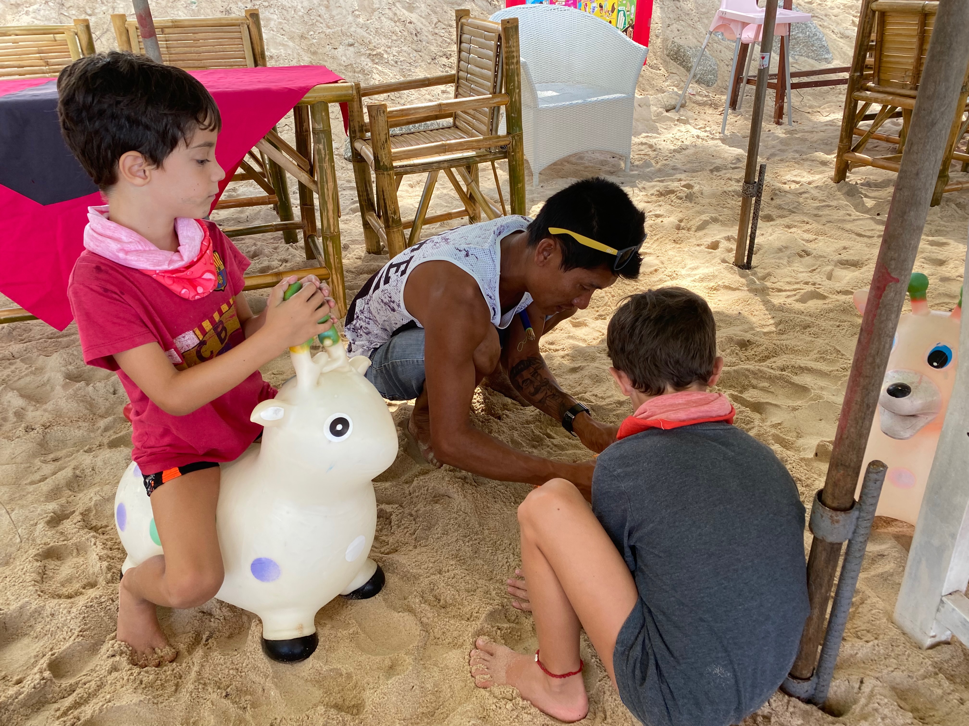 למחרת – יום רגוע! בריכה, ים, ים אצל אלק כי הגיע הזמן שלחבר הבורמזי שלנו יהיה גם שם 🙂 ושם הילדים משחקים בחול ובונים וכל כך כיף ונעים ולא משעמם לרגע.. אחר הצהריים נסענו לבקר את משפחת רופא במלון שלהם, מרחק 40 דק נסיעה מאיתנו. הילדים שיחקו שם במיני פארק מים במלון שלהם והמבוגרים נהנו האפי אוור על הבר, ושקיעה מהממת.