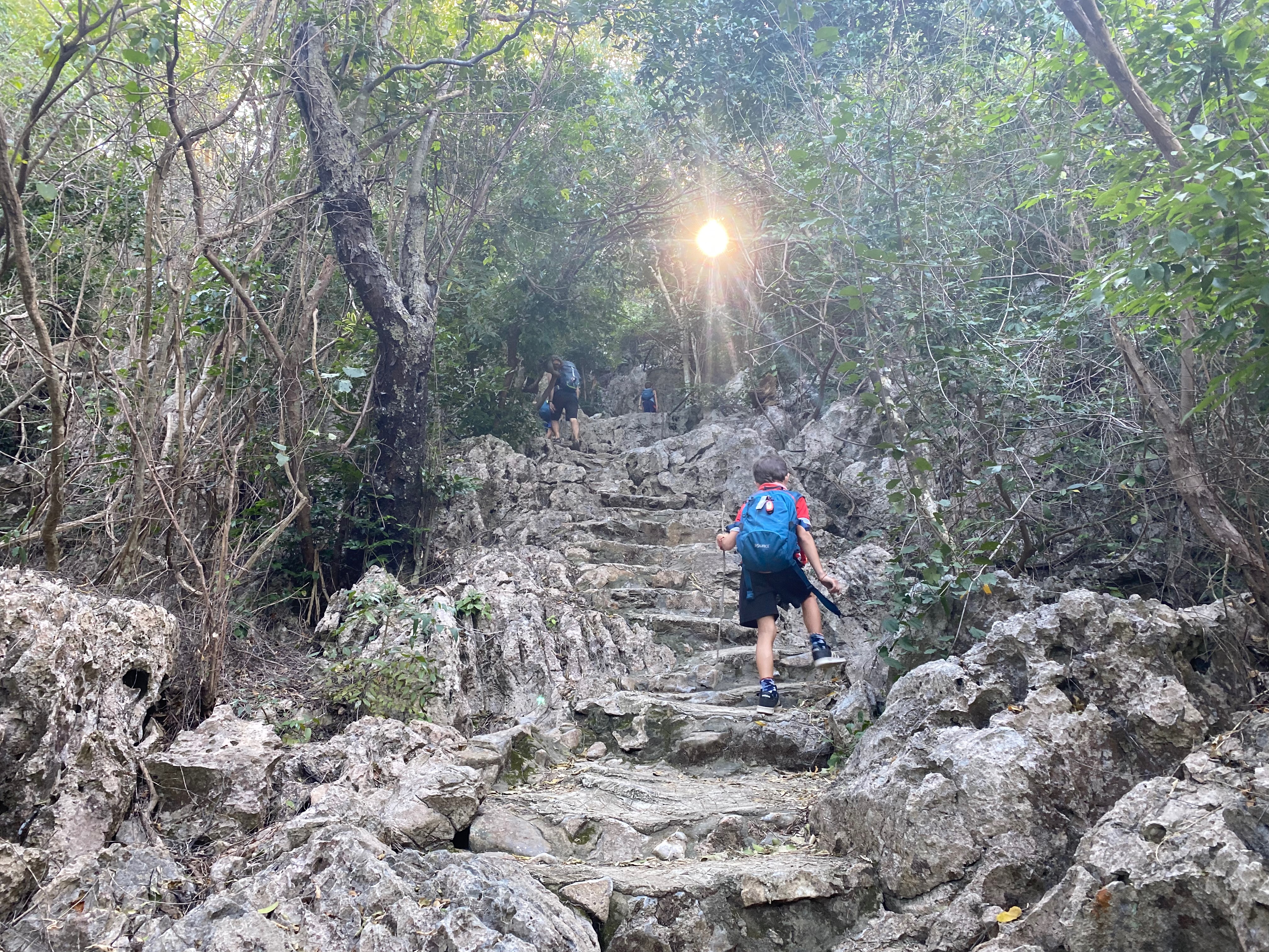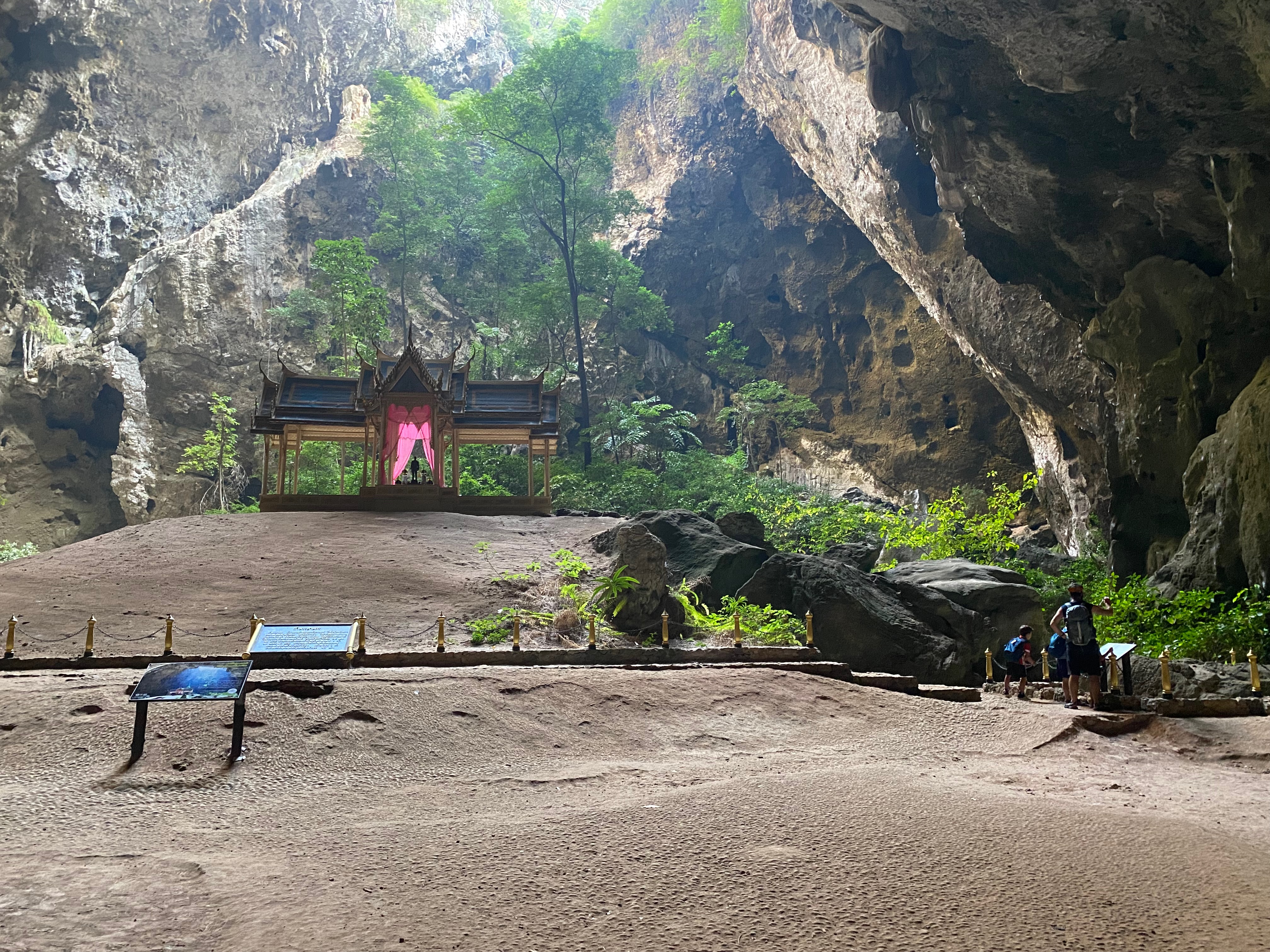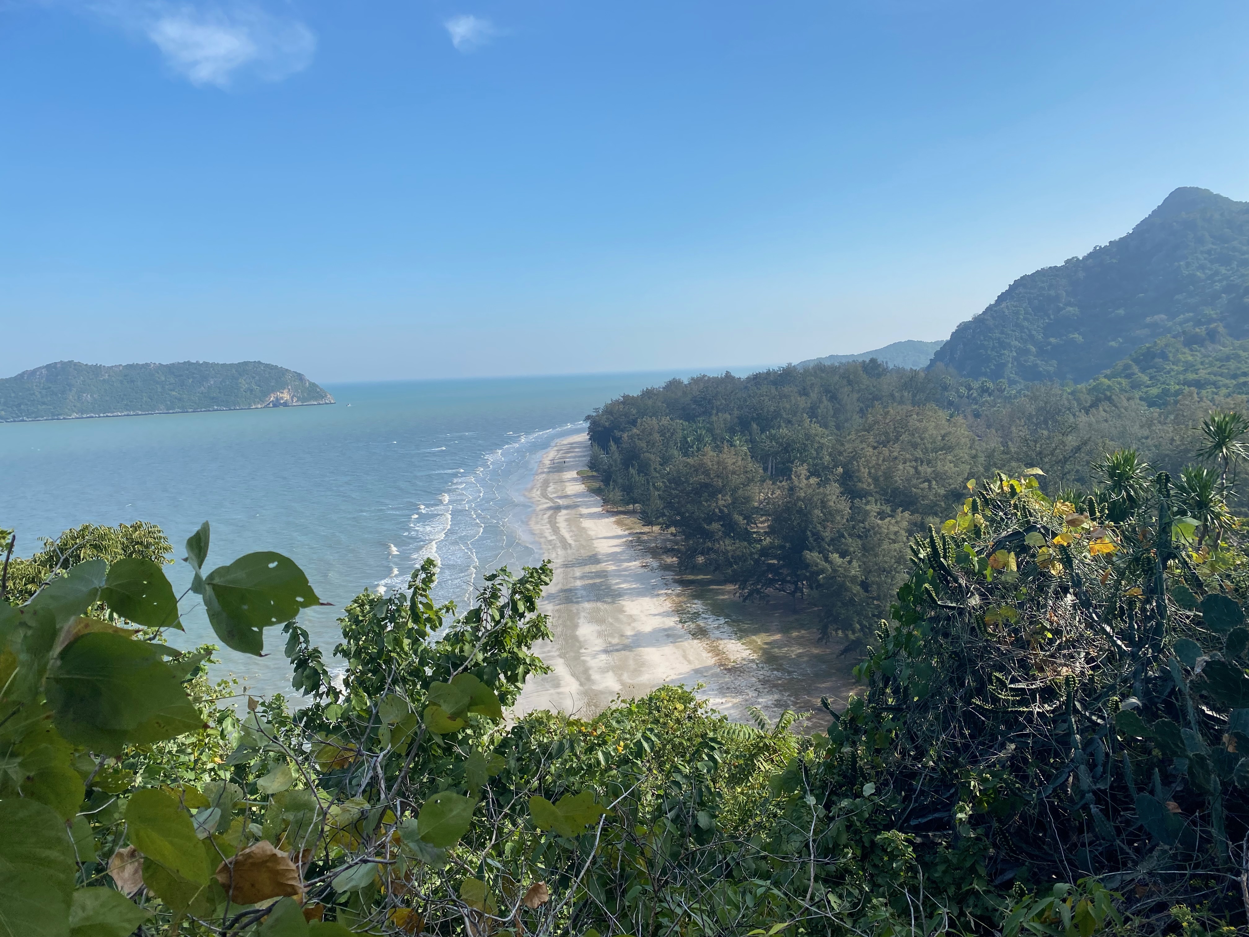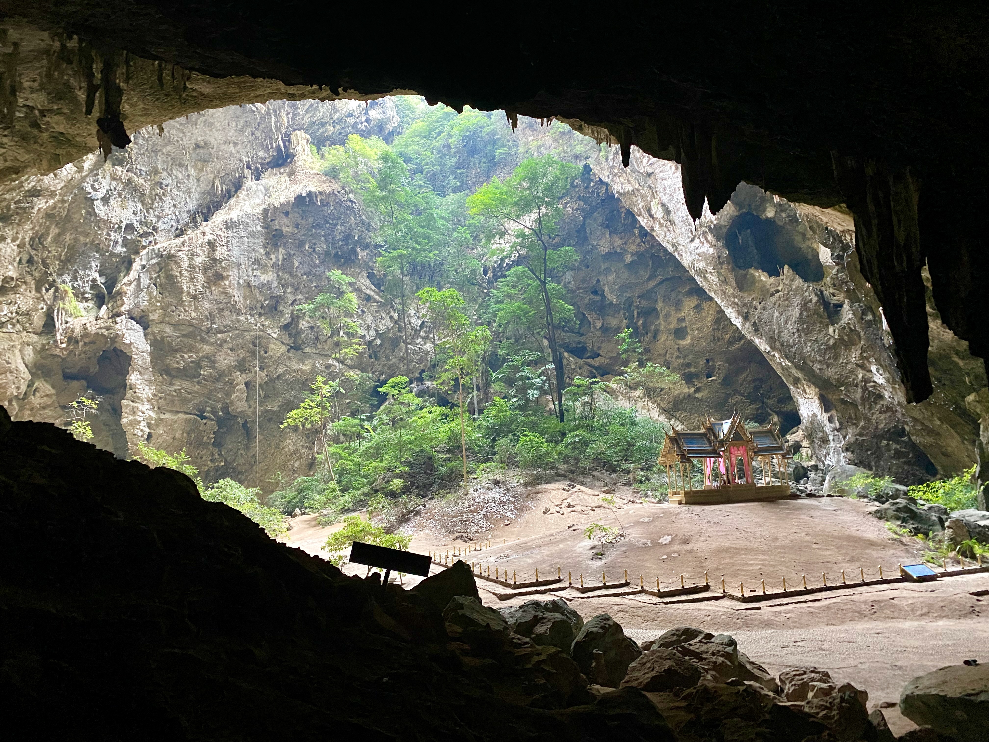 הפעם כיוונו לעוד 4.5 שעות להואה הין. בדרך עצרנו במערת פראייה נאקהון שקראתי עליה שאמורה להיות יפה. מסלול של כ-3 שעות שמטפס על צוק לאורך הים, יורד ממנו מצידו השני ואחרי מישור קצר ליד החוף בין עצי הדקל, מטפס שוב על צוק אחר. ומגיע למערה ענקית. שמורכבת מ3 חללים גדולים. בשניים מתוכם קרס הגג של המערה ונכנס משם אור שמאיר את הנטיפים שנוצרו בה, ומאפשר צמיחת עצים וצמחיה. בנוסף הקימו שם מקדש קטן שמשלים תמונה מהממת וקסומה, שאפילו שידעתי למה לצפות, הצליחה להפתיע ולהדהים. לא חושבת שהתמונות יצליחו באמת להעביר את היופי הזה.. מה גם שהיינו במערות האלה לגמרי לבד. חלק מהייתרונות בלהגיע למקומות 10 דק לפני שהם נסגרים.. היה קסום! בדרך חזרה הצלחנו להתקל גם בקופים מזן גיבון שעוד לא ראינו.. אוכלים מעלינו ומסתכלים עלינו בסקרנות.