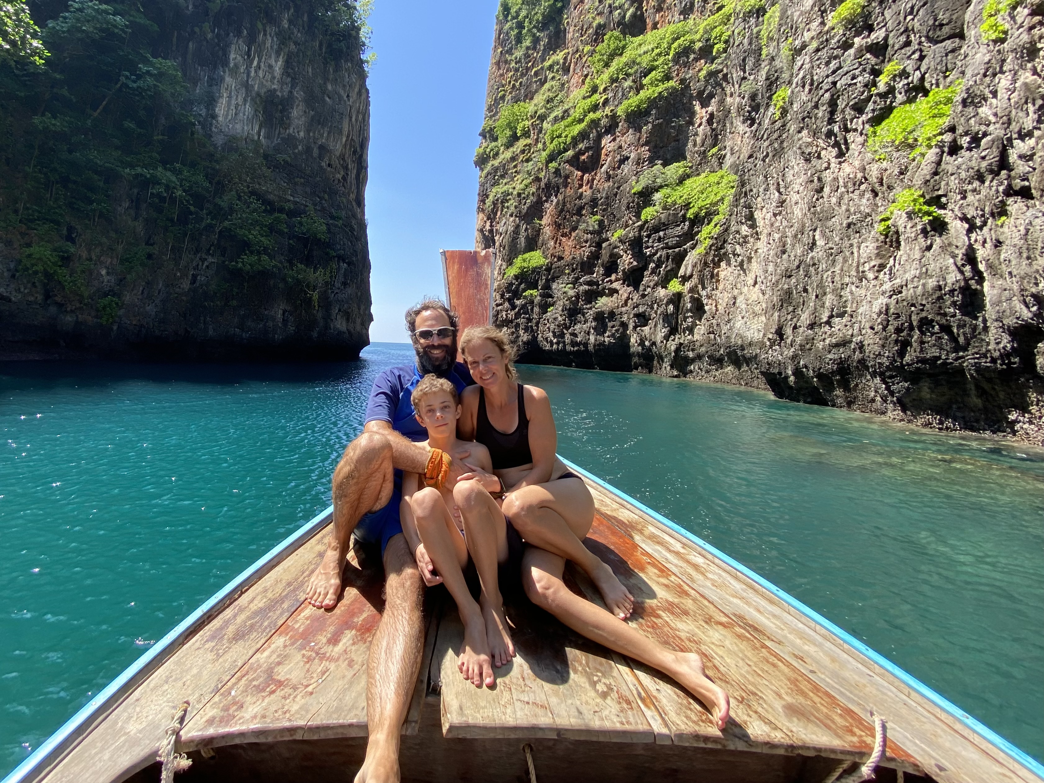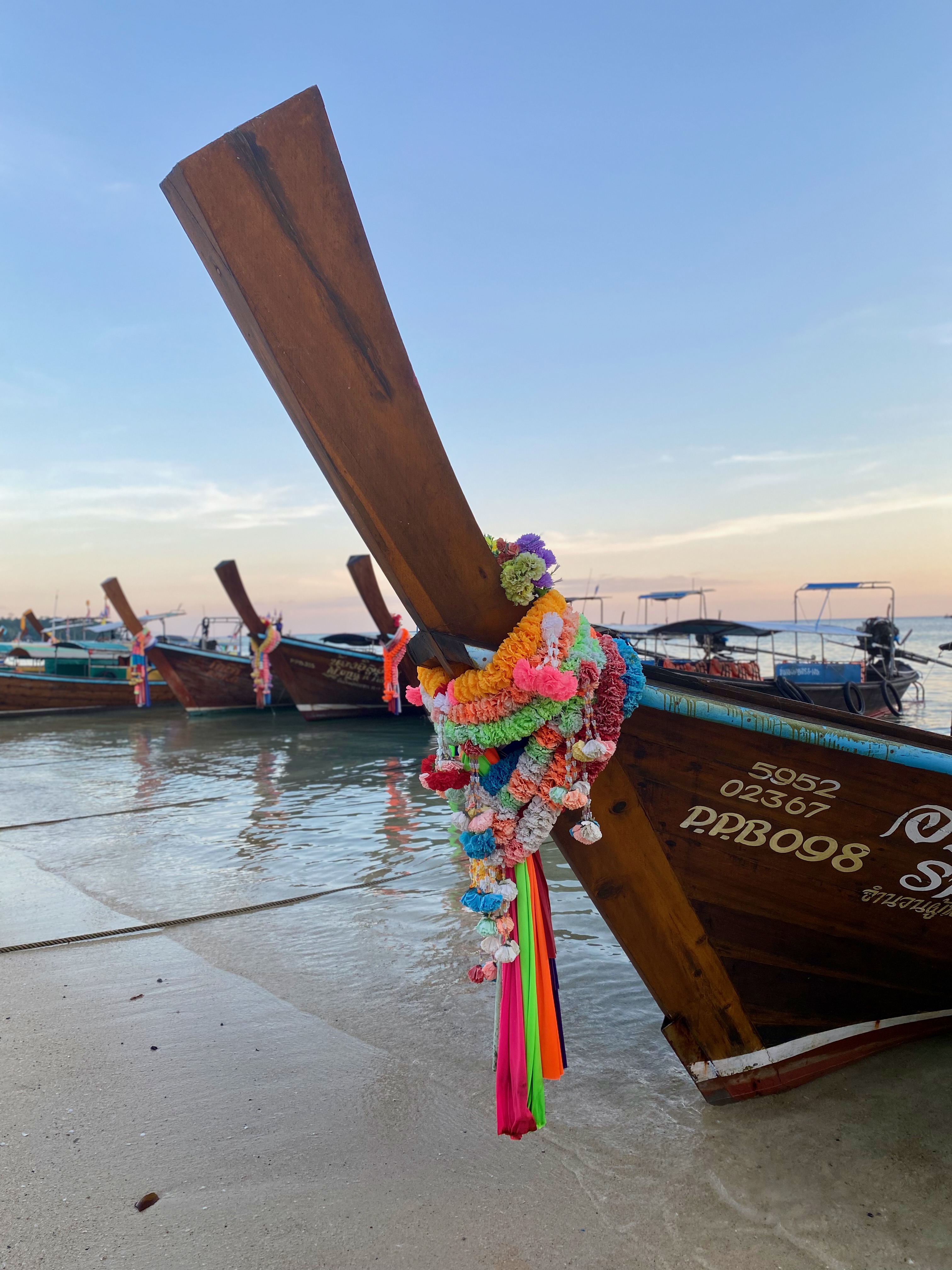 יום אחר כך קבענו על הבקר עם קפטן ג׳ק ספארו, שייקח אותנו לסיבוב סביב האי הדרומי אלינו – קו פיפי לה (אנחנו בקו פיפי דון), אי יפהפה ולא מיושב. עם כמה נקודות שכולם שטים אליהם וכולם עוצרים בהם.. באמת באמת נופים עוצרי נשימה של צוקים קארסטים בתוך מיים צלולים ובהירים ובתוכם סירות לונג טייל מקושטות בסרטים בכל צבעי הקשת.