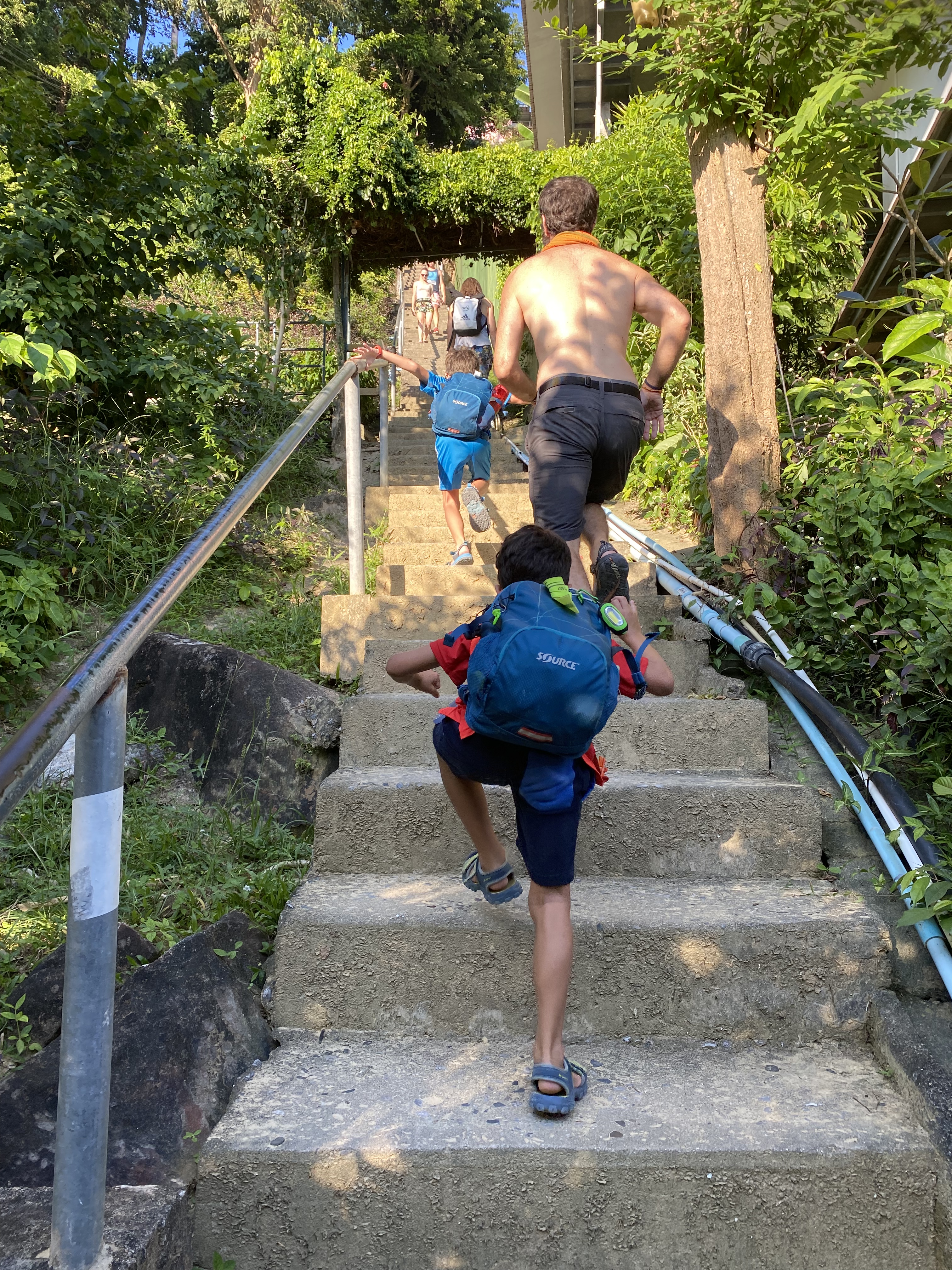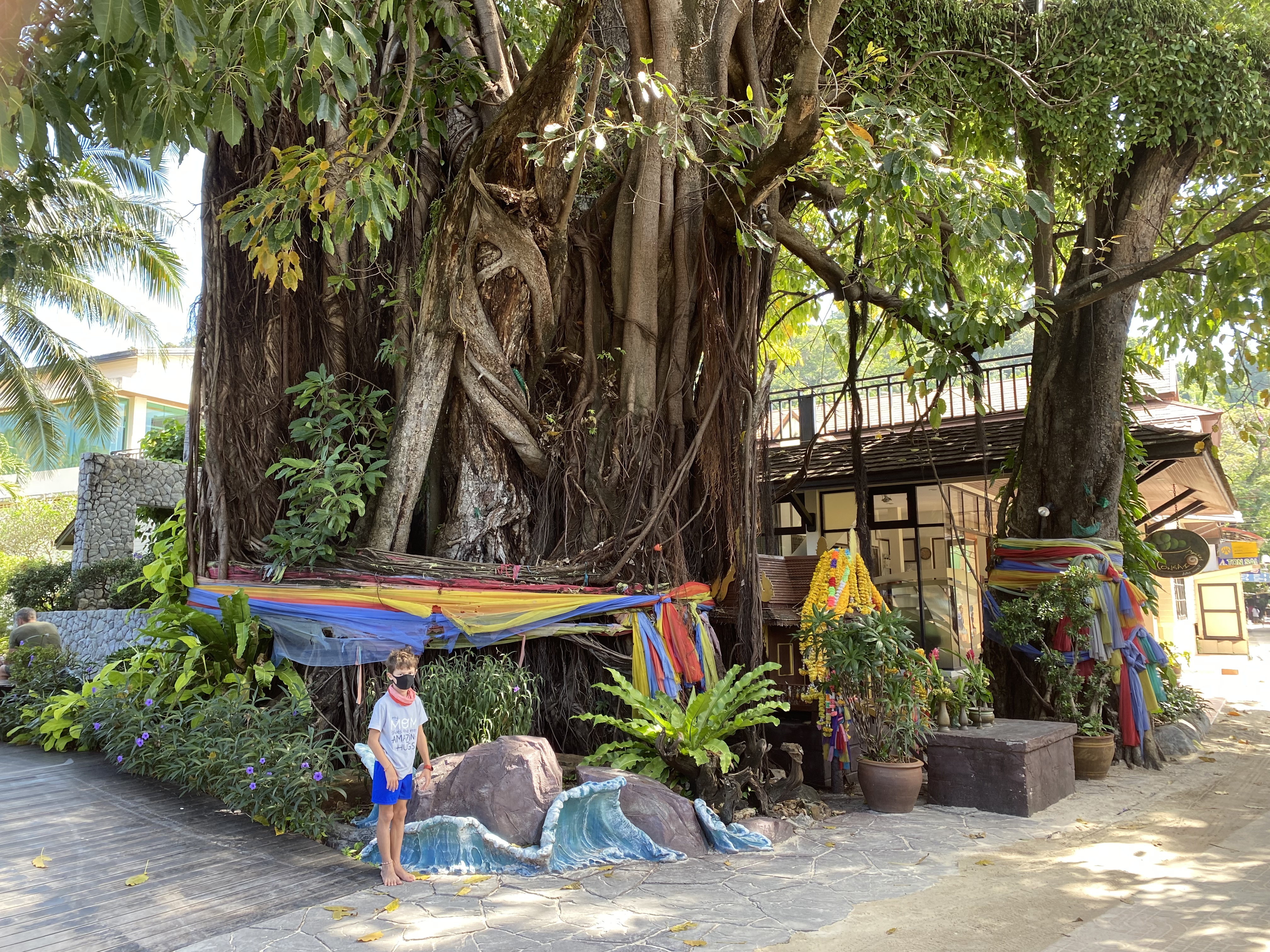 כאב לי קצת הלב עליהם.. על המלון שעזבנו, כי הם באמת השתדלו, והכינו לנו ארוחת בקר מושקעת ממש.. וכל הצוות שהיה שם בעיקר בשבילנו, אבל באמת, לא לשם כך הגענו לקו פיפי. ארזנו וירדנו למרכז. משפחת רופא יצאו לצלילות, ואנחנו התמקמנו במלון החמוד והחדש שלנו, עם חדר הורים וחדר ילדים, מלון מתוק על הים בקצה השוק, עם עץ בניאן מטורף בכניסה שלו, בריכה מתוקה, ממש אהבתי 🙂 אחרי שהתמקמנו עלינו לנקודת תצפית.