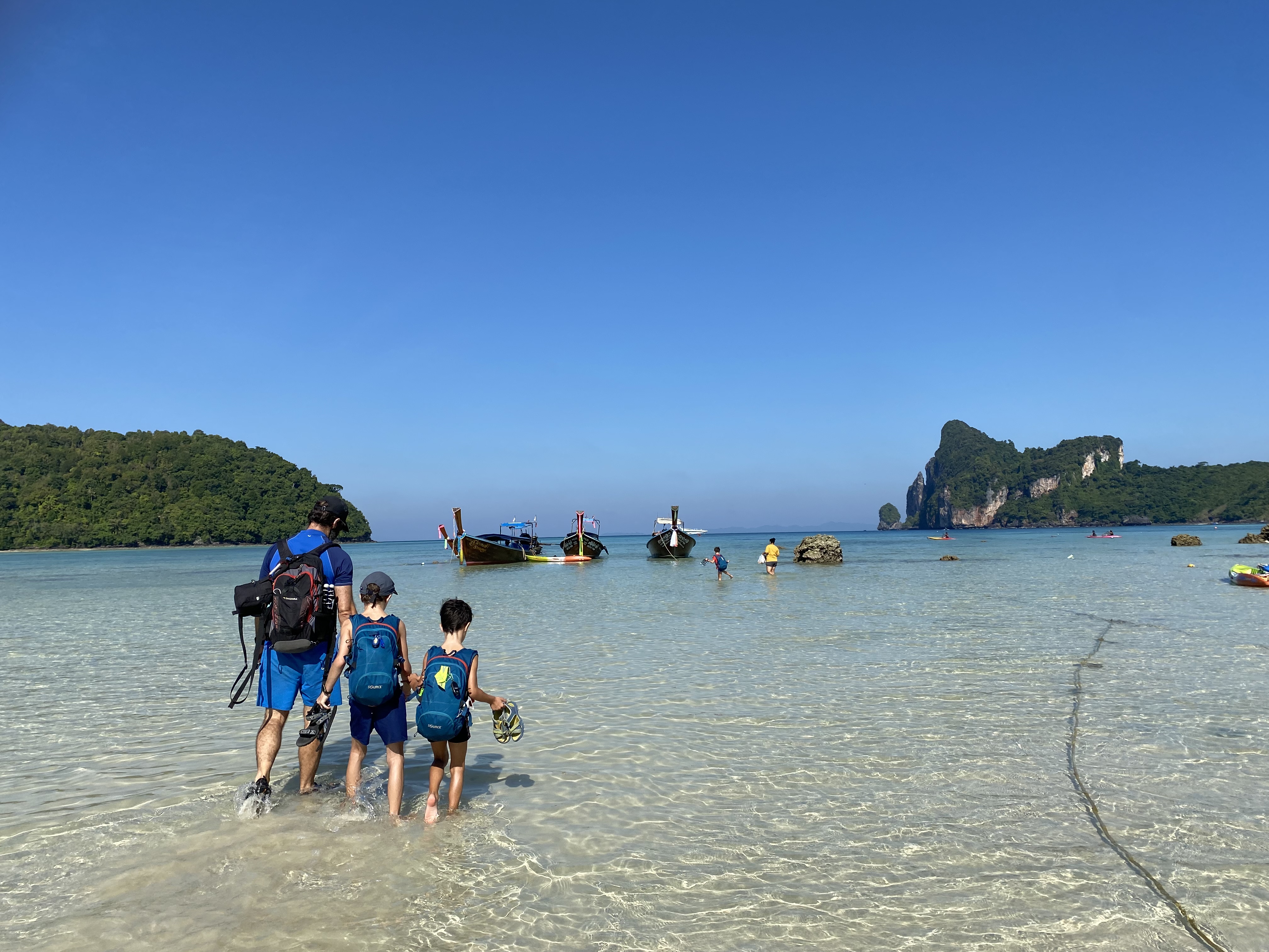 למחרת בבקר התארגנו בזריזות, או הכי זריז שאנחנו מצליחים (בכל מקום אנחנו משאירים דברים, בכוונה, דברים שאנחנו מרגישים שאנחנו לא באמת משתמשים בהם, ואנחנו יכולים להסתדר בלעדיהם, מקוים ממש להיפטר מהמזוודה הגדולה השבוע, זה יקל עלינו המון..). ואז עלינו על הסעה לקראבי העיר שממנה יוצאת המעבורת לקו פיפי. משפחת רופא הגיע למלון שלנו על הבקר ויצאנו יחד. הפלגה של שעה וחצי. משפחת רופא נמנמה בחלק התחתון של המעבורת כשאנחנו ישבנו בחלק העליון והצלחנו לא להקיא, עד שהגענו לאי המקסים הזה. באמת מקסים!