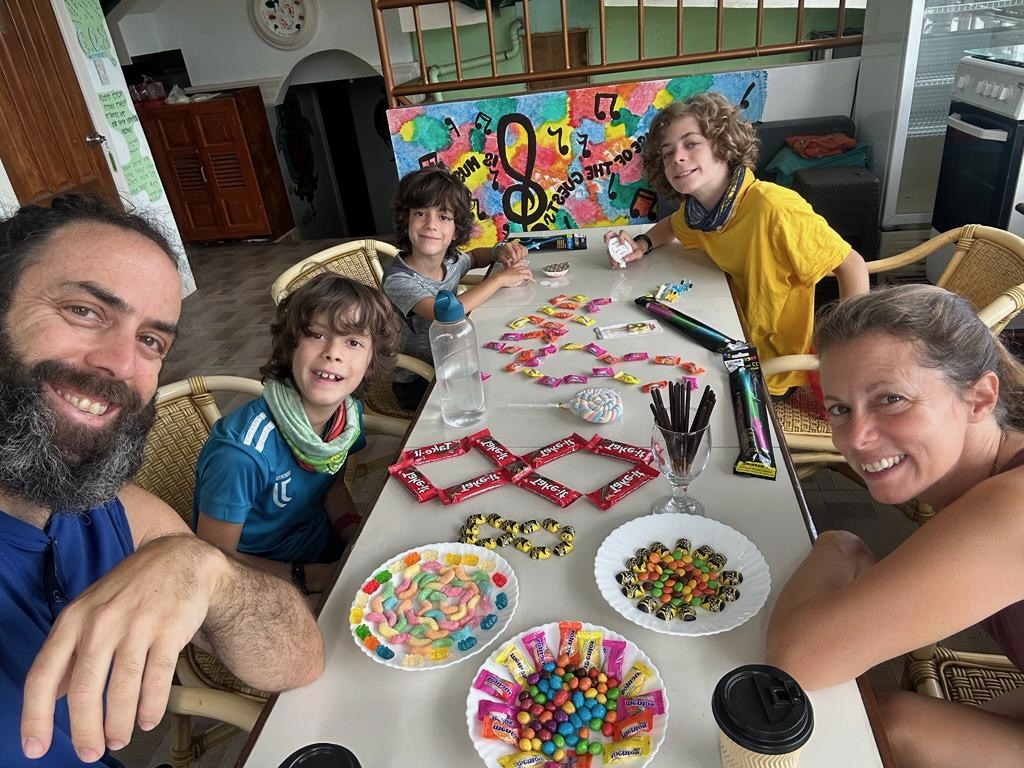 התחלה רעה. גם כשהגענו ליעדנו, מצבינו לא השתפר, הגסט האוס שהזמנו, נבחר על פי המלצות בלבד, ומבלי שנבדק לעומק, והוא היה מבאס ומגעיל ועם ריח שמנסה להיות טוב אבל הוא לגמרי ההיפך מזה. מקום נוראי להרגיש בו רע. עופר המשיך להעלות חום והדאיג. העיירה נראתה כמו עזה. גל לא הרגיש טוב גם הוא.. היה די מבאס. ולמחרת חוגגים לעומרי יום הולדת. ורצינו שיהיה לנו, ובעיקר לעומרי – כיף..היה לנו מזל ושכל שאת כל הממתקים והבלונים וההפתעות והנרות, קנינו יום קודם בקניון, חשבתי שבעלת הגסט האוז תעזור בהשגת עוגה.. אבל לה גם לא היה מושג איפה אפשר לארגן כזאת..מזל שאלמוג, חברתי הוירטואלית היתה פה כבר לפני שבוע וכשסימסתי לה שיש לעומרי יום הולדת, היא מיד הפנתה אותי למקום בבעלות צרפתית עם עוגות מעולות, וממש הצילה אותי.. דיברתי איתם בטלפון, הסברתי מה אני רוצה ולמחרת זה הגיע אלי על טוסטוס, כי – אין חגיגה בלי עוגה!