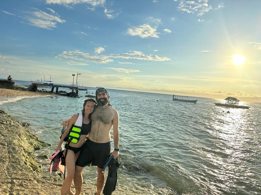 איך שנכנסו למים, שחה על ידינו צב ענק, חמישה מטר פנימה חיכו גם להקות הסרדינים.. דגים כחולים זוהרים בין לבין.. היה מרהיב! שנירקלנו אולי עשרים דקות ויצאנו לחוף לנוח. סך הכל היינו חולים.. נשארנו לראות את השקיעה עם קוקטייל כי פתאום הרגשנו קצת יותר טוב.. פגשנו זוג ישראלי מקסים ונהננו משיחת מבוגרים, בכוחות מחוזקים חזרנו לגסט האוס ומצאנו את הילדים משוחחים ומקשקשים ומחליפים חוויות טיולים עם שני מטיילים אחרי צבא שסיפרו להם כמה כיף להם ואיזה מזל יש להם שהם מטיילים, ובקיצור – הכל התחיל להשתפר..