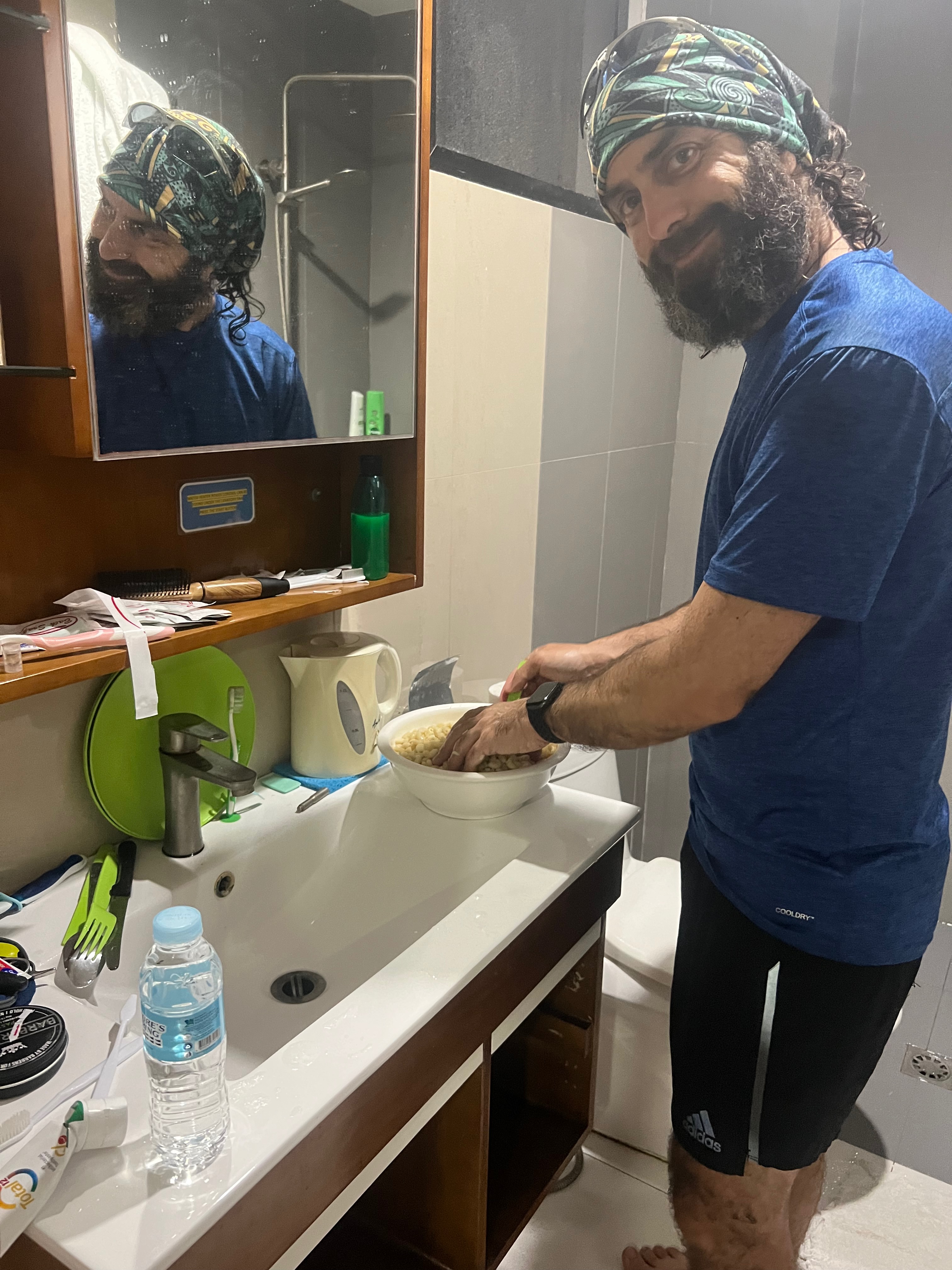 הגענו כבר בחושך לעיר, לפחות למלון שהכרנו. עוד מהדרך הזמנו אוכל למלון (בפוד פנדה, הוולט של המזרח) ומונית (גראב – האובר של המזרח) שתאסוף אותנו מתחנת האוטובוס אל המלון.. מנפלאות האינטרנט.. האוכל ההודי היה מבאס כמו בפעם הקודמת (אבל אנחנו לא מאבדים תקווה, ננסה אותו שוב כשנחזור לעיר.. אנחנו לא לגמרי טמבלים, אנחנו מנסים מסעדות שונות, אבל אולי אם היה לנו יותר זמן היינו מבינים שההודים בסבו לא מצטיינים בבישול ).