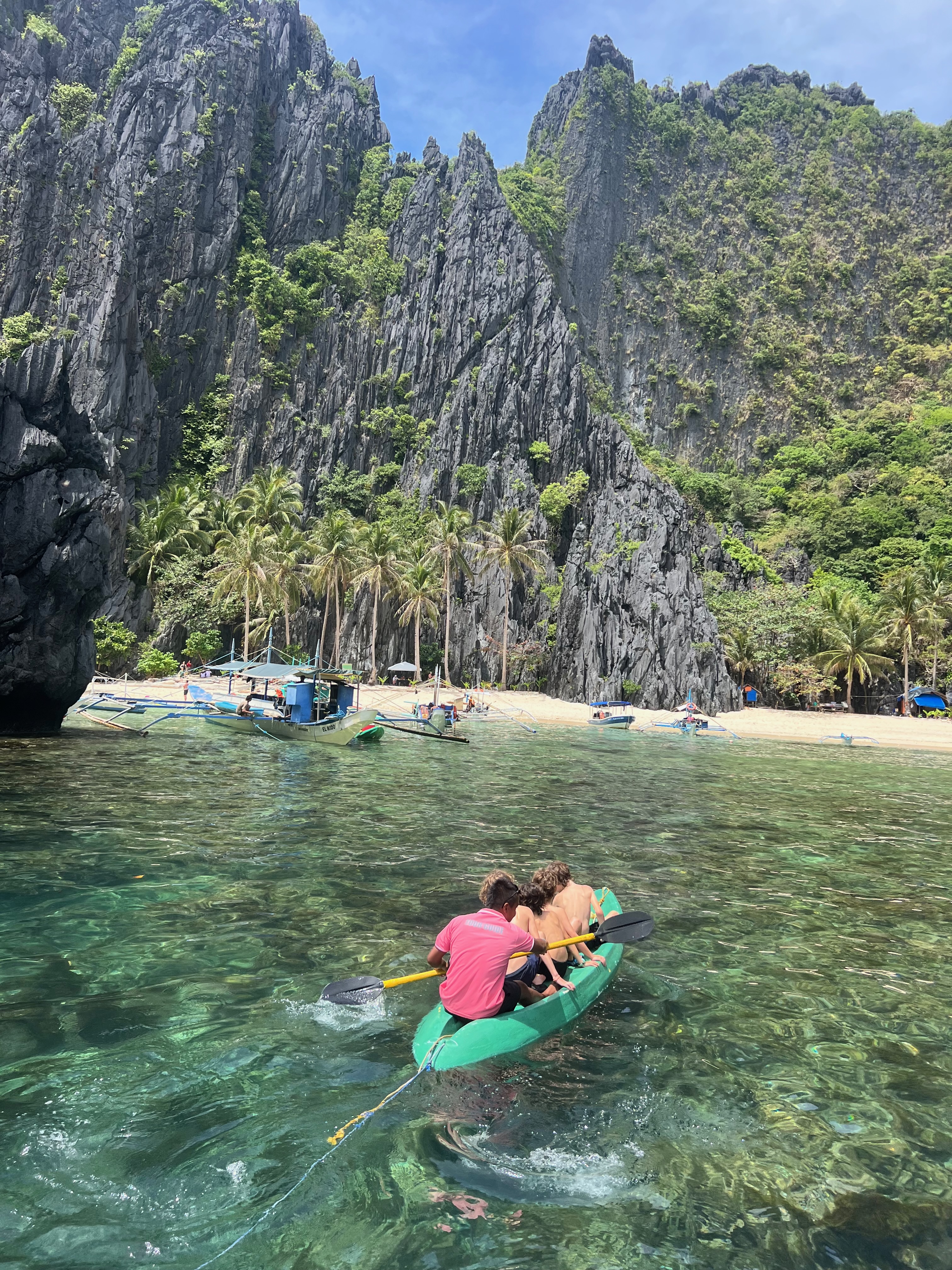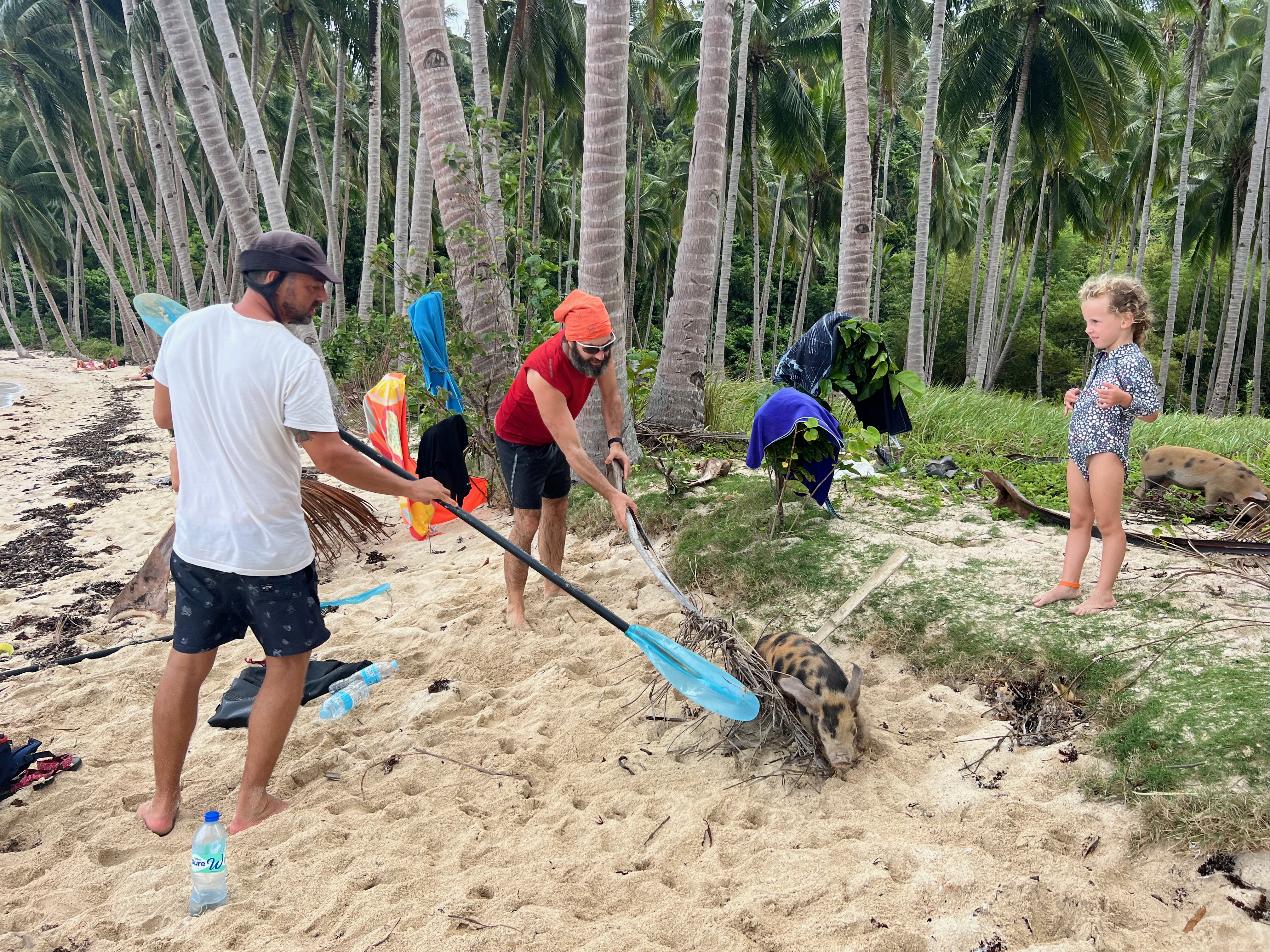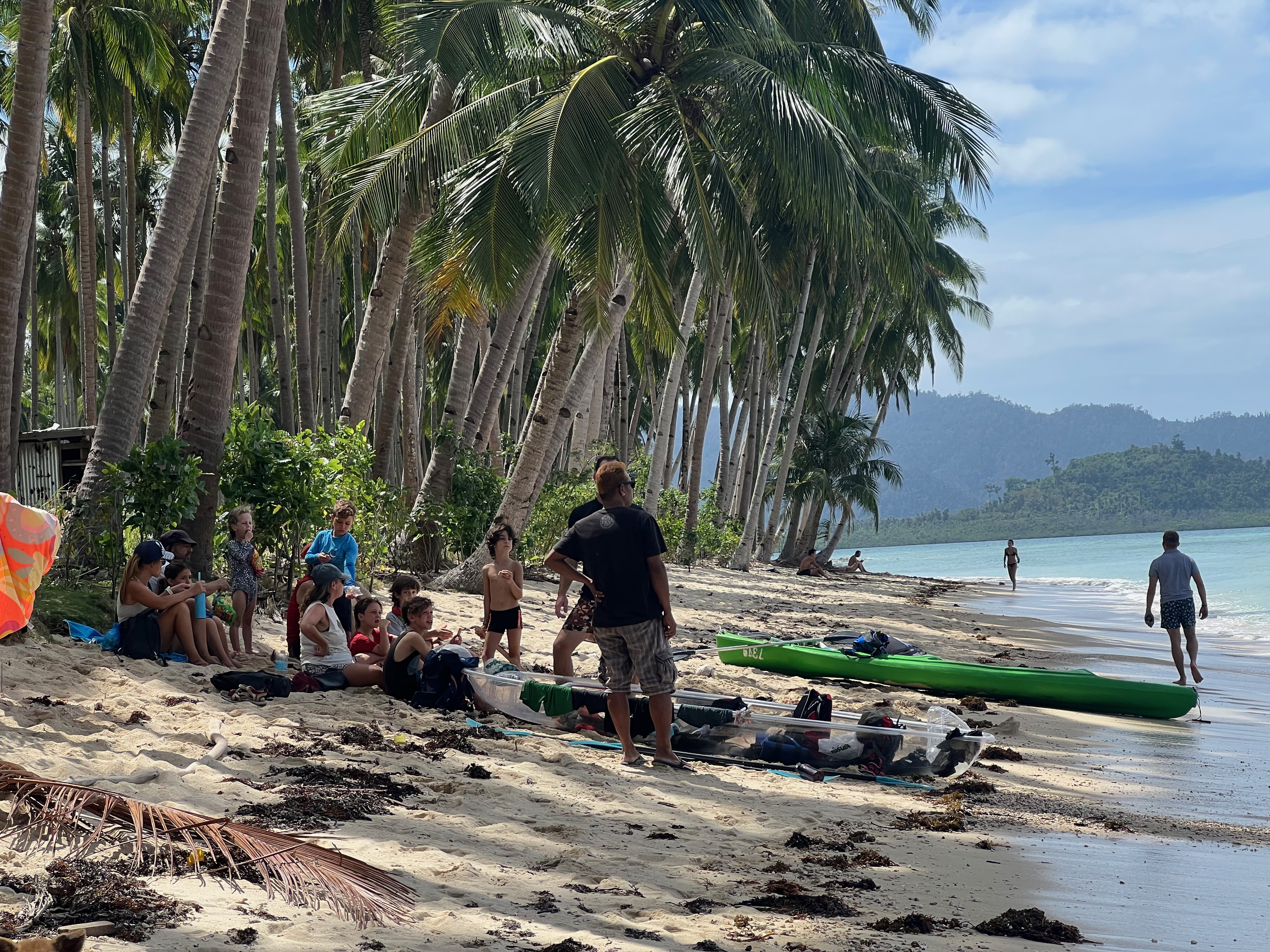 באחד הבקרים היינו חרוצים ורצינו לבקר בחוף השכן, הקוקונאט ביץ׳. אני והבנות הלכנו ברגל, הגברים והבנים לקחו שלושה קיאקים וחתרו. כשהם הגיעו לחוף הם הבינו שקיאק אחד חסר. אחרי כמה דקות של חוסר ודאות ואחרי שגל לקח את הקייאק שלו חזרה למים לחפש אותם התברר שאכן הקייק השלישי פשוט טבע.. מזל שלילדים היו חגורות הצלה ושהאבא היה כזה קול.. כי הם הגיעו לחוף בשחייה של איזו חצי קילומטר.. גיבורים.. עם ילדה בת 4.5.