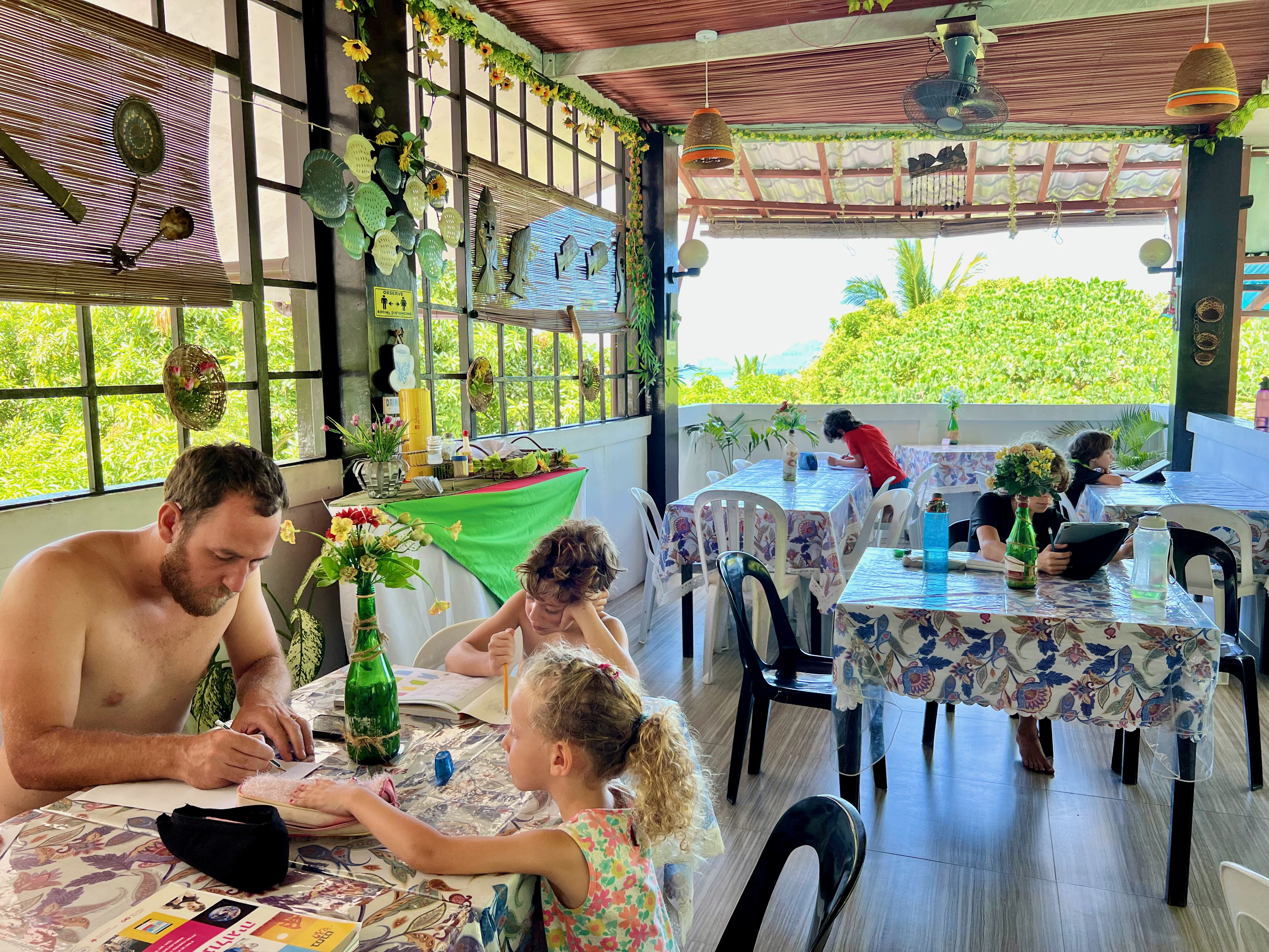 למחרת תכננו יום רגוע, כל הילדים למדו על הגג, אחר כך הלכנו לארוחת צהריים בחוף קורון קורון היפהפה (שנראה ממש דומה לחוף או נאנג בקראבי). אנחנו בגדול מנסים לאכול פה בעיקר פיצות, כי כולם סובלים מצורות שונות של בעיות בטן.