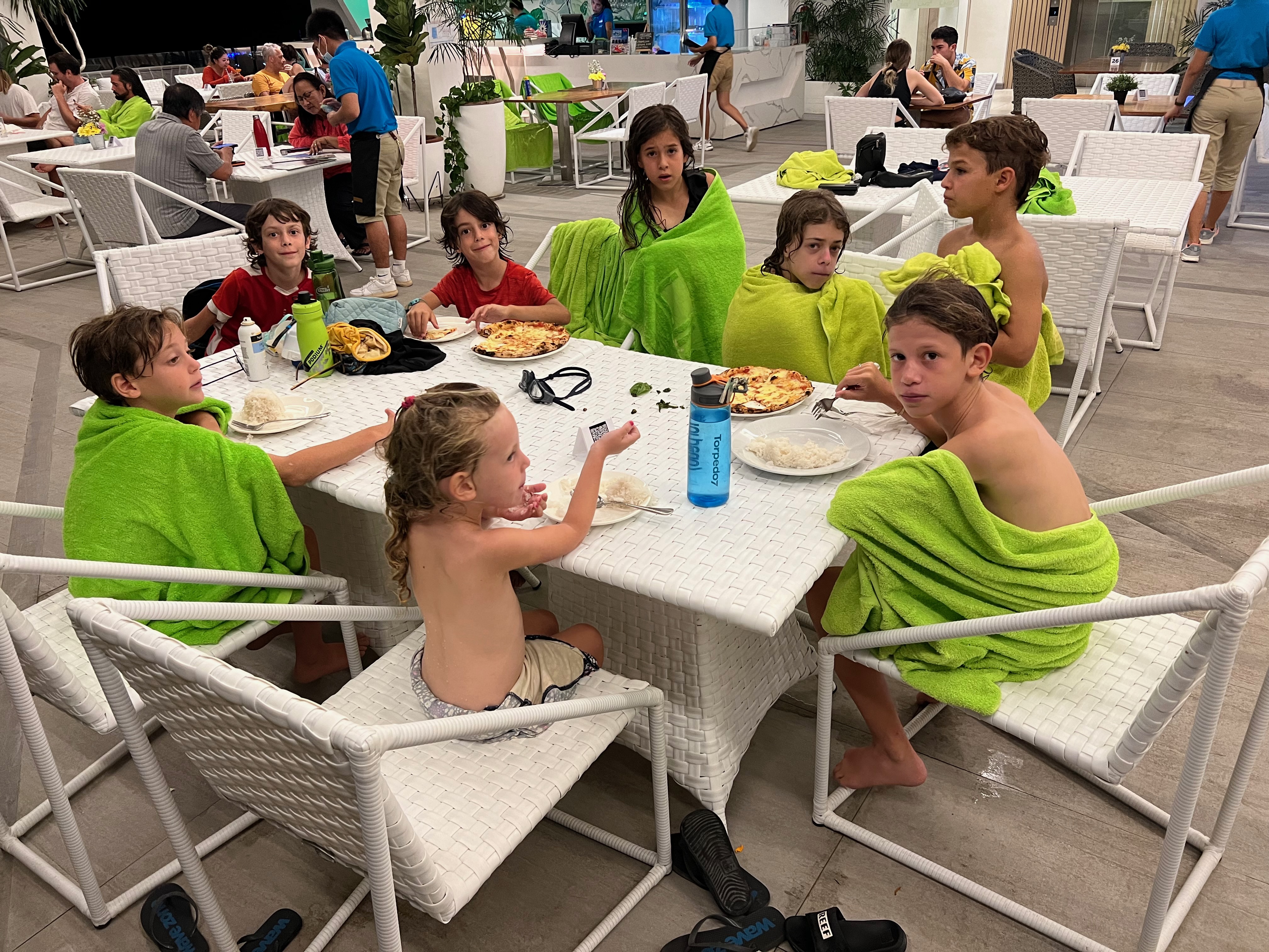 חזרנו עייפים, גל שגם ככה לא הרגיש טוב, הרגיש פחות טוב (עכשיו גם על אנטיביוטיקה). עברנו לחדרים חביבים אחרי שישנו לילה קודם בחדר פח מסריח וצפוף (כי הקדמנו את ההגעה שלנו ביום וזה היה החדר היחיד שהיה פנוי) חברים שלנו עברו להיות שכנים שלנו, הזמנו פיצה לילדים ונהננו מסתם זמן איכות..