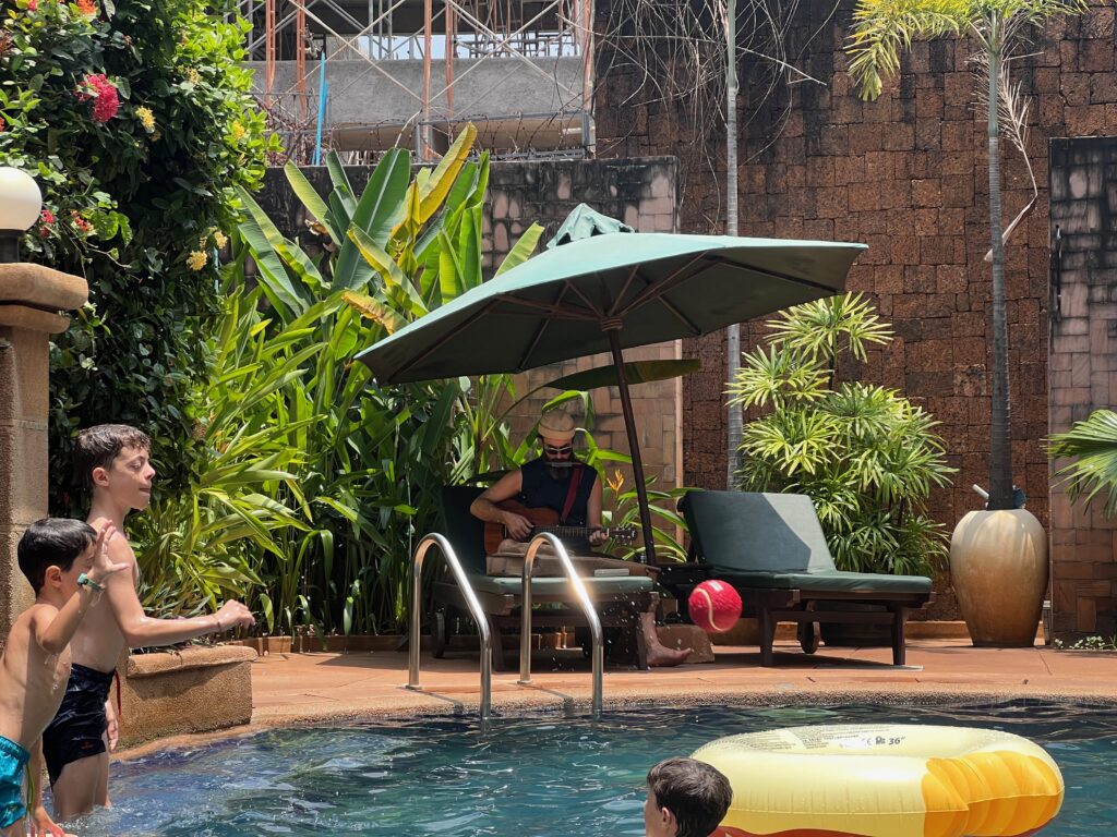 צמודה למלון היתה מסעדה עם טאצ׳ מערבי ביותר וארוחות בקר מעולות, שם פתחנו כל בקר. ובגדול הזמן שלנו בשבוע הזה, היה מורכב מבריכה, עם הפסקות לדברים אחרים.