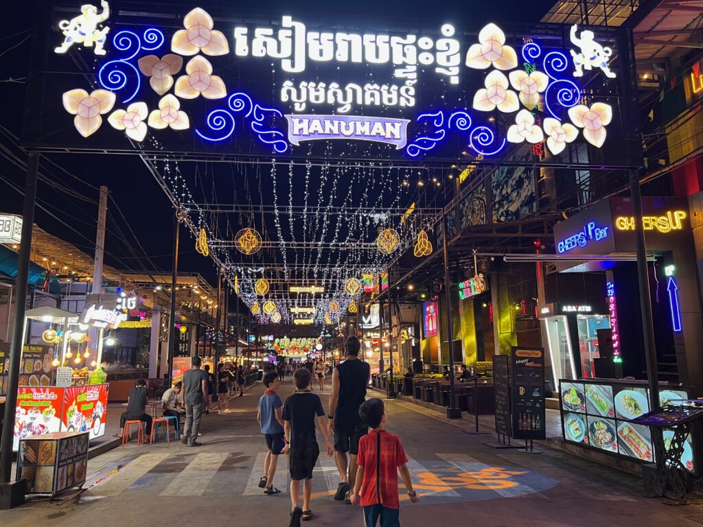 למחרת תכננו לטייל אבל עניינים בריאותיים אלצו אותנו להשאר עוד יום בבריכה, וזה מה שעשינו. בערב יצאנו לסיבוב קצר בעיר גם ליד הנהר שעובר בה ומשרה מן שלוה סביבו. משם המשכנו לסבן אילבן היחיד בסביבה. שהוא גדול ומרווח ומלא במוצרים שמזכירים לנו את תאילנד ומרגשים לקראת החזרה. ומשם לפאב סטריט.. הרחוב התיירותי המרכזי של סיאם ריפ.
