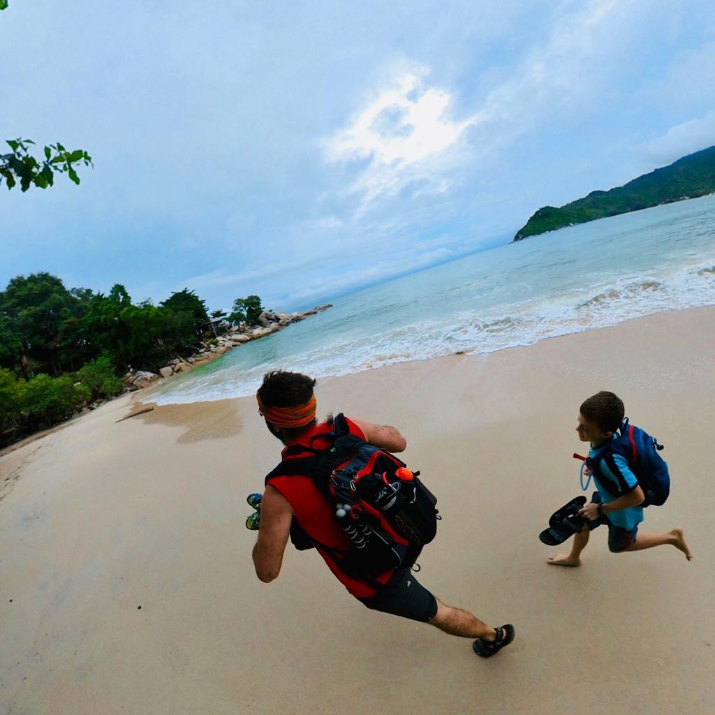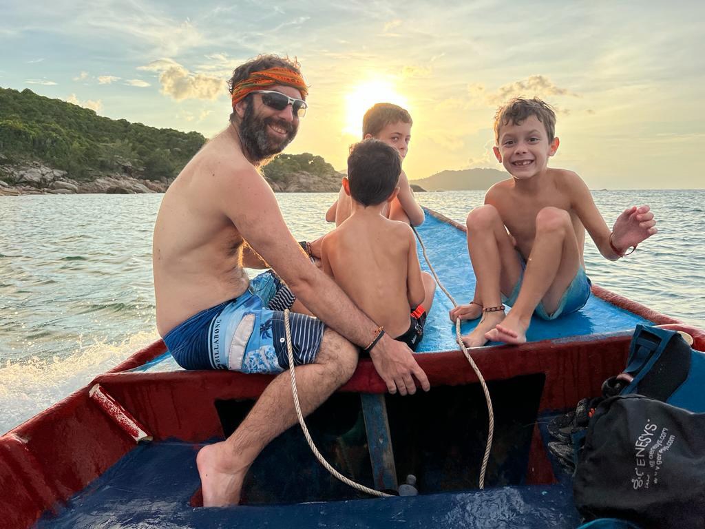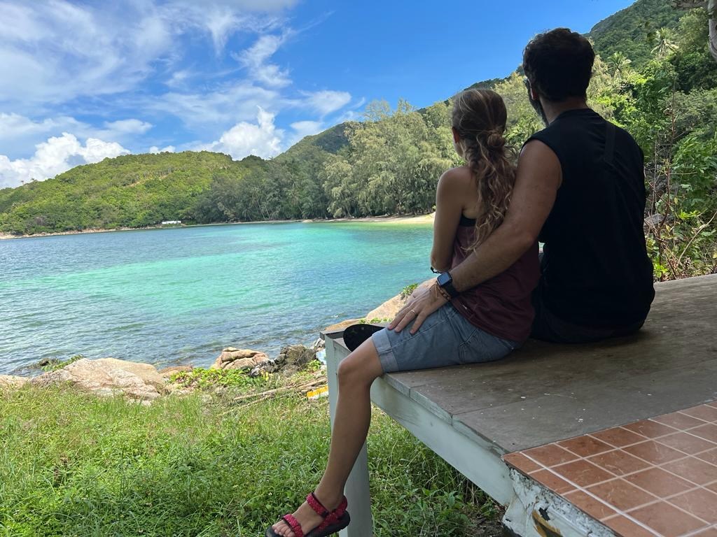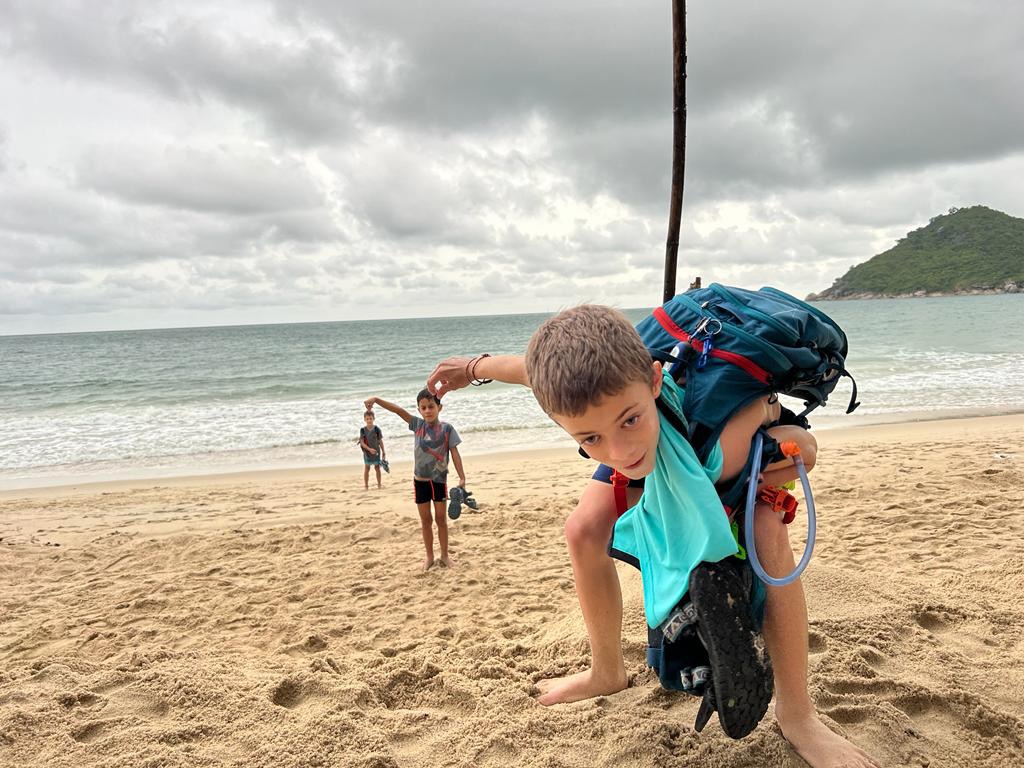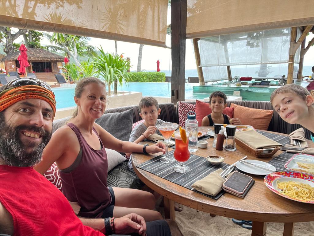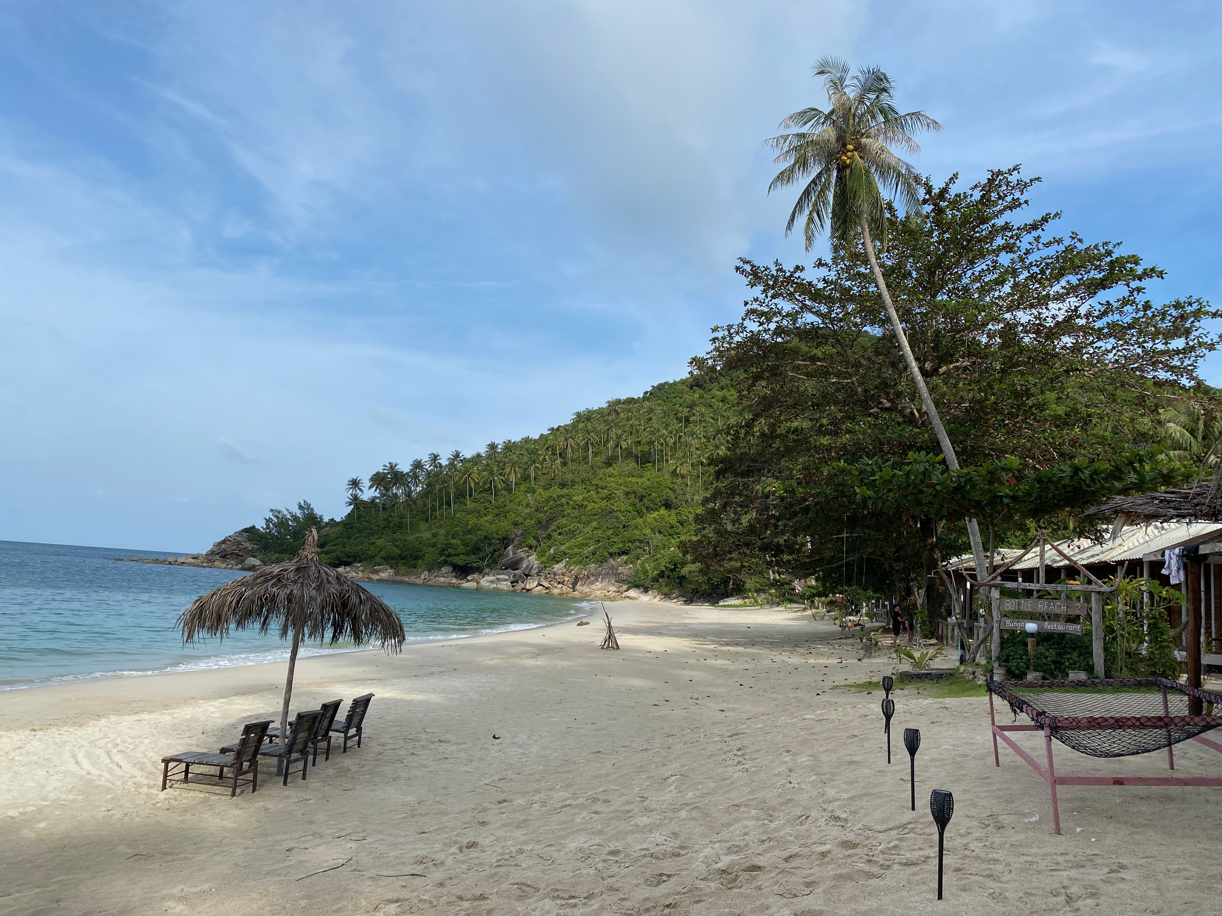 חוץ מזה לפני כמה ימים קצת חקרנו את הצד המזרחי של האי, שעד עכשיו לא ביקרתי בו אף פעם, כי הוא היה די לא נגיש, עכשיו הדרכים אליו סלולות וסבבה, עוברים בדרך על ההרים המדהימים שמקיפים אותנו. מטפסים בין העננים, בתוך הג׳ונגלים, עם הנוף המשגע. הגענו לחוף טונג נאי פאן, שבאופן מפתיע, גם הוא מאוד יפה.. התמקמנו באיזה ריזורט יוקרתי משהו ופגשנו שם לגמרי במקרה משפחה ישראלית שניסינו כבר כמה פעמים להיפגש איתה ושתינו איתם קוקטילים בזמן שהילדים בנו סכר.. באיזה שלב הבן של המשפחה השניה רצה להצטרף לבוני הסכרים שלנו אבל חזר בדמעות אחרי שכלבים משוטטים איימו עליו וכמעט תקפו.. אז הבנו שאולי הילדים בונים את הסכר טיפה רחוק מדי מאיתנו, וגל הלך לקרוא להם (ולשמור עליהם בדרך חזרה).. המצב של הכלבים בתאילנד השתפר פלאים לאורך השנים שיצא לי לבקר פה, אם פעם הם היו נראים מסכנים ומוזנחים, כיום יש כבר המון כלבי מחמד ולכולם יש זנב!! (מה שבכלל לא היה לפני כמה שנים) אבל עדיין ויש שאומרים בעיקר אחרי הקורונה שבה היו פחות אנשים באי, יש לא מעט כלבים משוטטים שהם פראיים ומאיימים וגם נושכים, אז צריך להזהר..