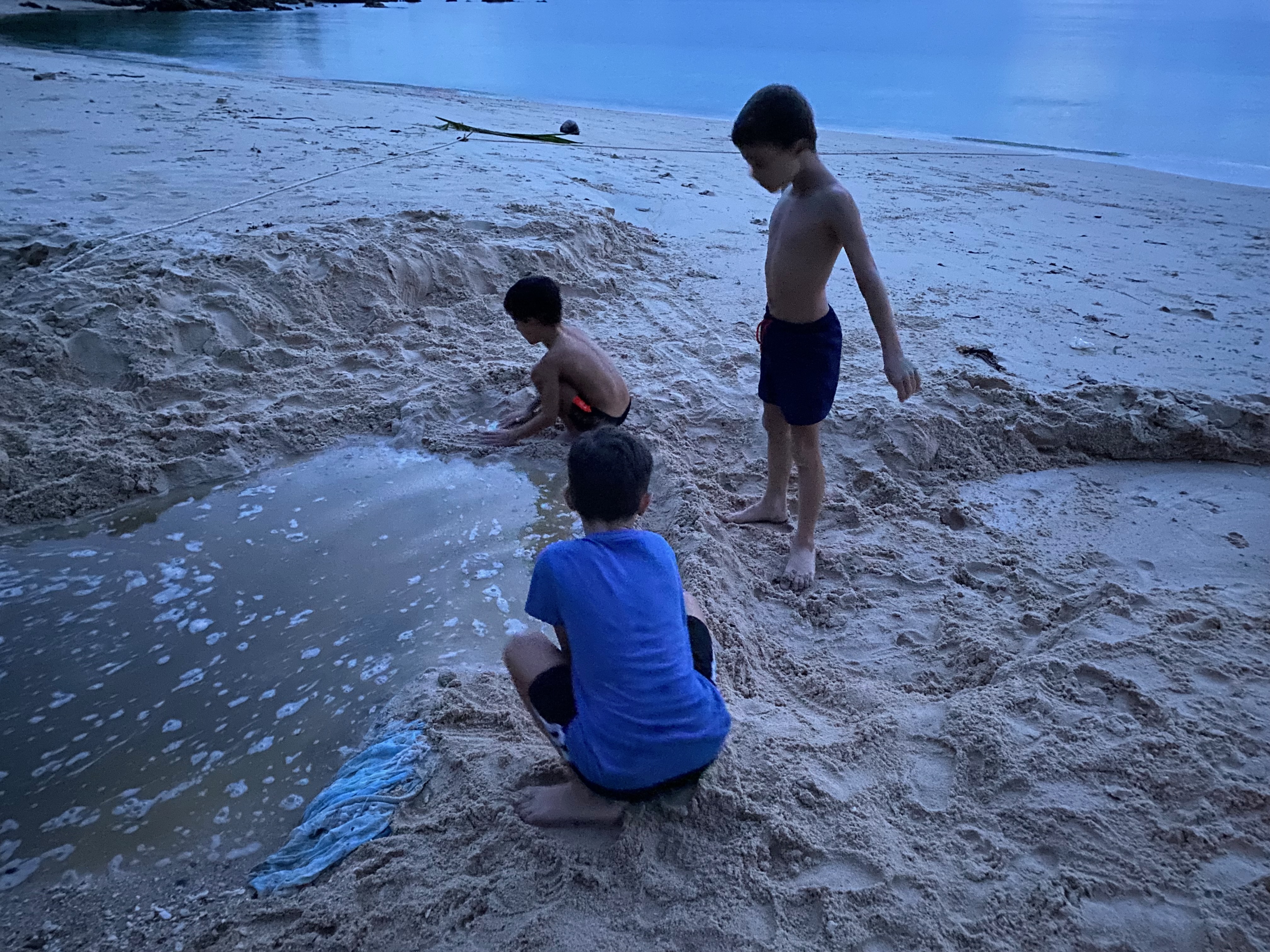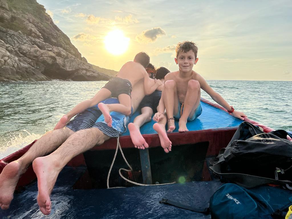 ואנחנו ממשיכים לחקור את האי, לנסוע לחופים שעוד לא ניסינו וריזורטים שעוד לא בדקנו. לפעמים עם חברים ולפעמים לבד.. היום לקחנו סירה לבוטל ביץ׳, שהוא חוף די מבודד, שאפשר להגיע אליו בסירה או בטרק של בין שעה לשלוש שעות (תלוי את מי שואלים), קפצנו איזו חצי שעה על הגלים בלונג טייל כשהילדים מעודדים כל קפיצה וקפיצה ומופתעים שאין להם בכלל בחילה. הביעו תקוה שאחרי כל הסירות ששטנו בהן, הם יצליחו גם להפליג עם סבא בלי להקיא… אמן!