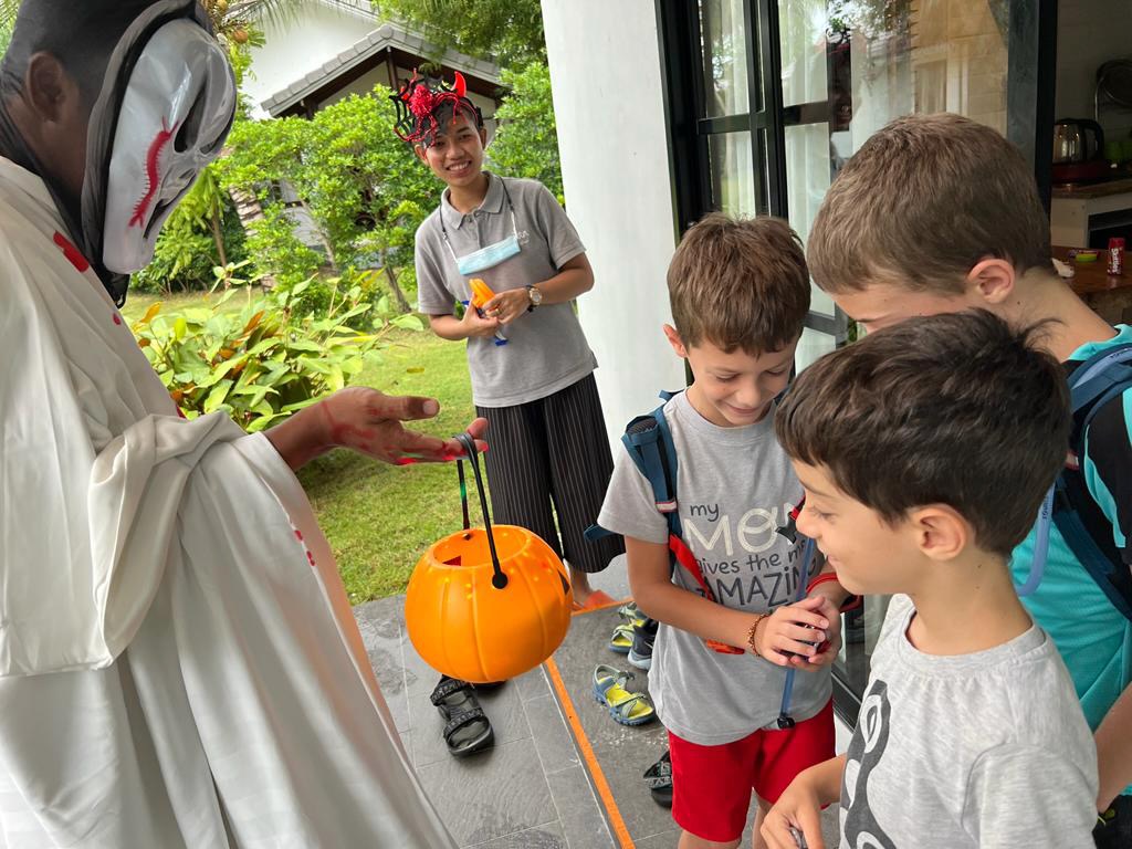 ומתישהו לאחרונה גם היה האלווין.. אנחנו לא אוהבים גם את פורים אצלינו במשפחה.. לא אוהבים תחפושות מפחידות, וזה בכלל אפילו לא חג תאילנדי! אז לא ממש הרגשנו צורך להתחפש, אבל החבר׳ה שעובדים פה במלון החליטו לפנק בממתקים.. אז לא הצטערנו..
