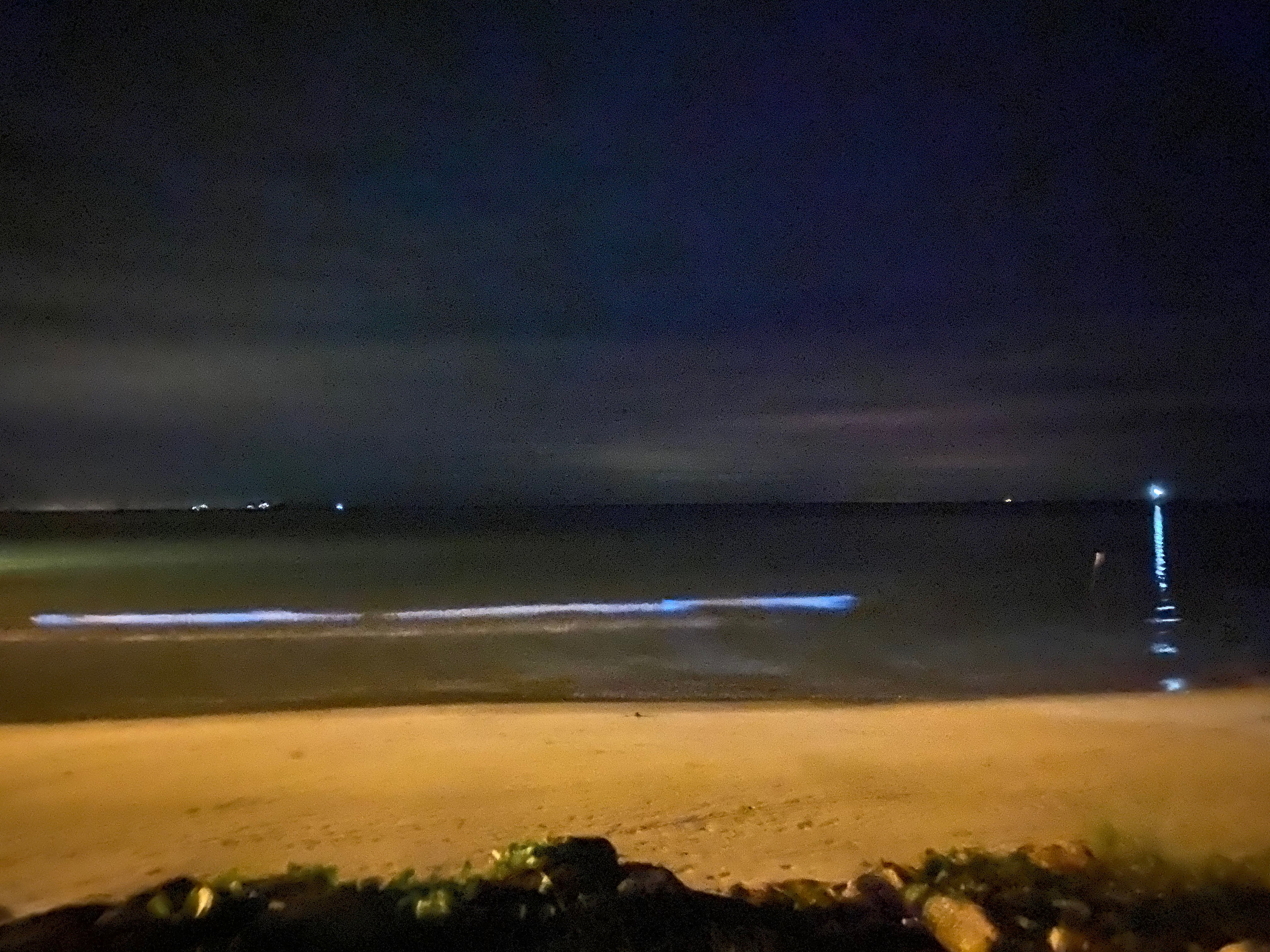 שלשום חזרנו די עייפים מהשוק לילה בטונג סלה שנזכרנו שיש אותו אחרי הבילוי בטונג נאי פאן (פתאום הבנו שיום שבת, אז זה יום של שוק ובדיוק עברנו בסביבה..) הילדים נכנסו למקלחת, ואני רציתי לצאת להליכה קצרה.. אבל התחלתי אותה ליד החוף וגיליתי שזה יום מושלם ל״גלי פלנקטון״, ושהם מהממים.. אז קראתי לילדים שאחרי מקלחת וגם לילד שעוד לא הספיק להכנס, שיבואו לחוף, וכולנו נהננו מהמראה המהמם והמהפנט הזה.. (וגם הזמנו את השכנים שיהנו גם)..