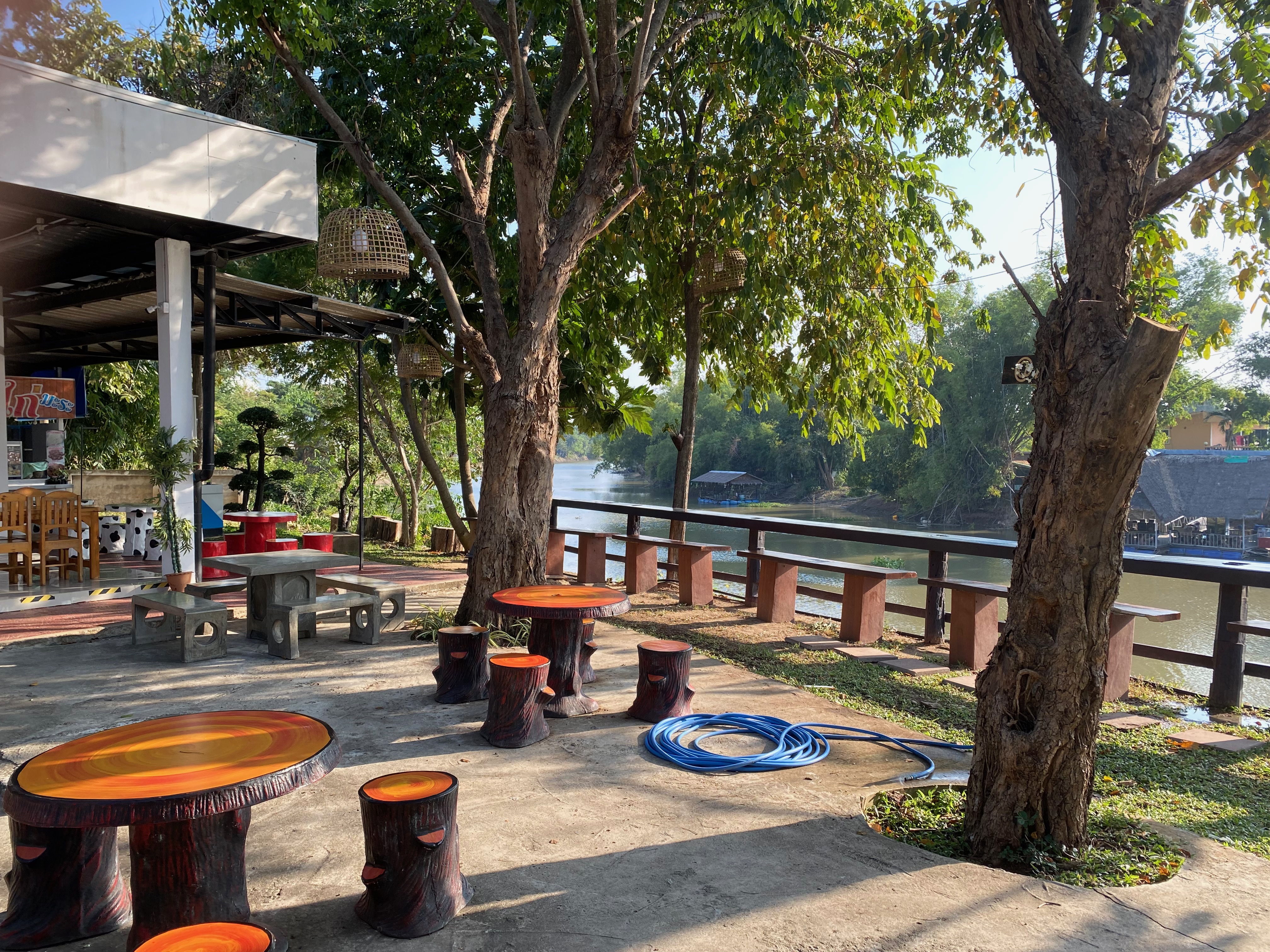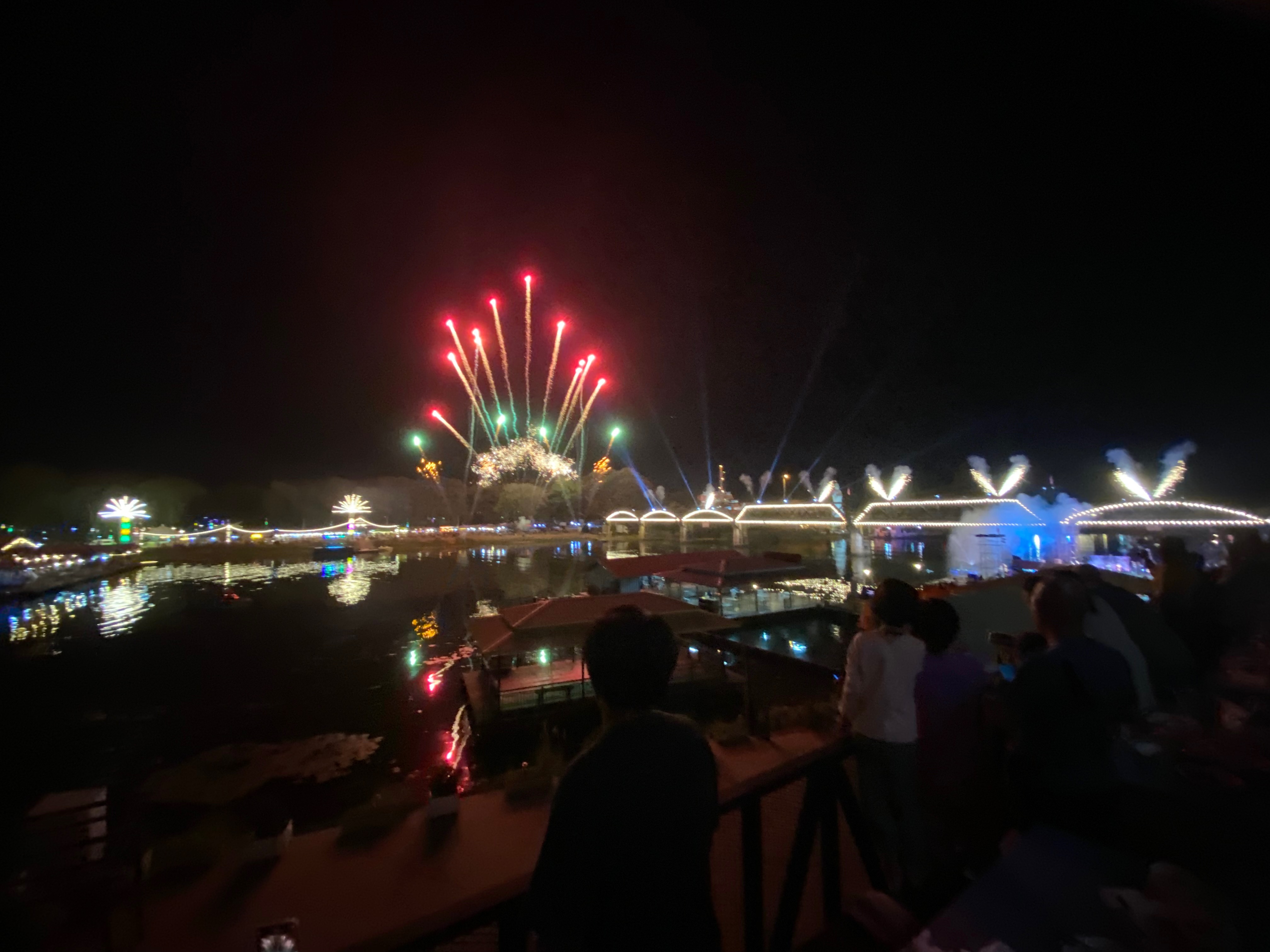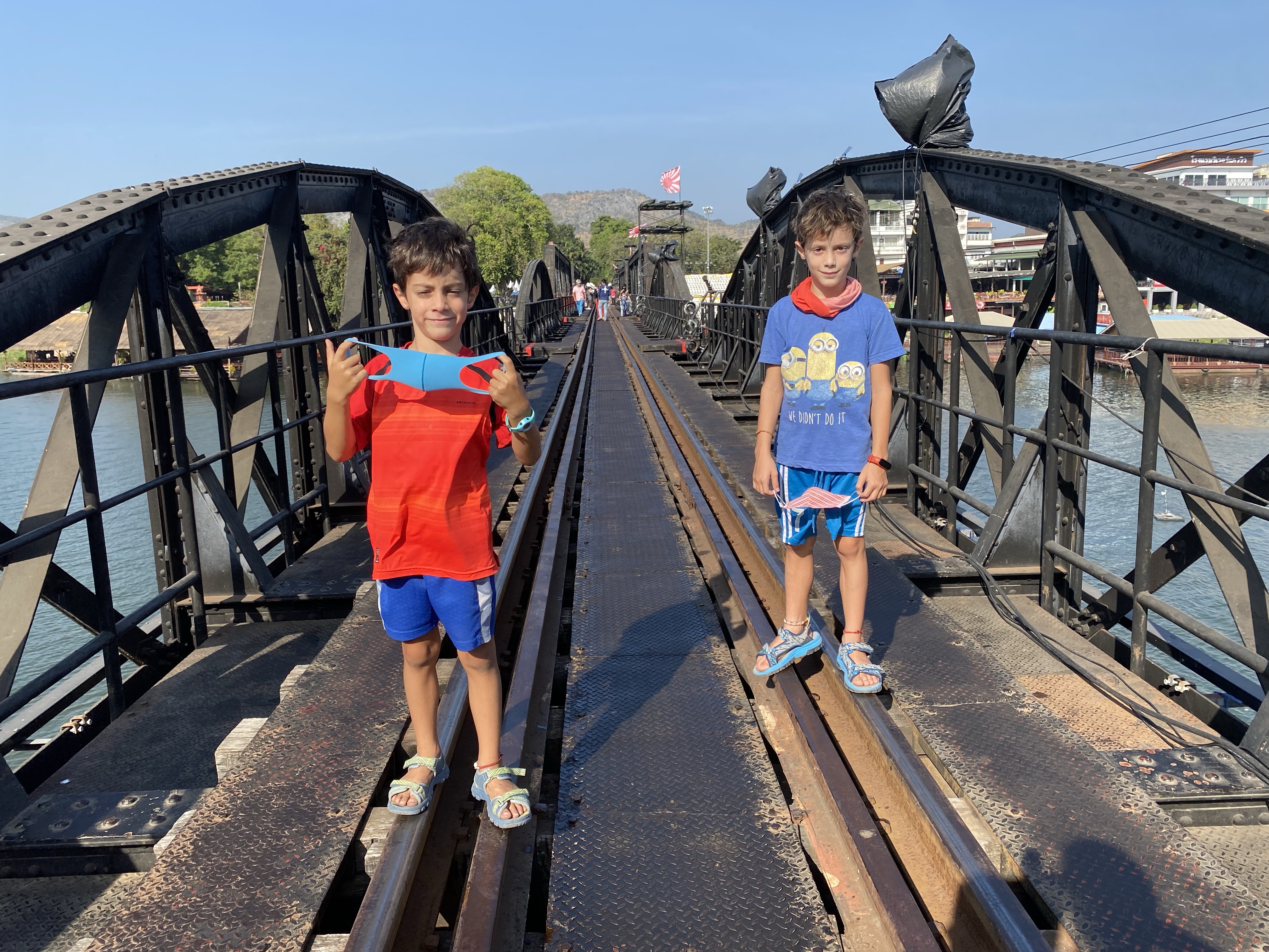 כשהגענו לאזור הפסטיבל הבנו שכרטיסים למופע כבר אין, אבל אפשר לצפות במסכי הענק שמקרינים עליהם. אנחנו בחרנו ללכת למסעדה שצפתה בדיוק על הגשר והזיקוקים, והגענו בדיוק כשהם התחילו. והיה די מלהיב ואחכ גם כבר די משעמם. ושמחנו שאנחנו לא בתוך המופע, כי הוא בתאילנדית ולא היינו מבינים, והילדים לא היו מבינים והיה יותר מביך לצאת משם לפני הסוף. בכל מקרה הילדים למדו קצת היסטוריה, מותאמת לגילם כמובן.